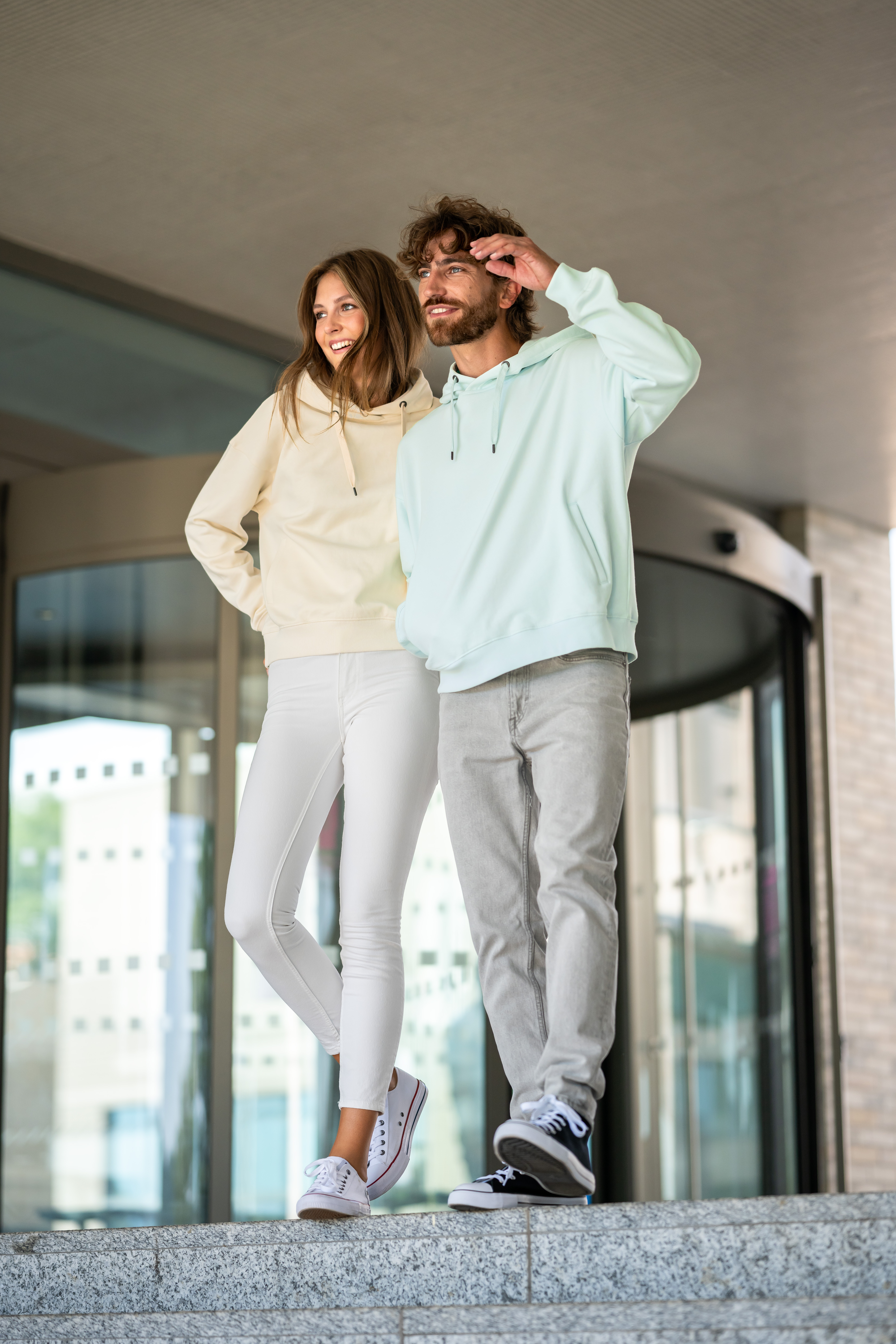 - Terry, czesana strona wewnętrzna, 80 % bawełna, 20 % poliester (kolor 12(ciemnoszary melanż) kompozycja może się różnić - 75 % bawełna, 25 % wiskoza)