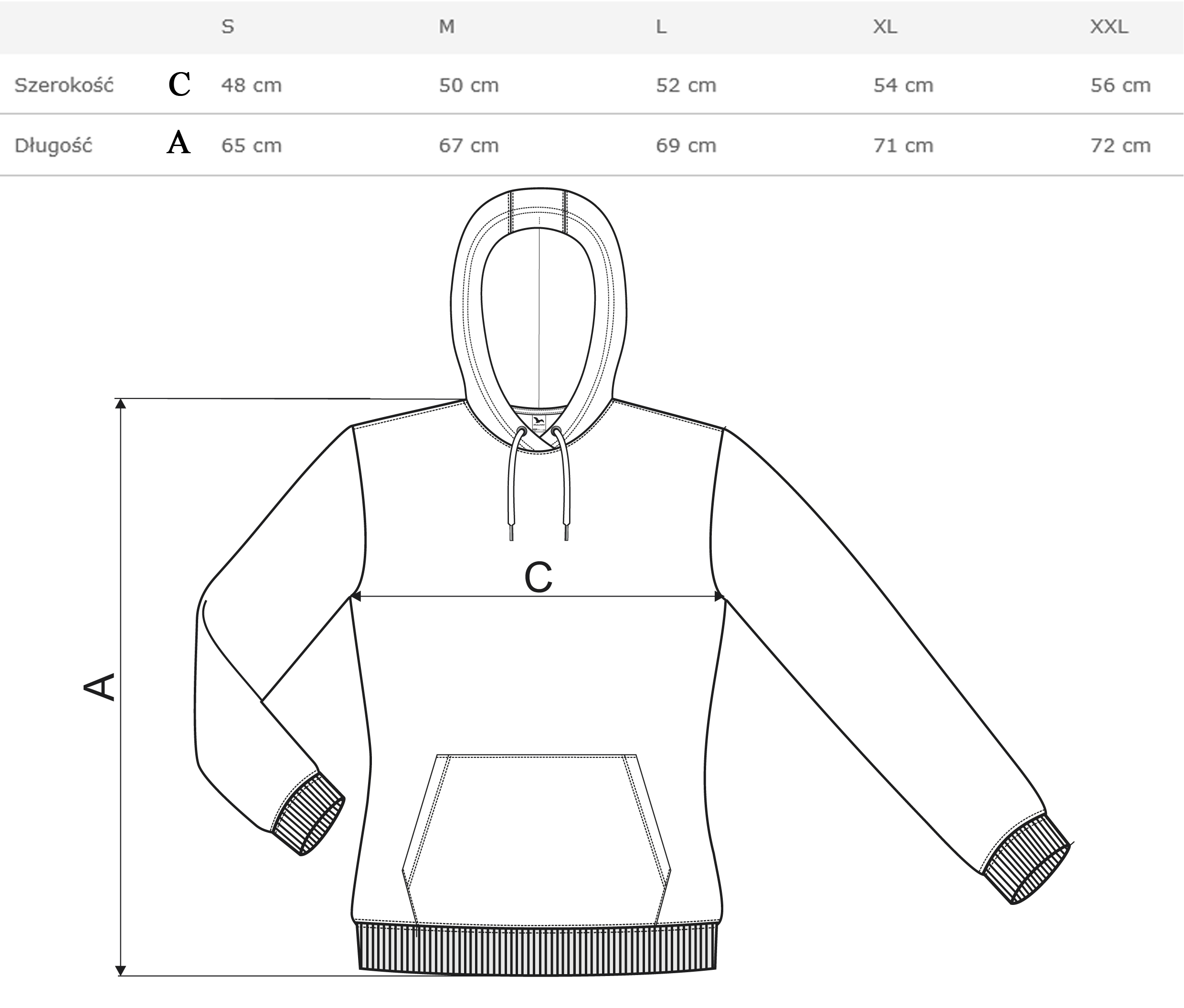 - Elastyczne ściągacze 2x1 rękawów i u dołu bluzy.