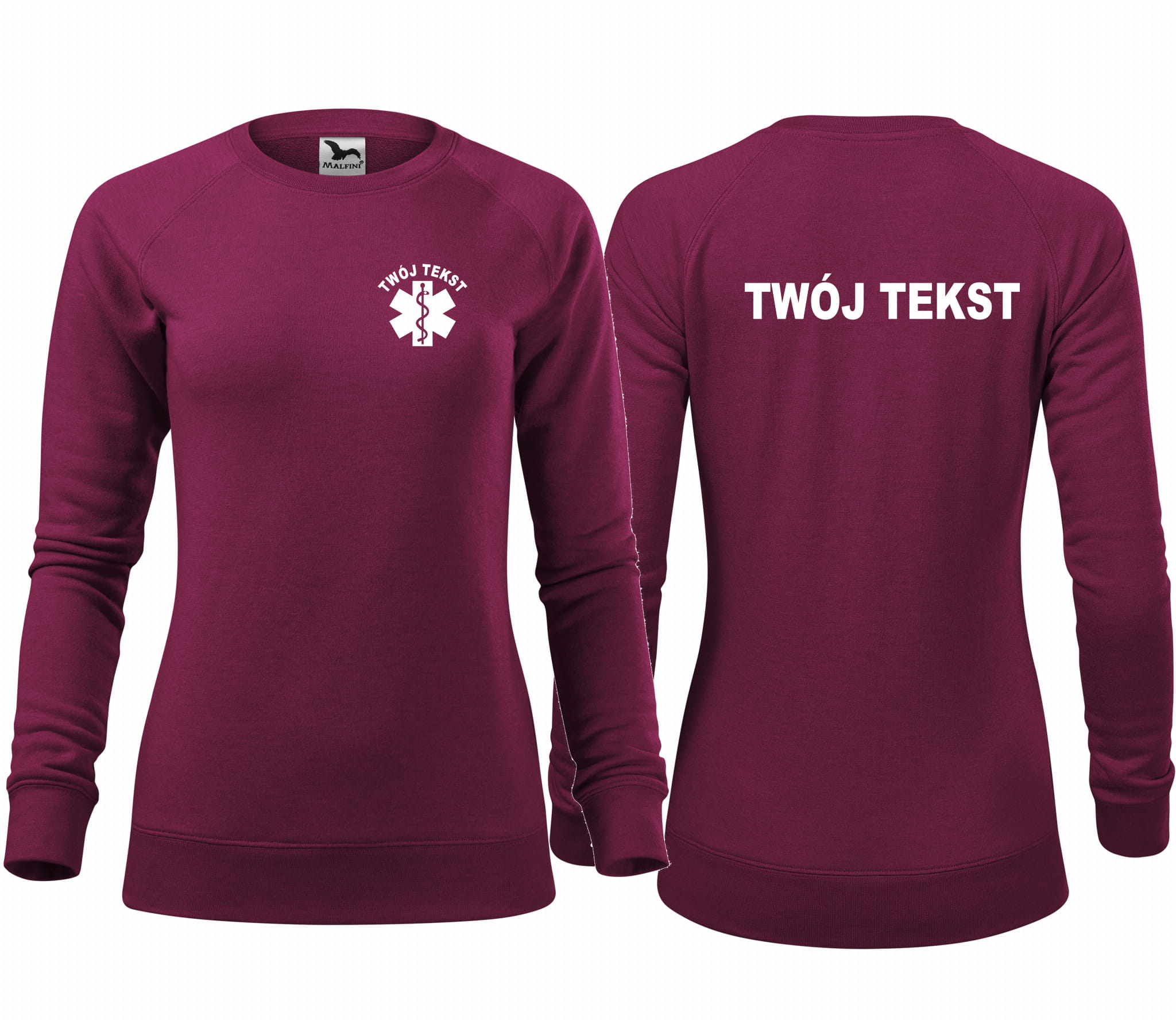 Bluza damska MERGER TWÓJ TEKST + ESKULAP nadruk PRZÓD I TYŁ