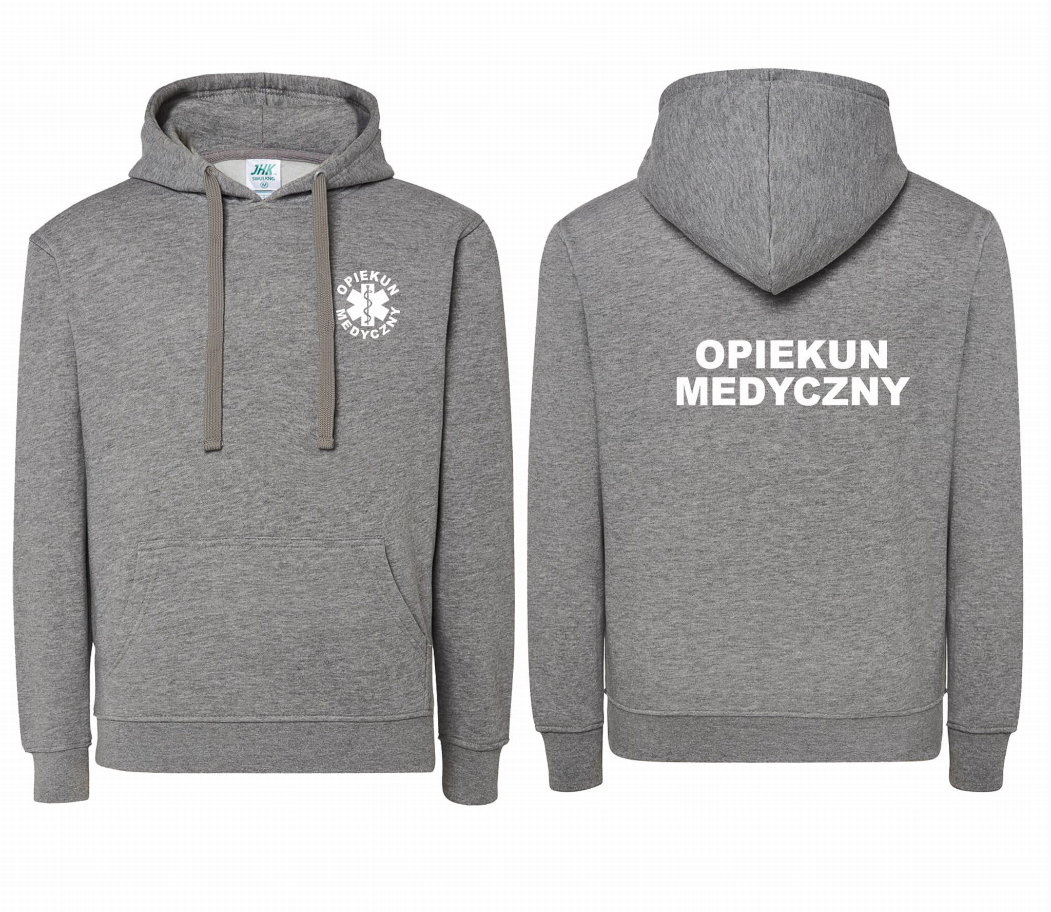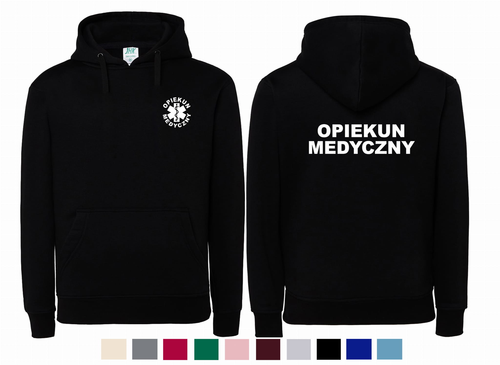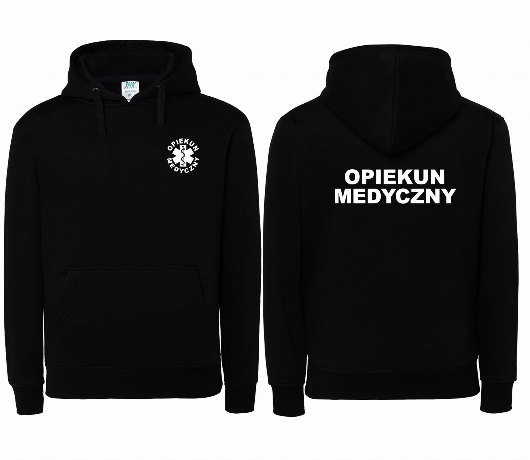 Bluza damska z kapturem kangurka JHK OPIEKUN MEDYCZNY nadruk PRZÓD i TYŁ