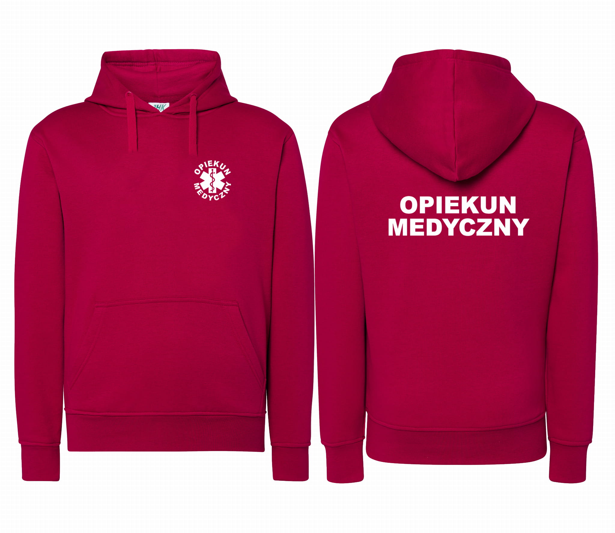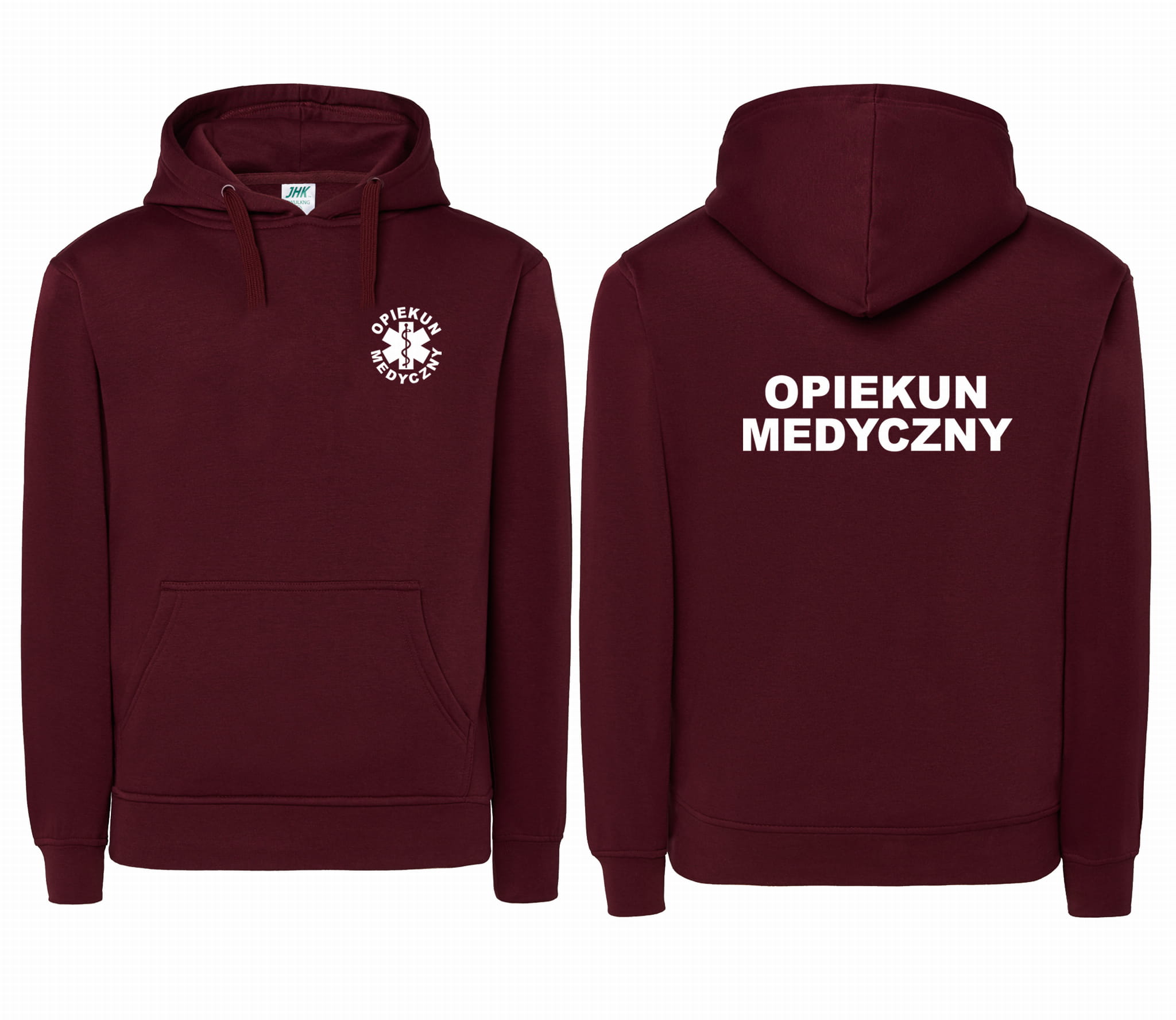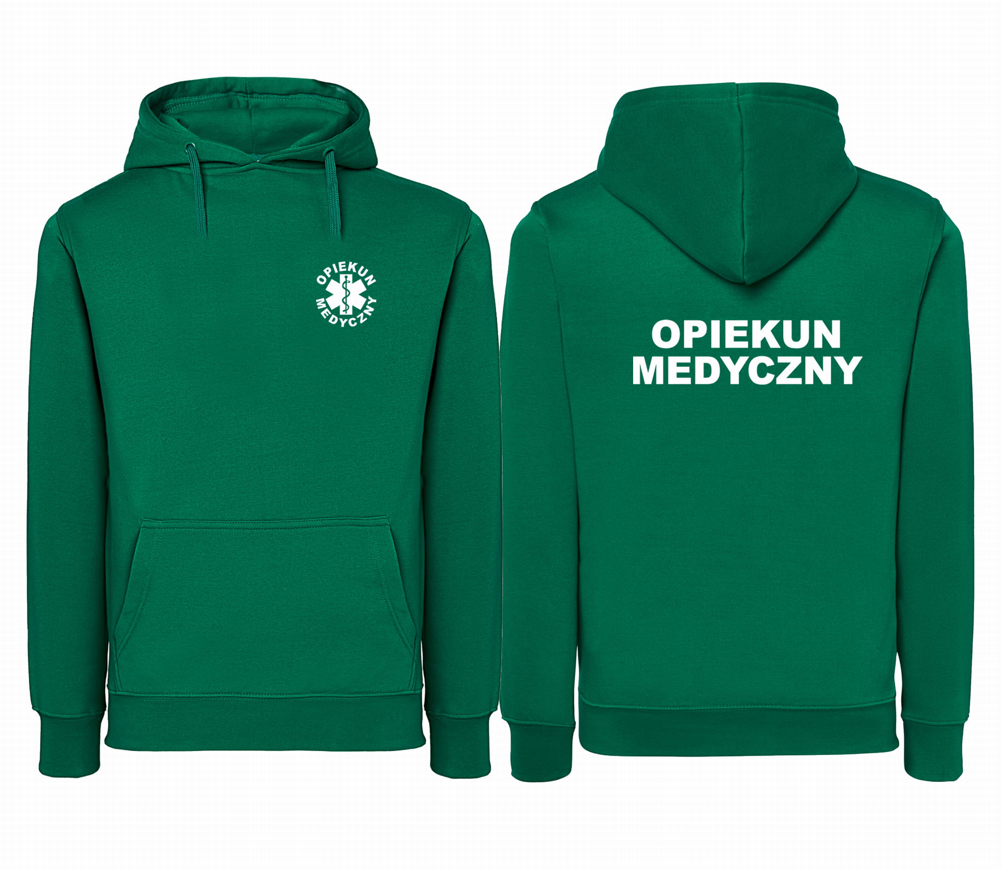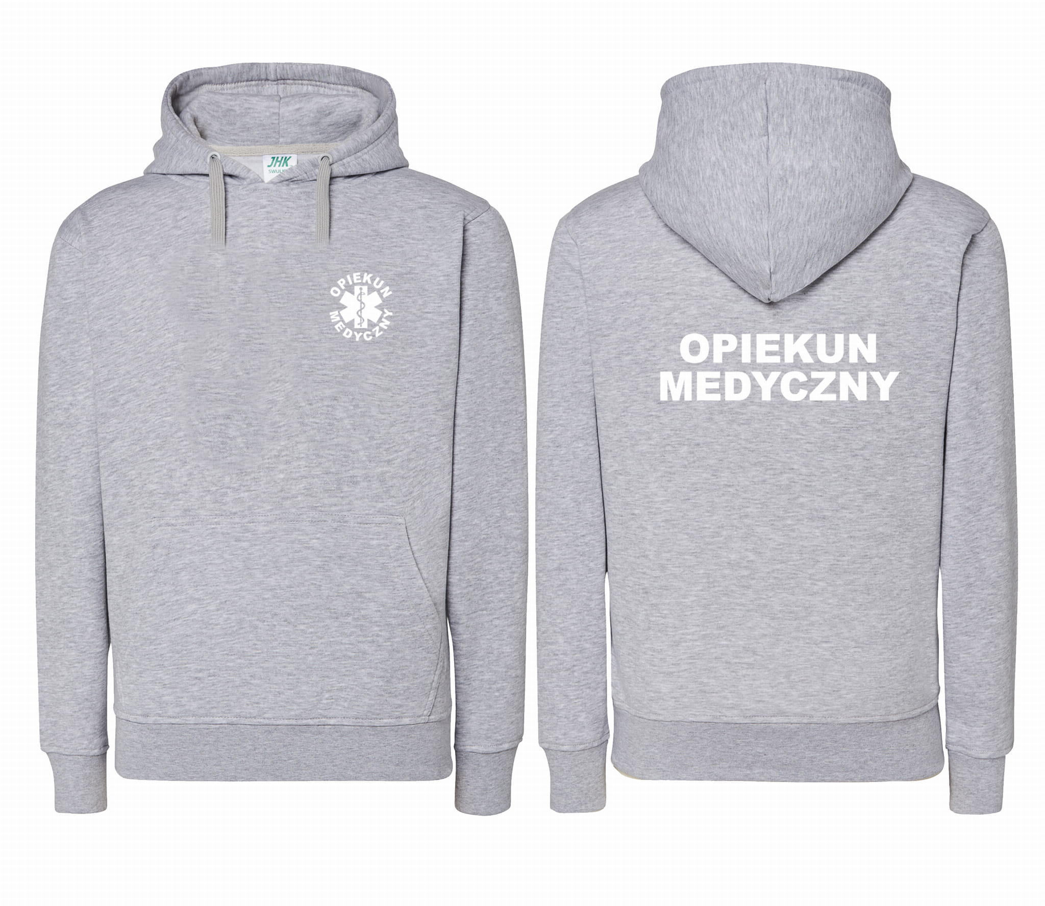 Bluza damska z kapturem kangurka JHK OPIEKUN MEDYCZNY nadruk PRZÓD i TYŁ