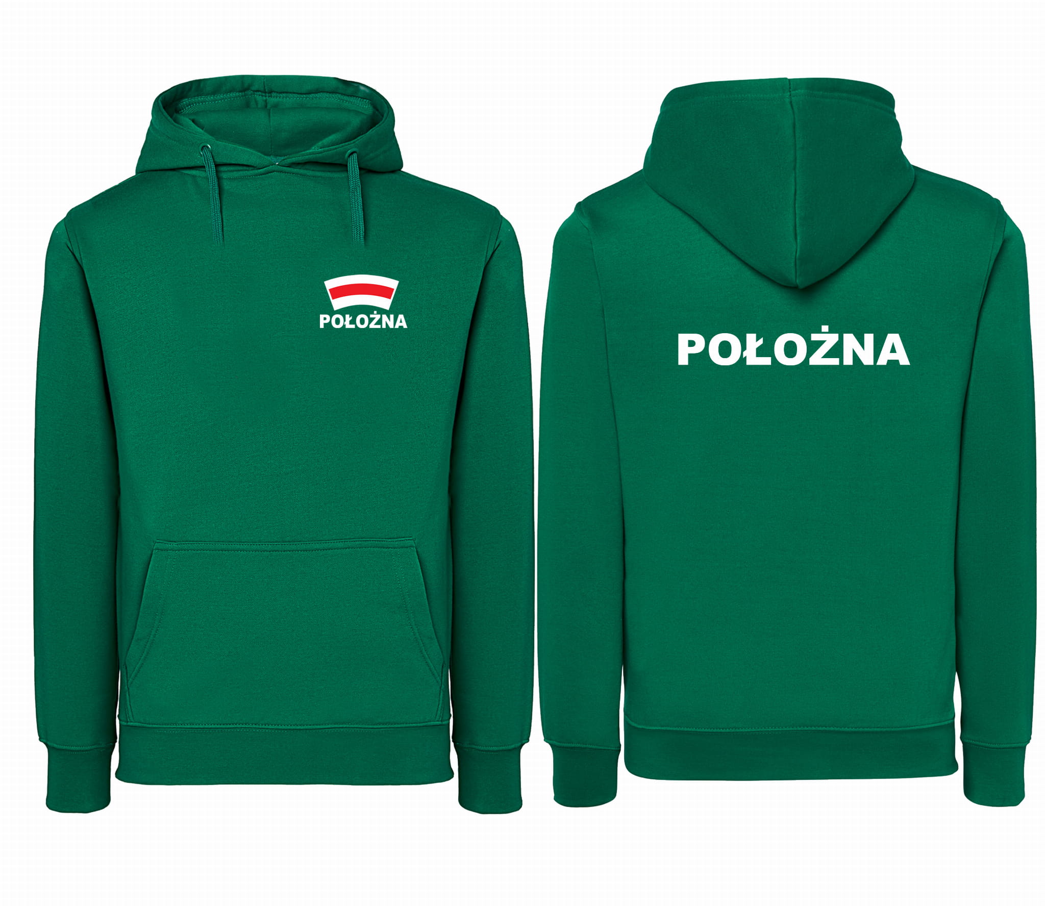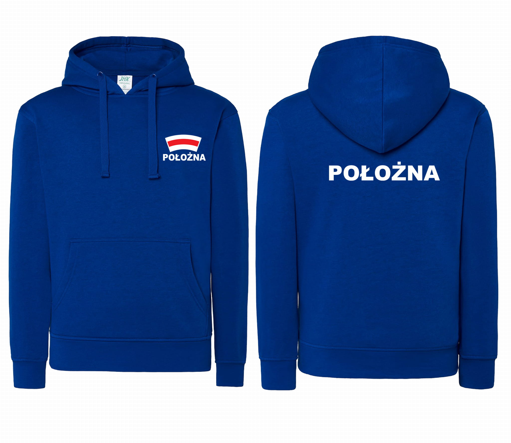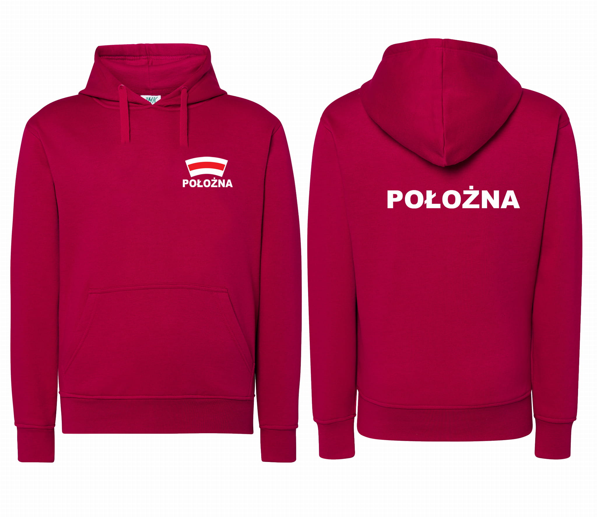 Bluza damska z kapturem kangurka JHK POŁOŻNA CZEPEK nadruk PRZÓD i TYŁ