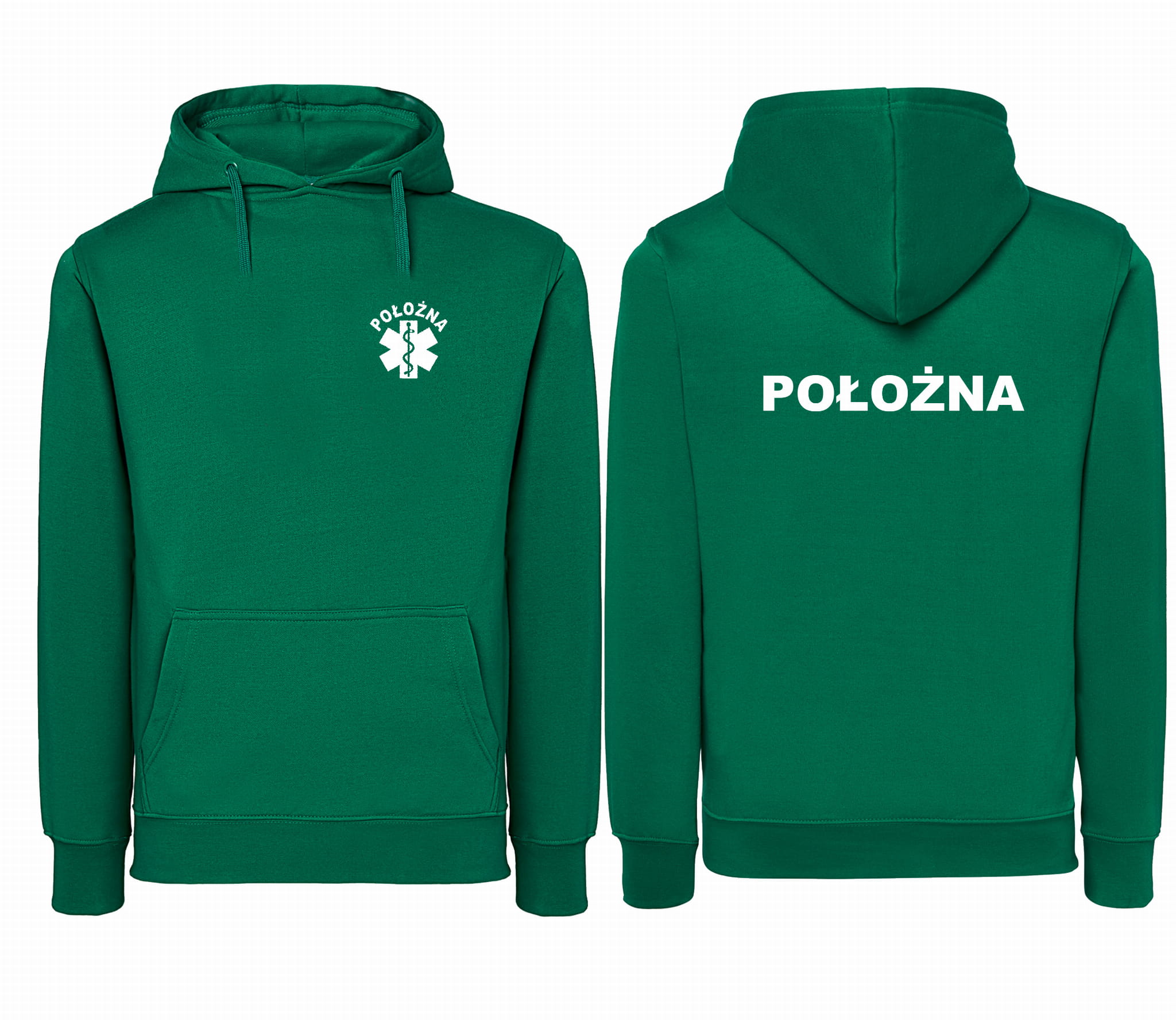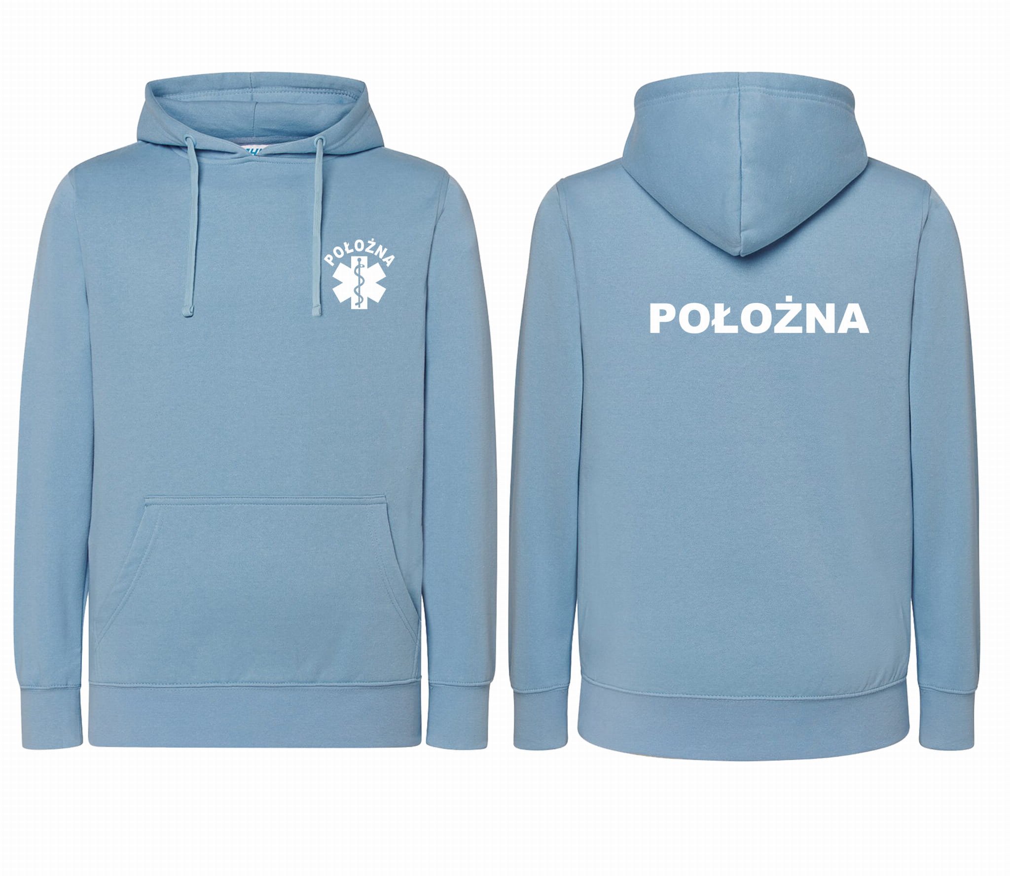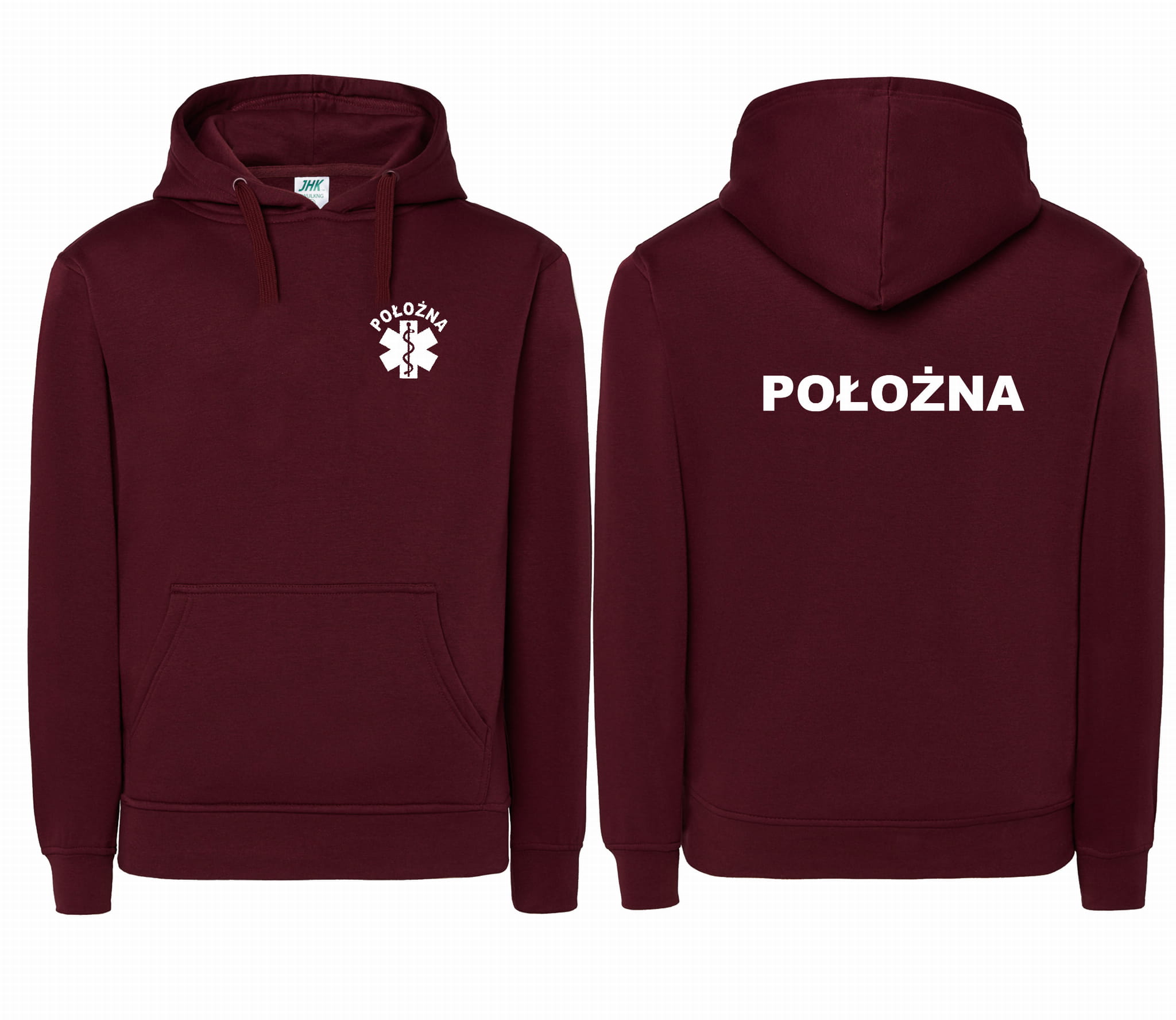 Bluza damska z kapturem kangurka JHK POŁOŻNA ESKULAP nadruk PRZÓD i TYŁ