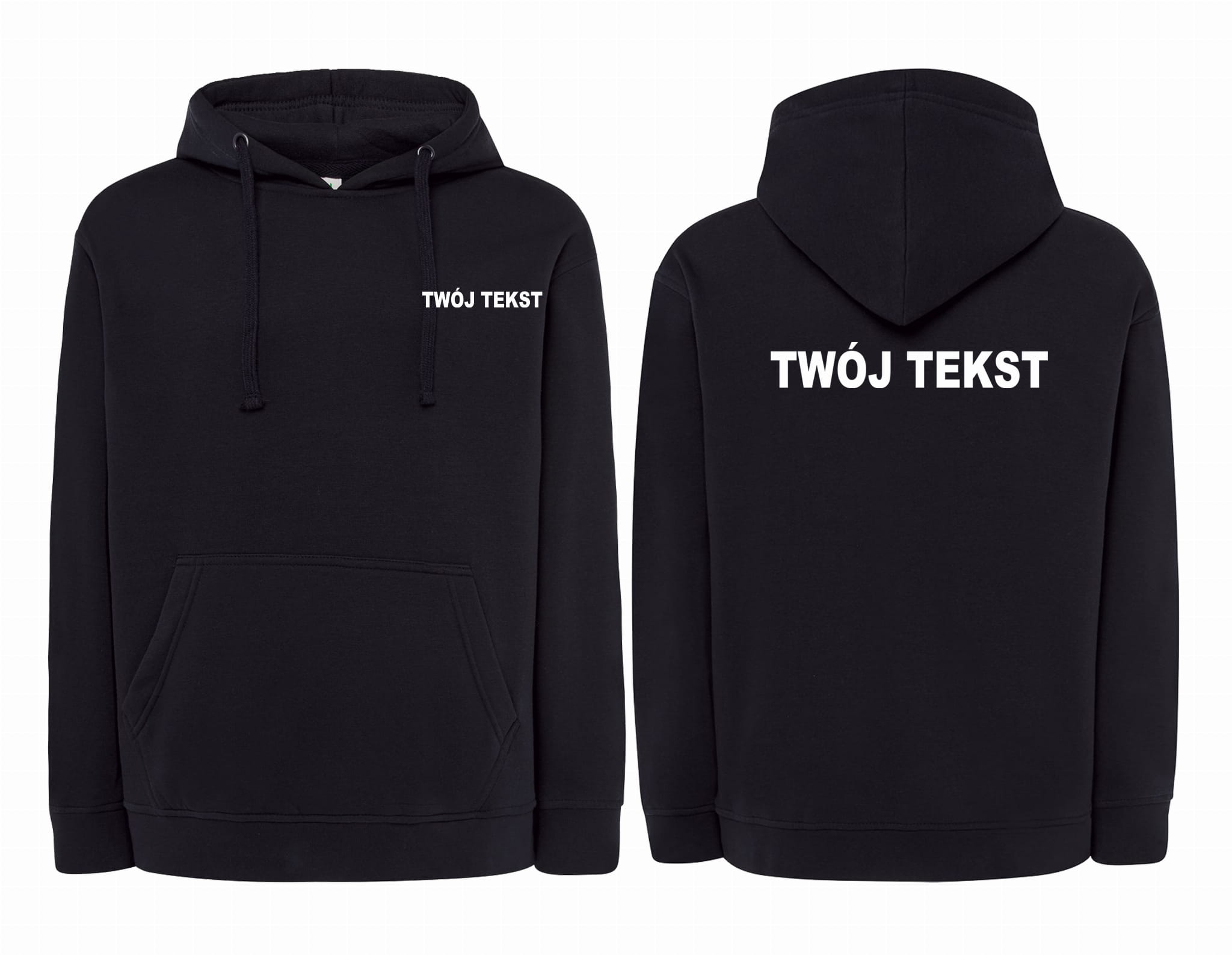 Bluza męska z kapturem kangurka TWÓJ TEKST NAPISY nadruk PRZÓD i TYŁ