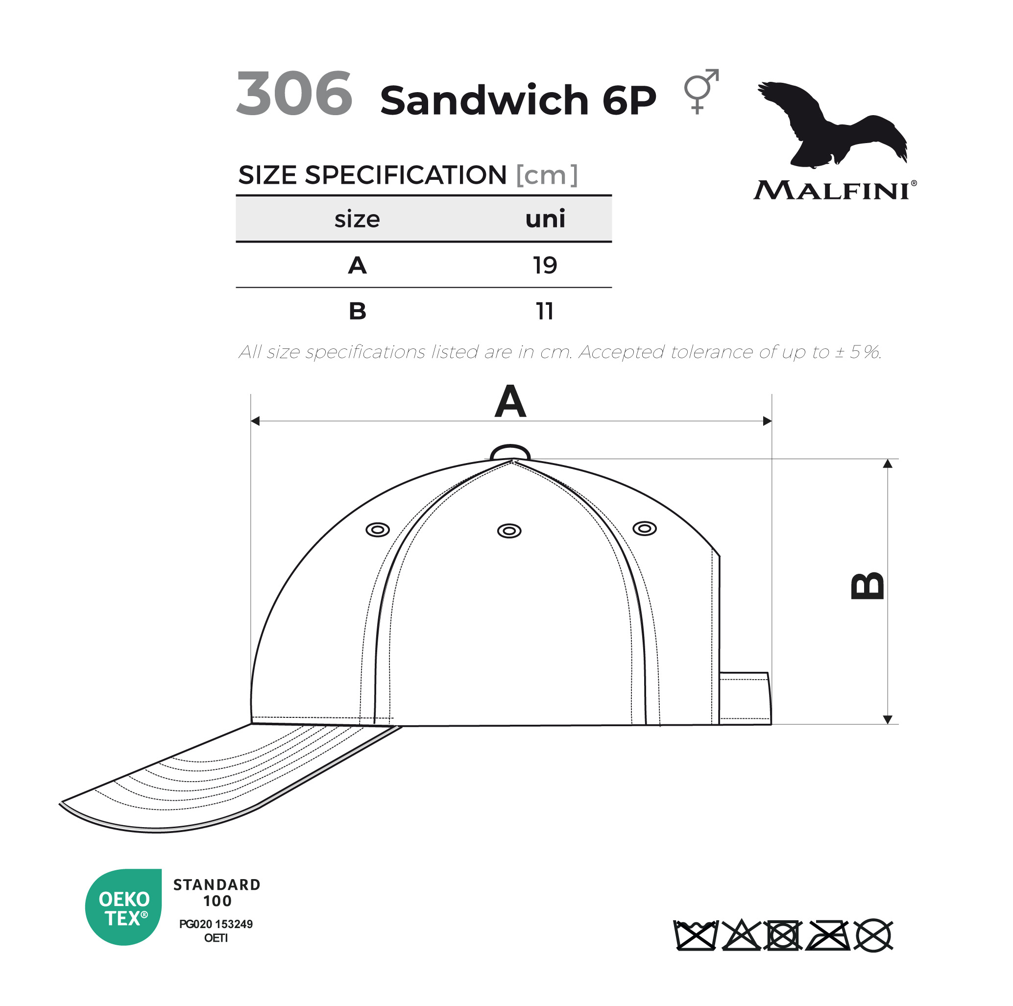 Czapka z daszkiem Unisex Sandwich 6P (306) Malfini