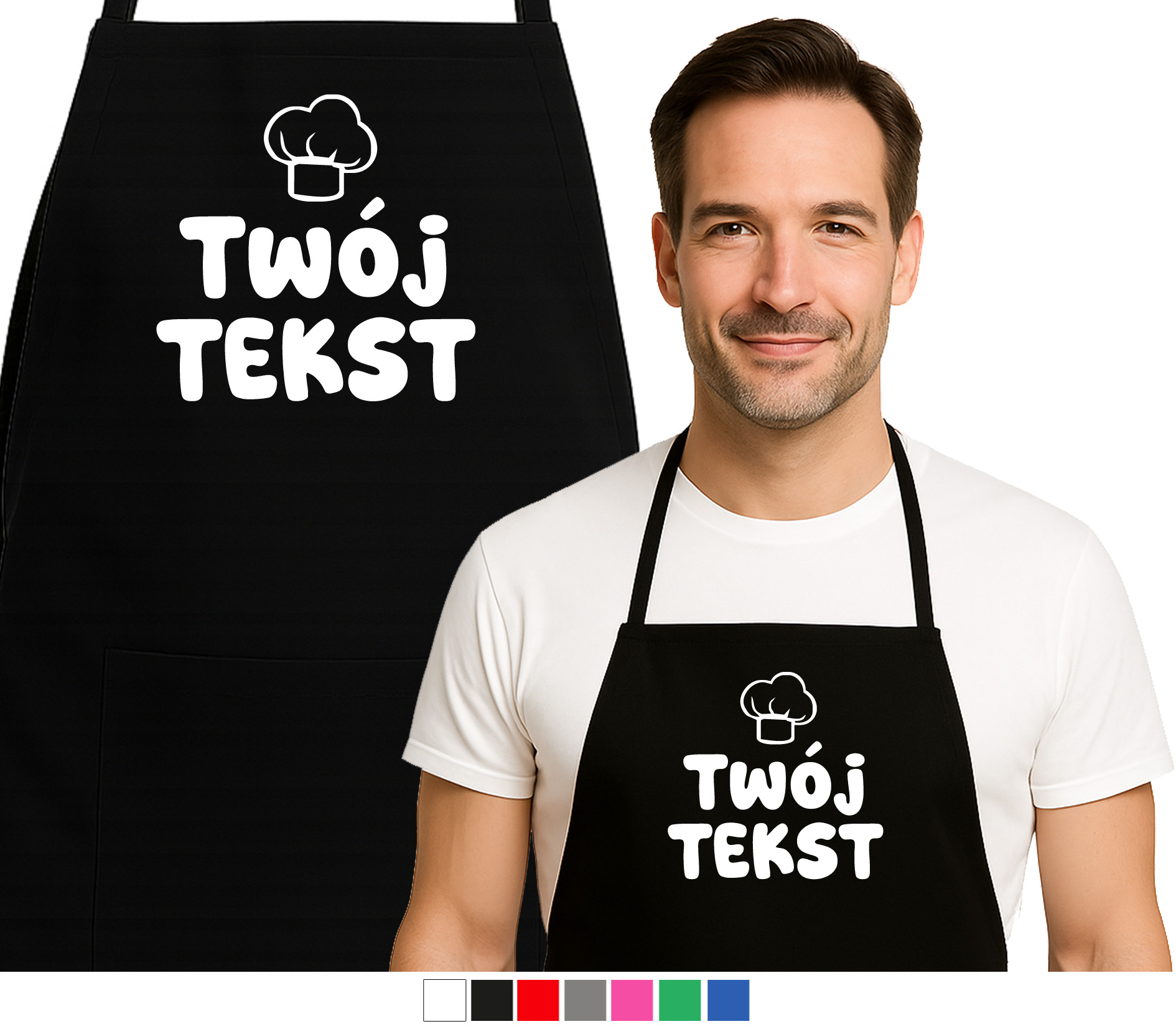 Fartuch kuchenny TWÓJ TEKST, IMIĘ, NAPIS "czapka kucharska"