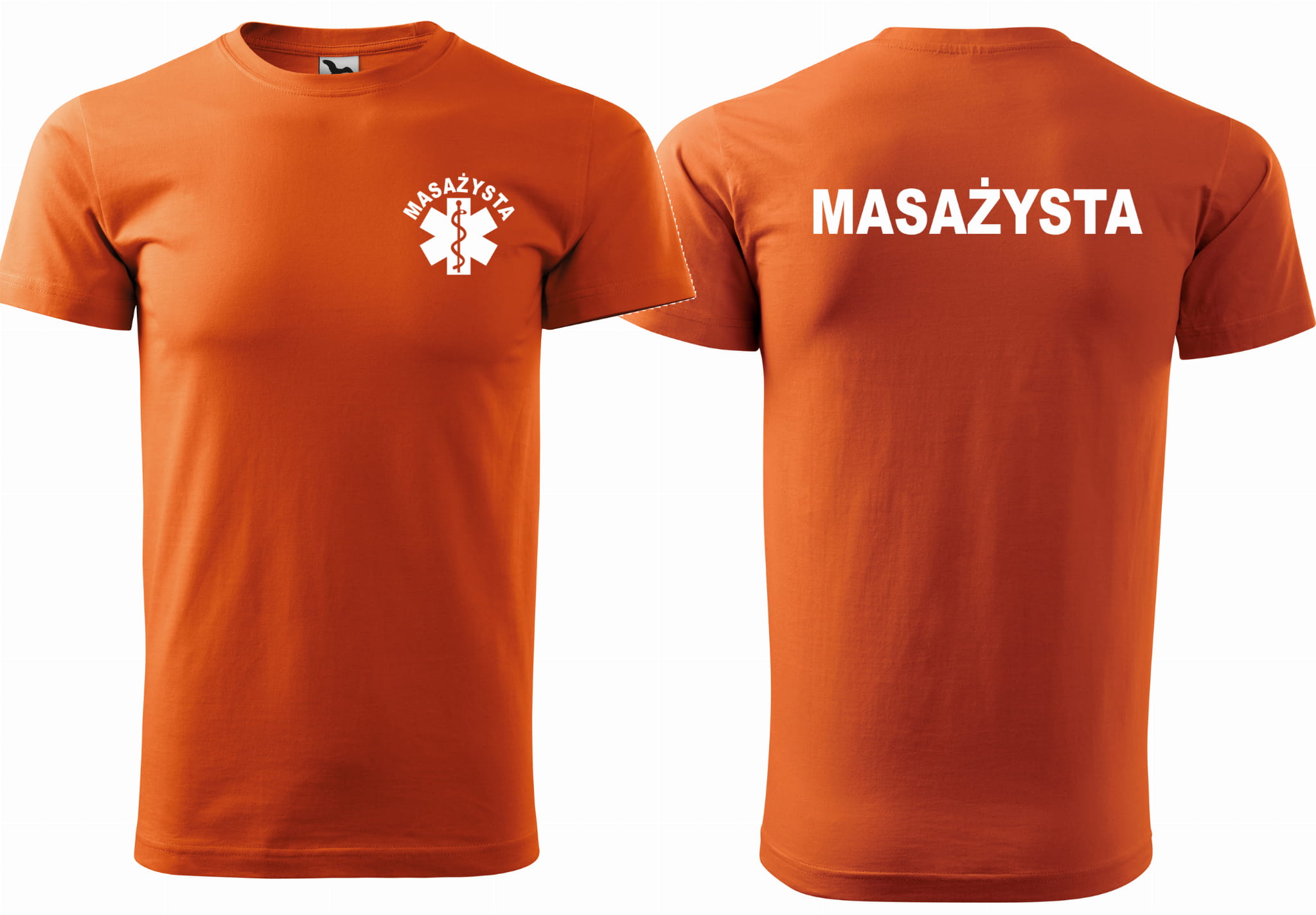 KOSZULKA męska BASIC MASAŻYSTA Z ESKULAPEM POMARAŃCZOWA (11)