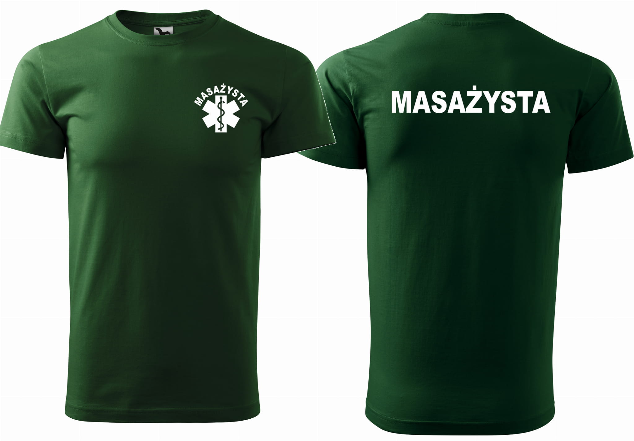 KOSZULKA męska BASIC MASAŻYSTA Z ESKULAPEM ZIELEŃ BUTELKOWA (06)
