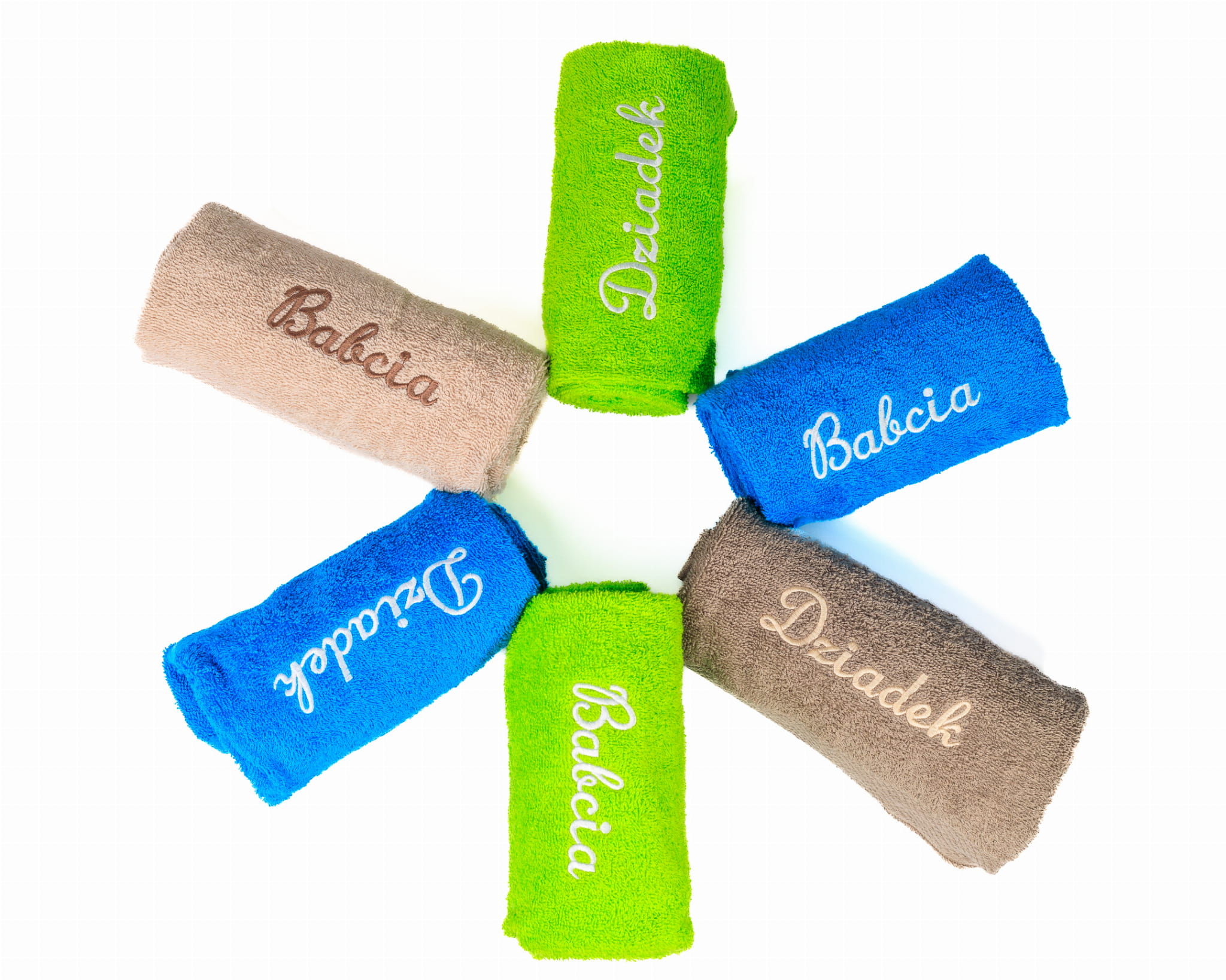 Komplet ręczników z haftem Dziadek i Babcia dla prezent Dzień Dziadka Babci Niebieski i Zielony