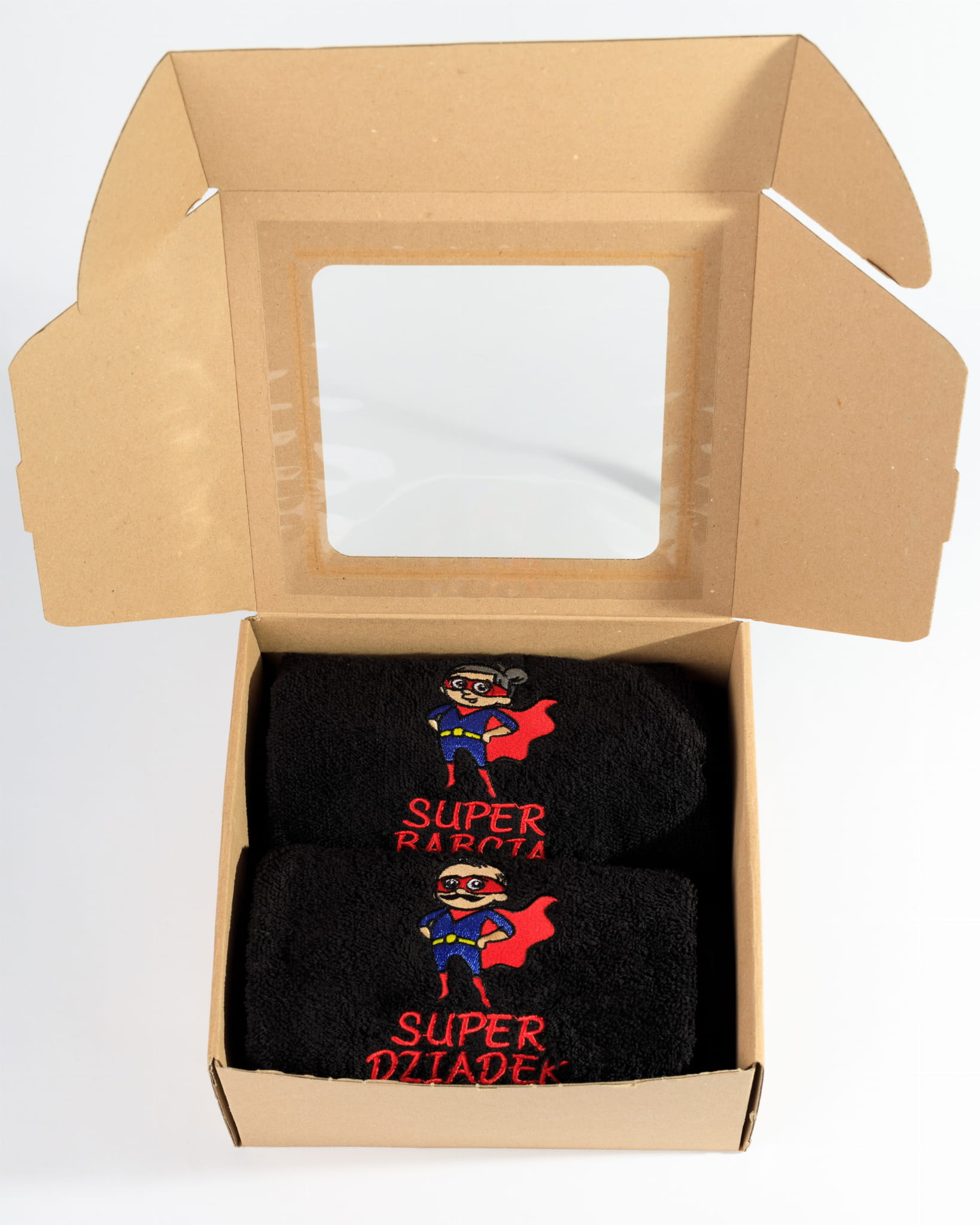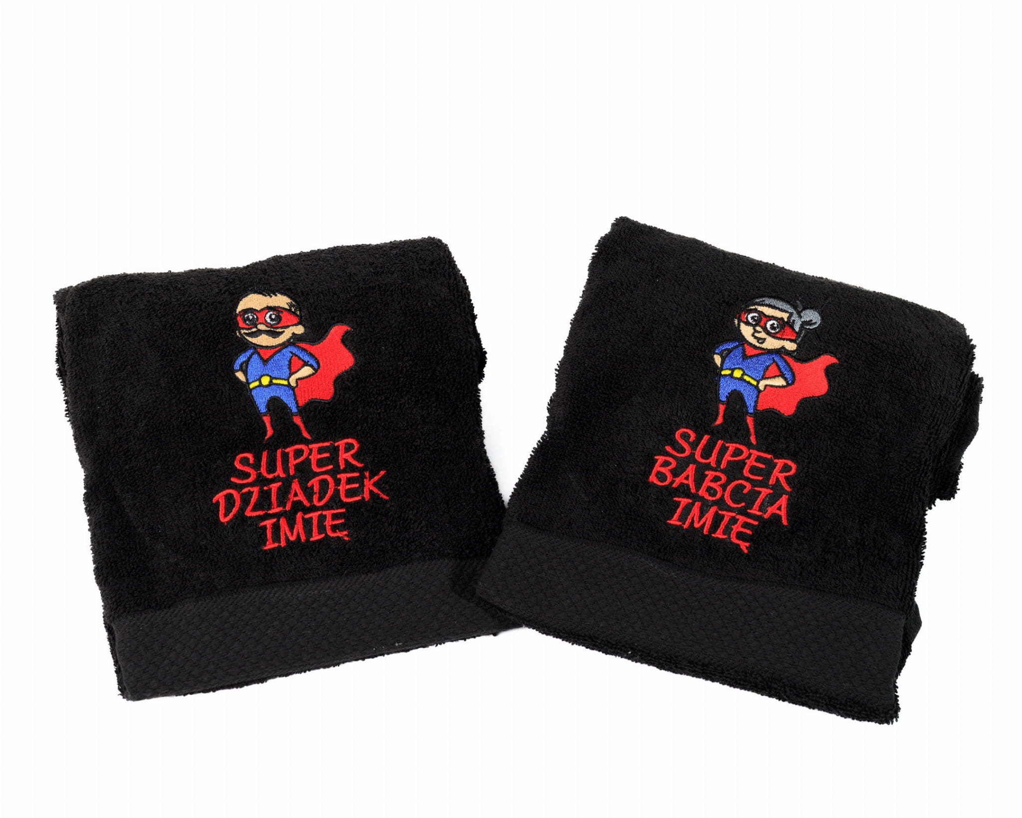 Komplet ręczników z haftem Super Dziadek Super Babcia IMIĘ dla prezent Dzień Dziadka Babci CZARNE