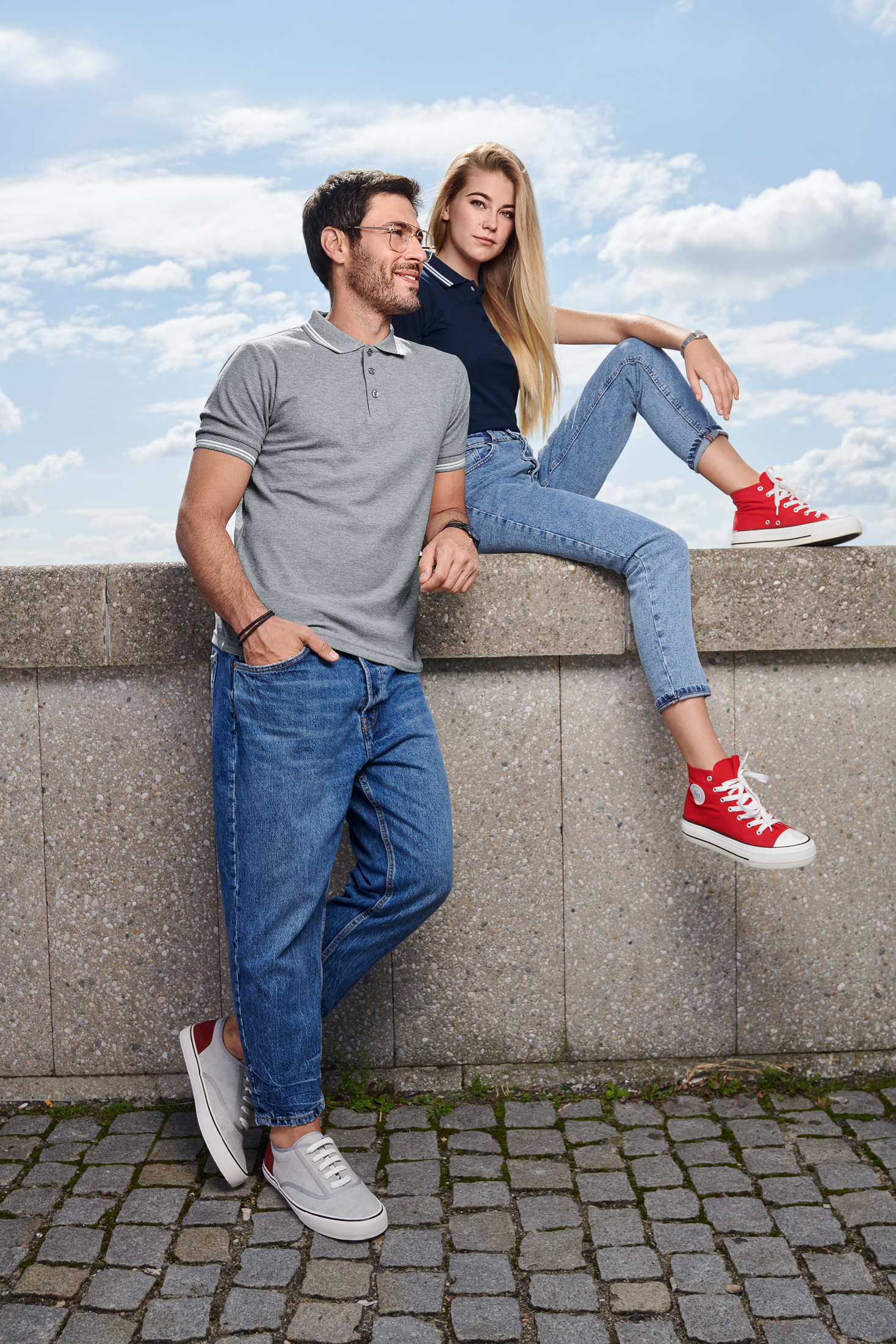 - kołnierzyk i mankiety z dzianiny ściągaczowej 1:1 z kontrastowym paskiem