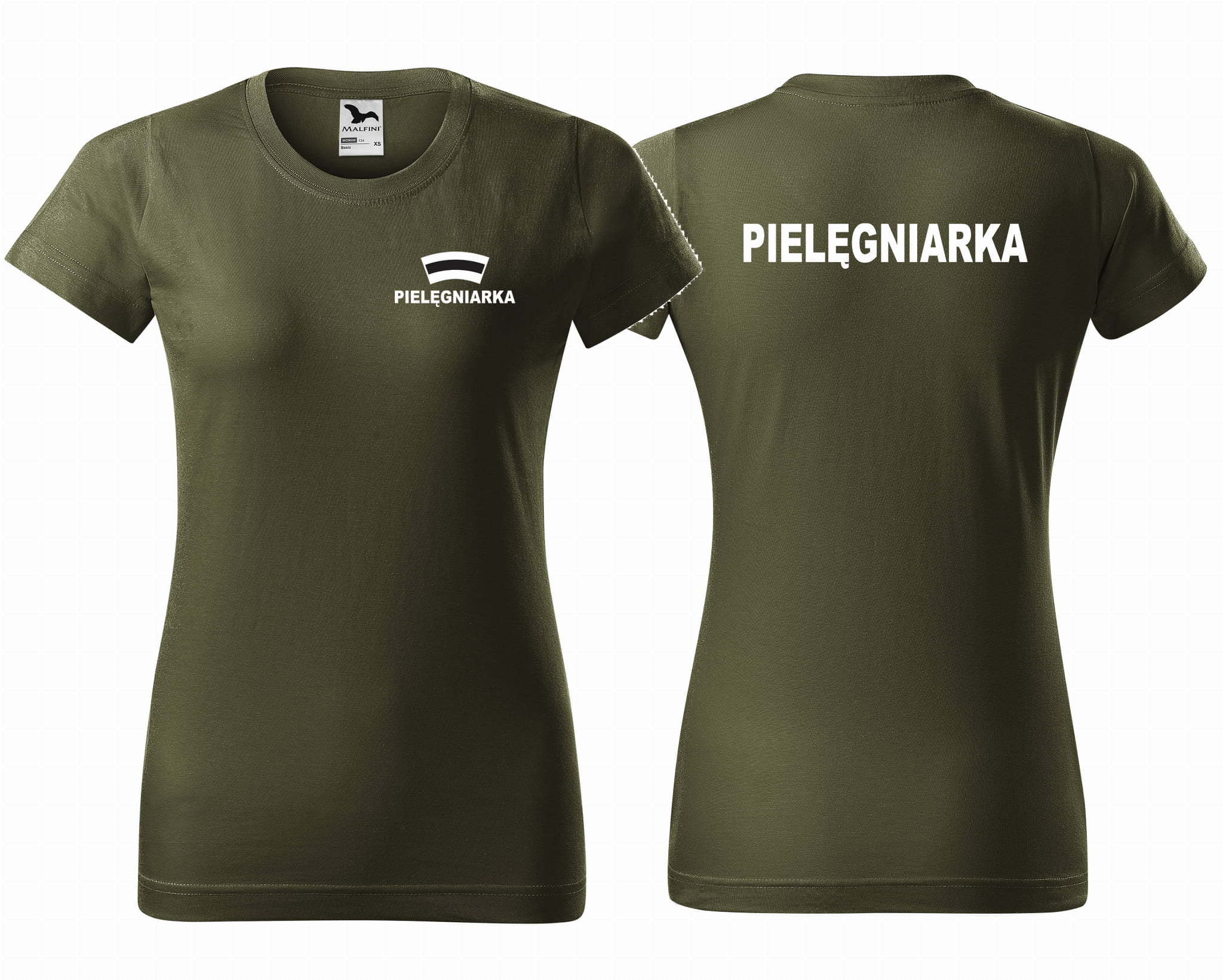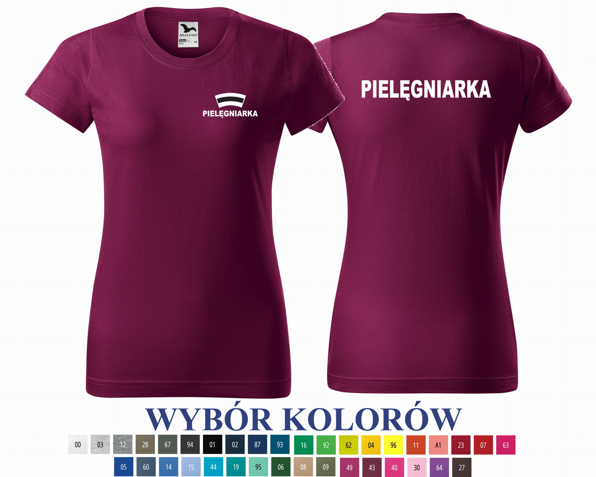 Koszulka damska BASIC PIELĘGNIARKA CZEPEK nadruk PRZÓD I TYŁ