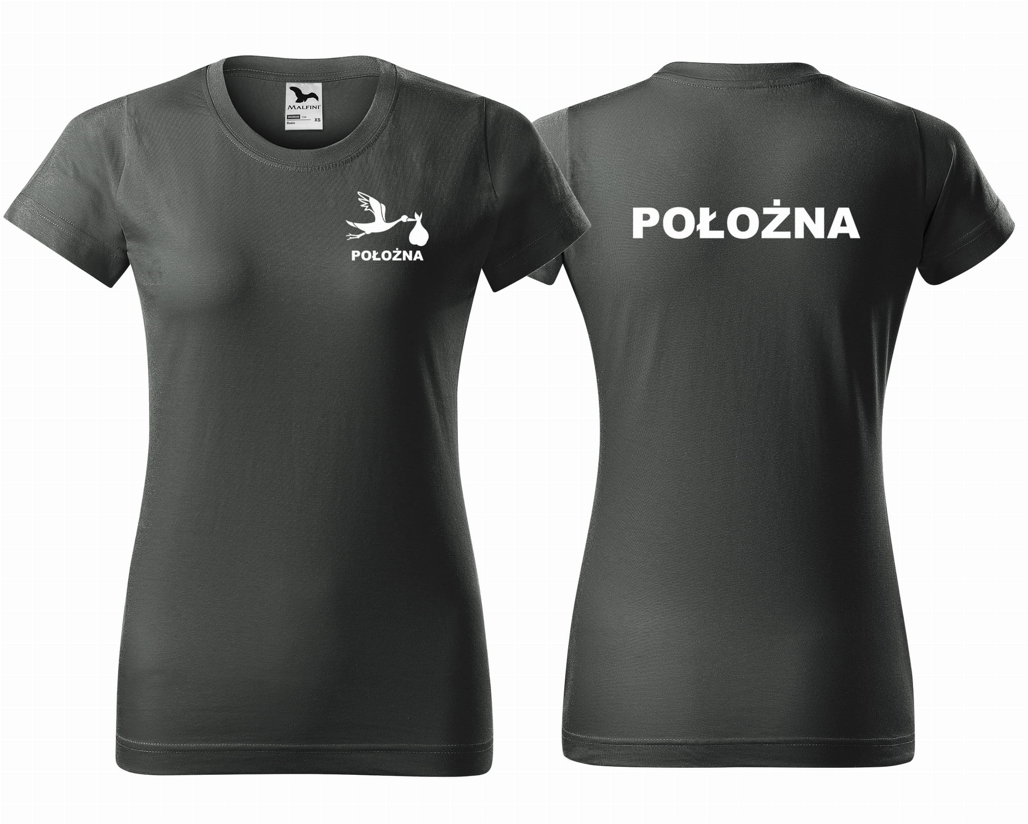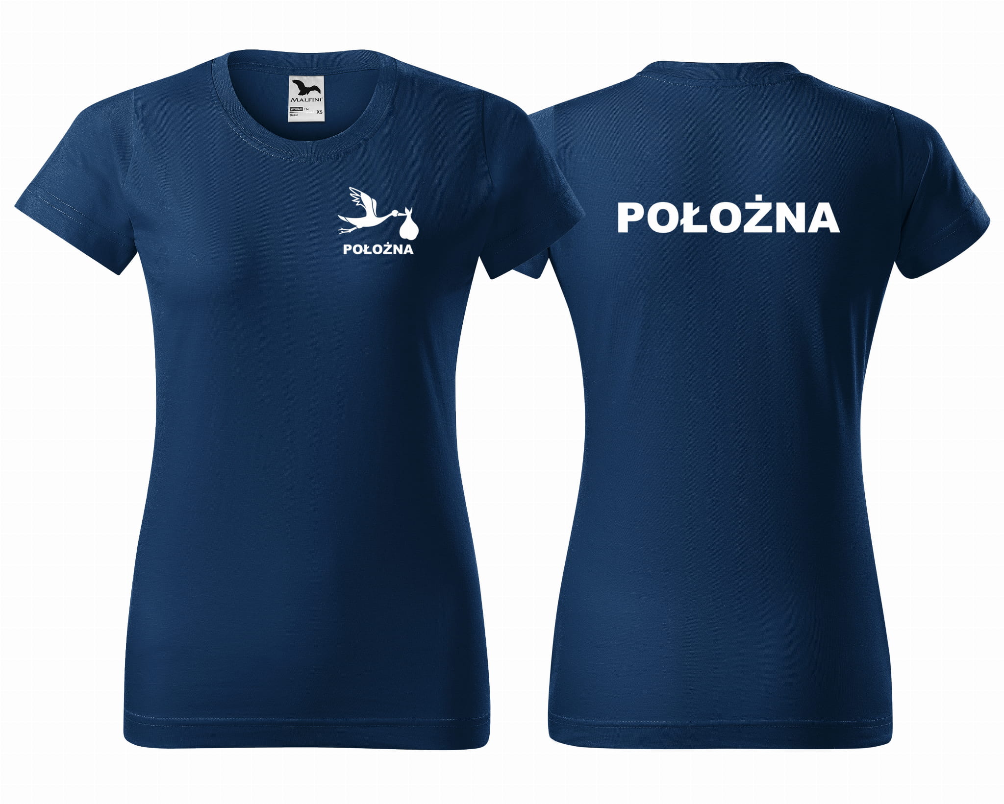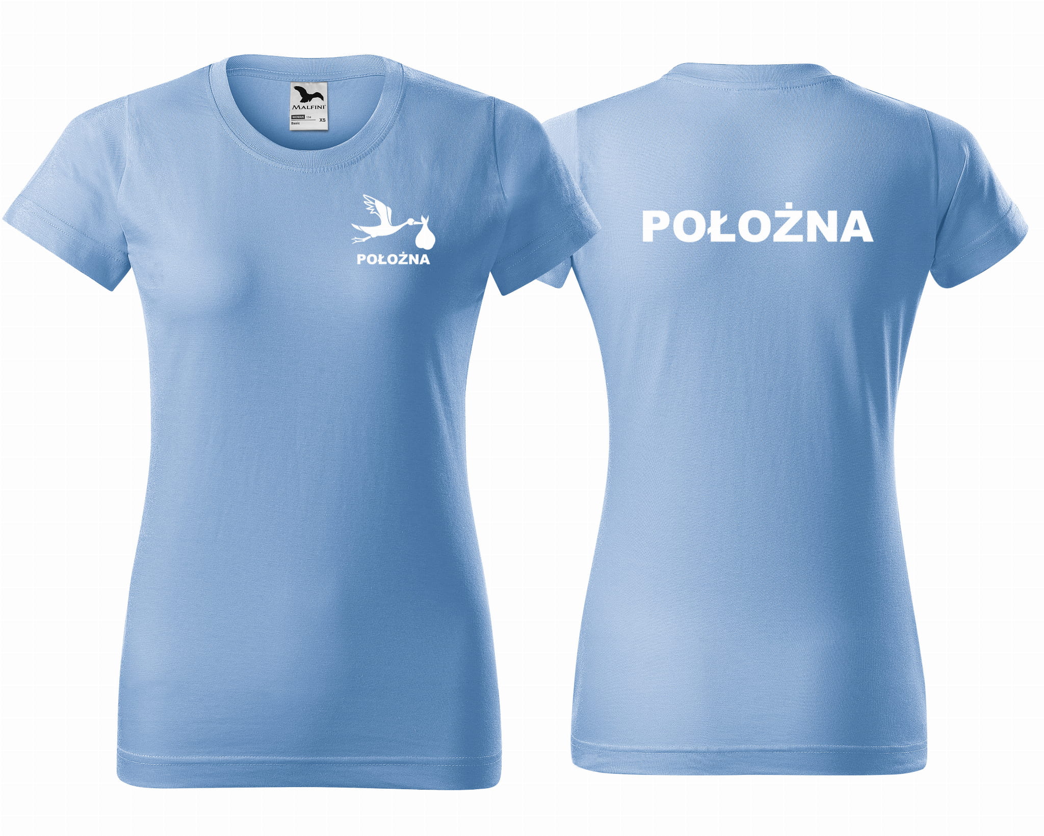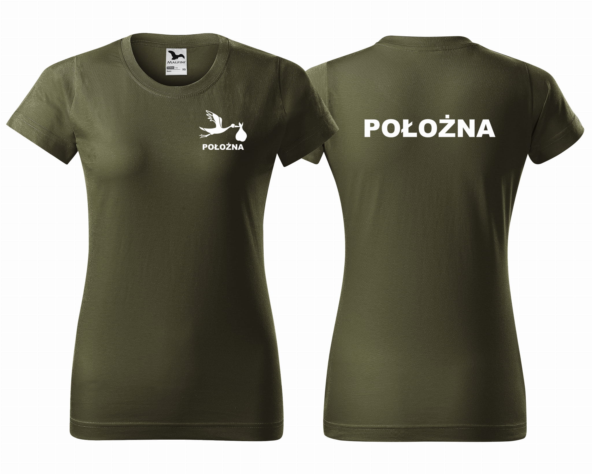 Koszulka damska BASIC POŁOŻNA BOCIAN nadruk PRZÓD I TYŁ