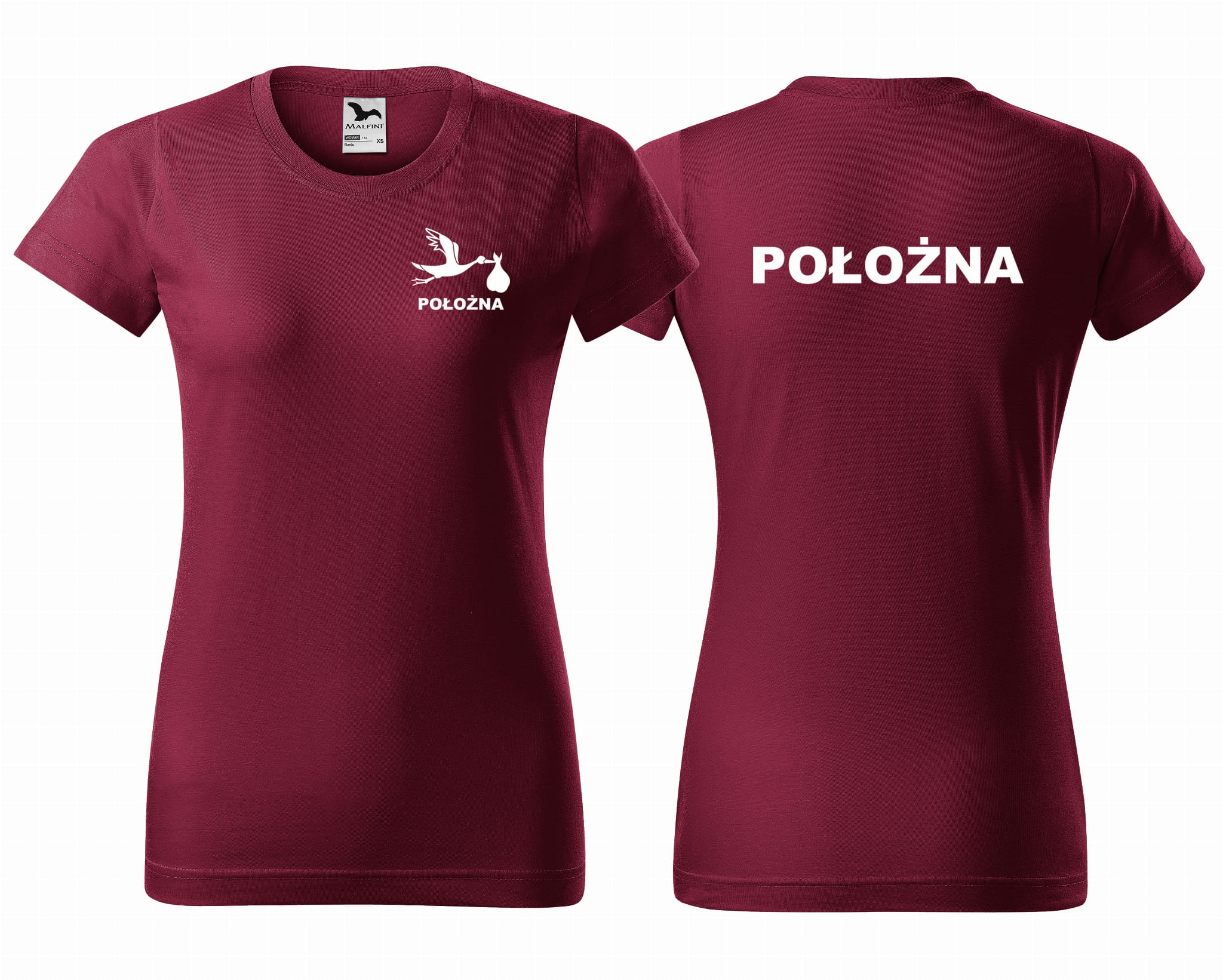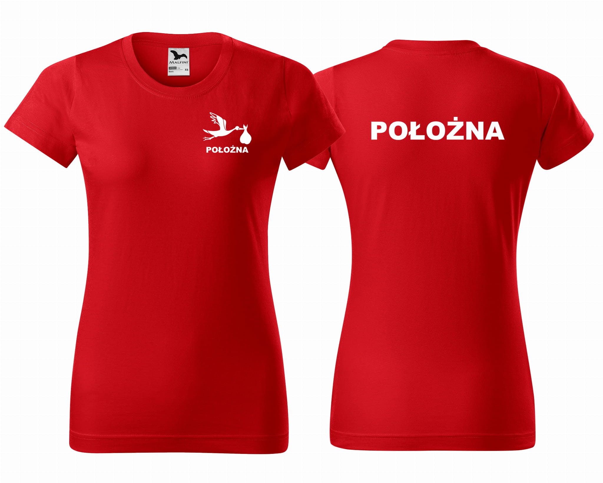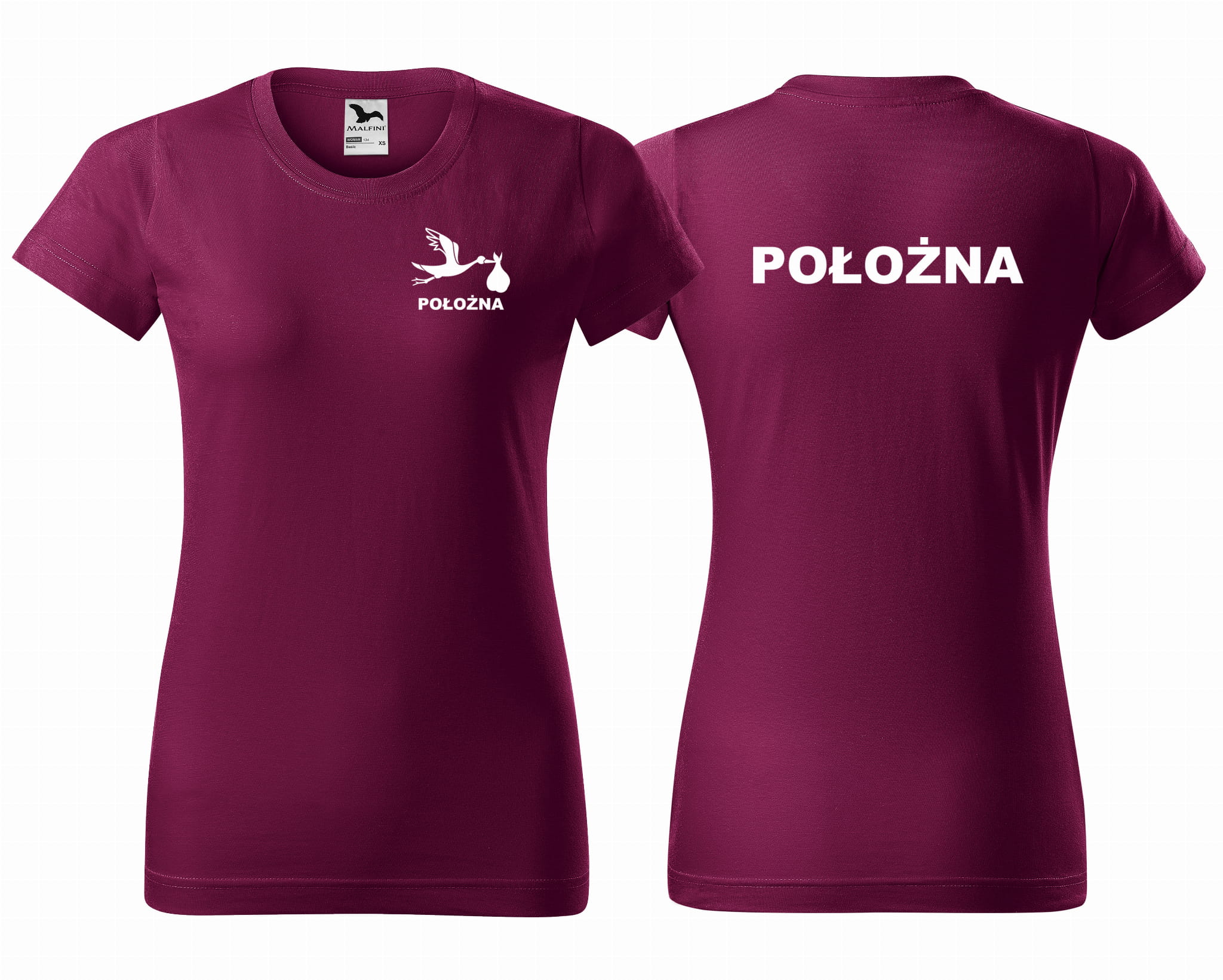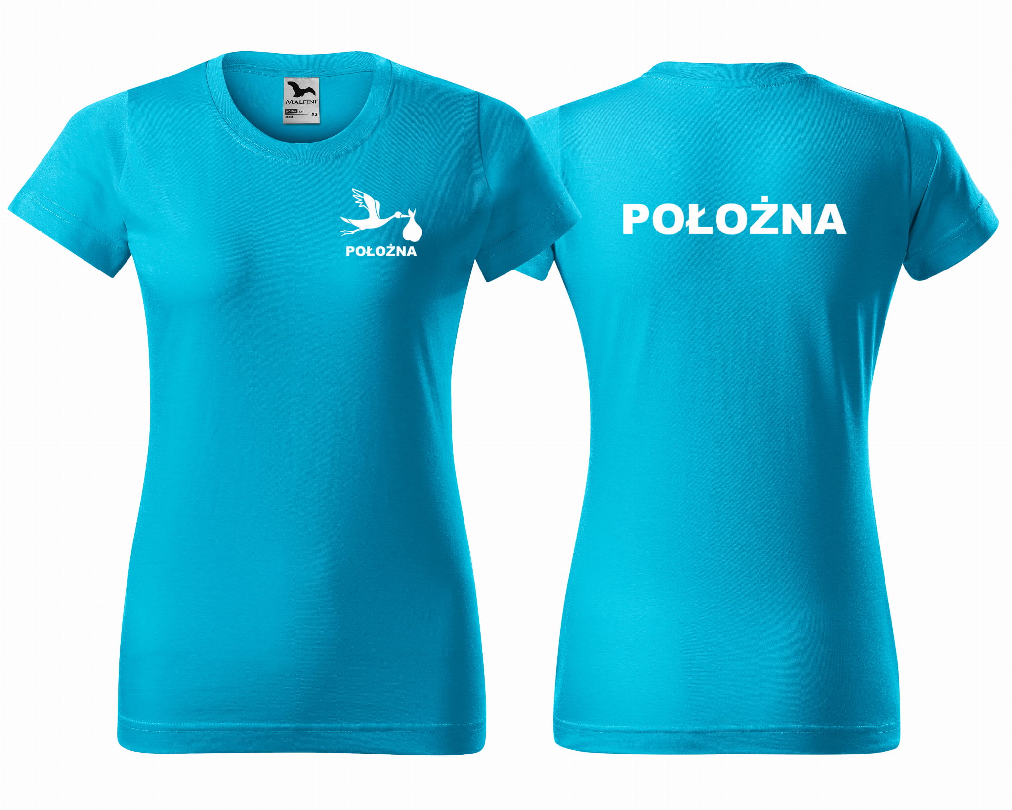 Koszulka damska BASIC POŁOŻNA BOCIAN nadruk PRZÓD I TYŁ