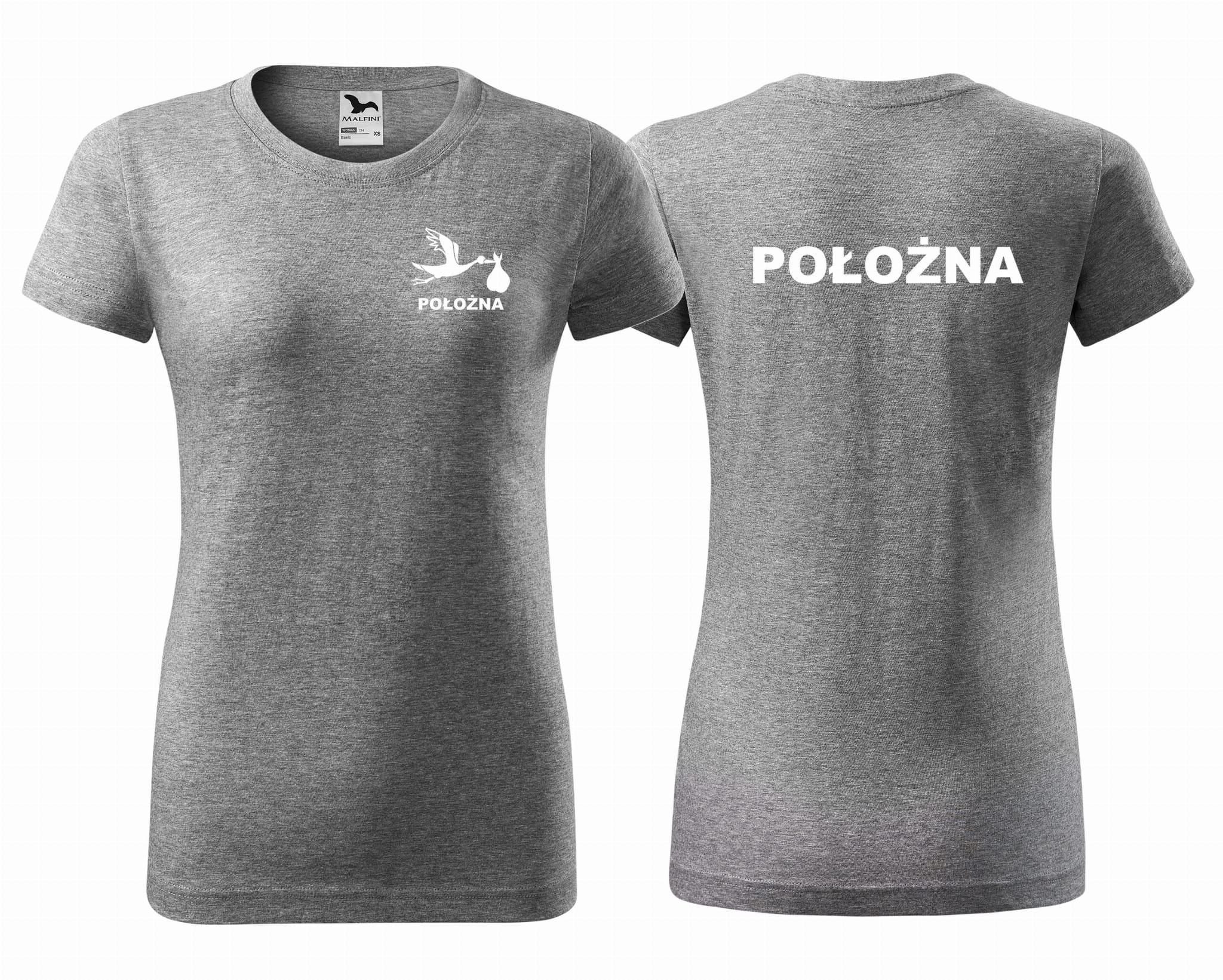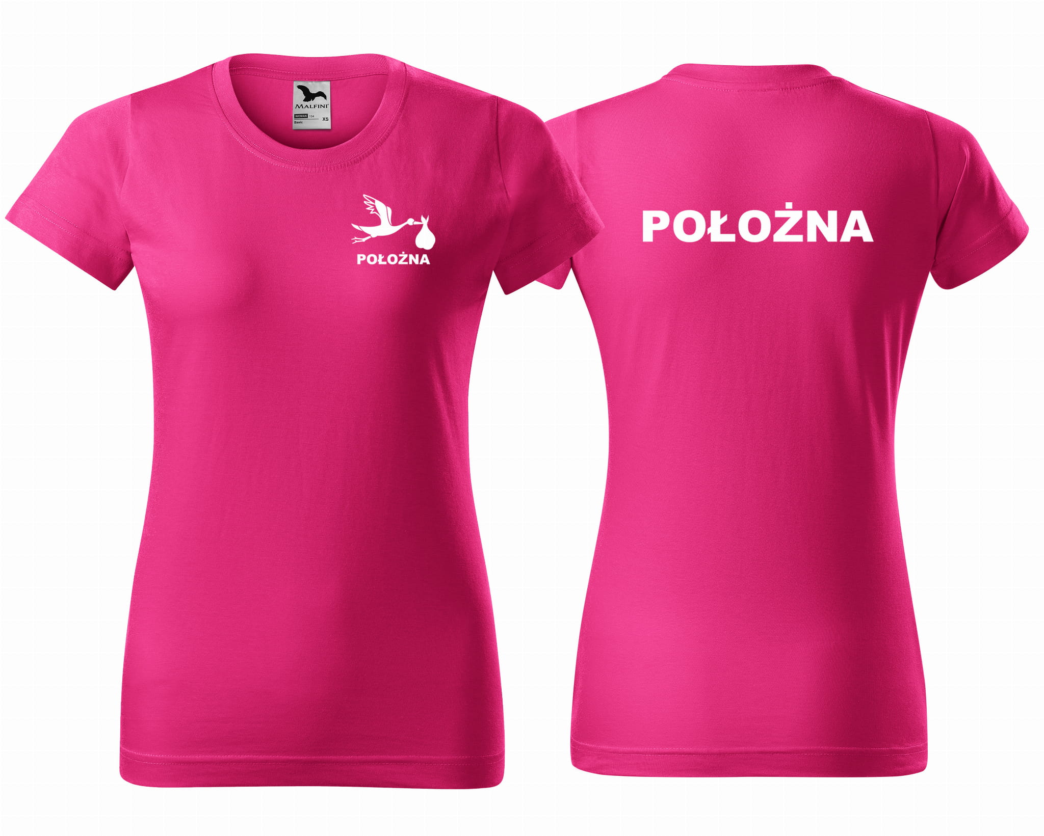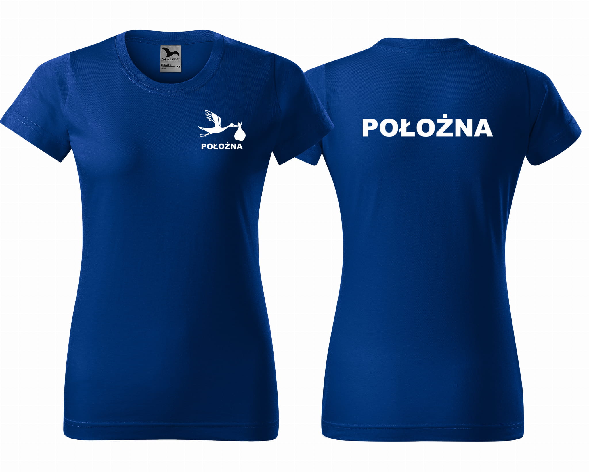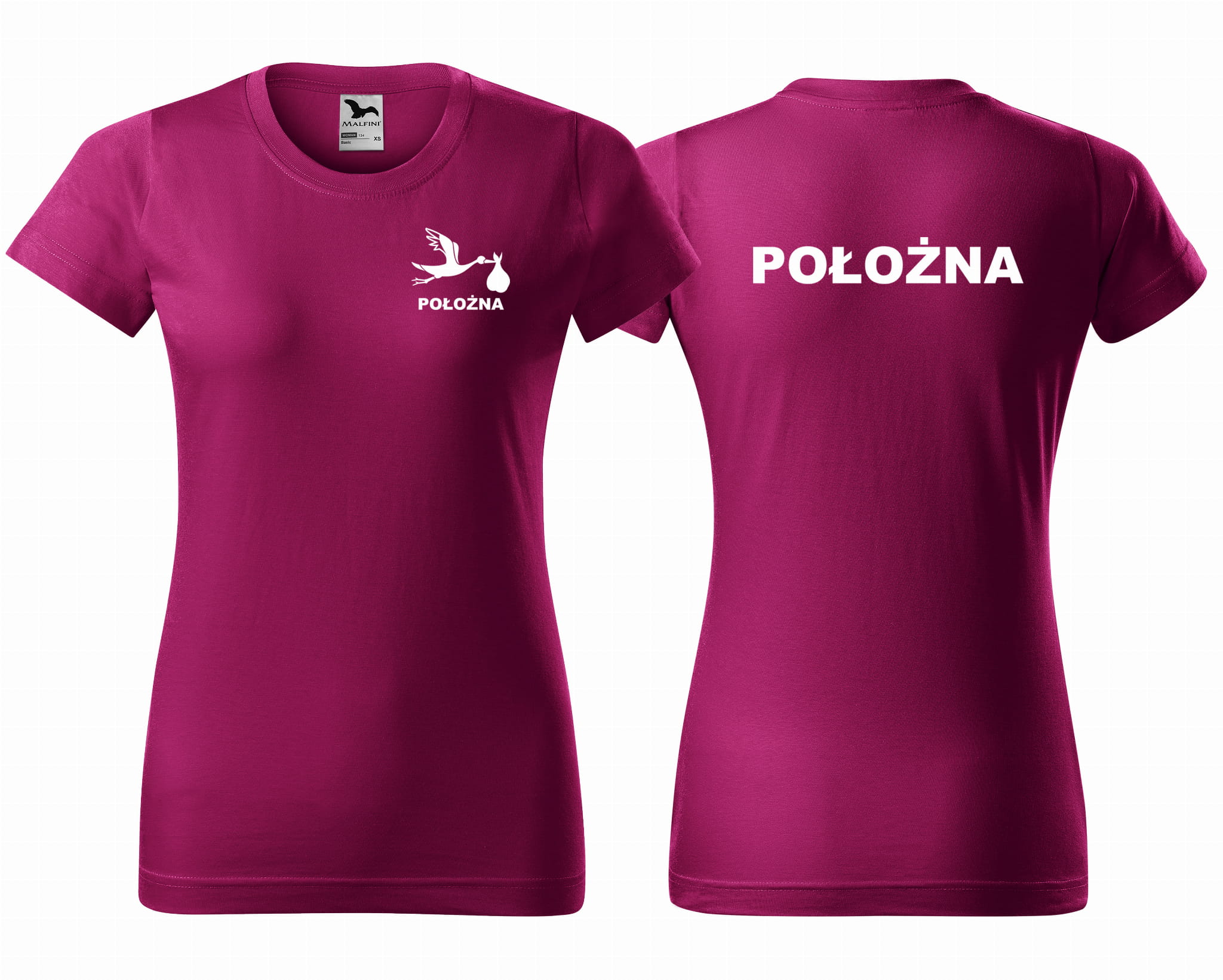 Koszulka damska BASIC POŁOŻNA BOCIAN nadruk PRZÓD I TYŁ