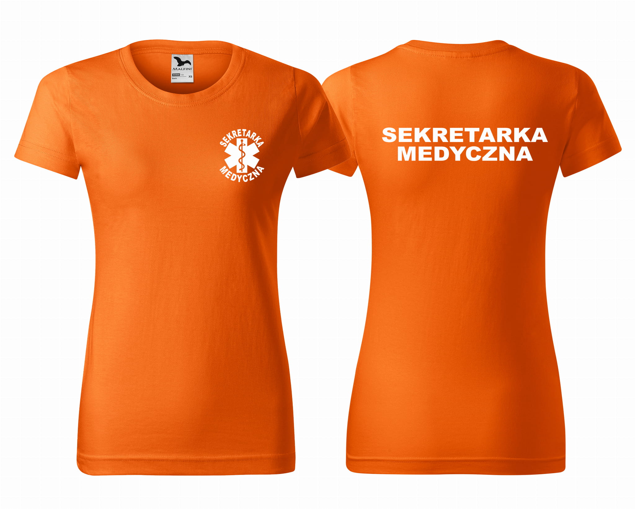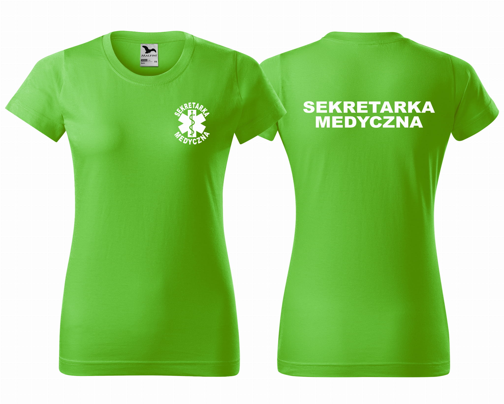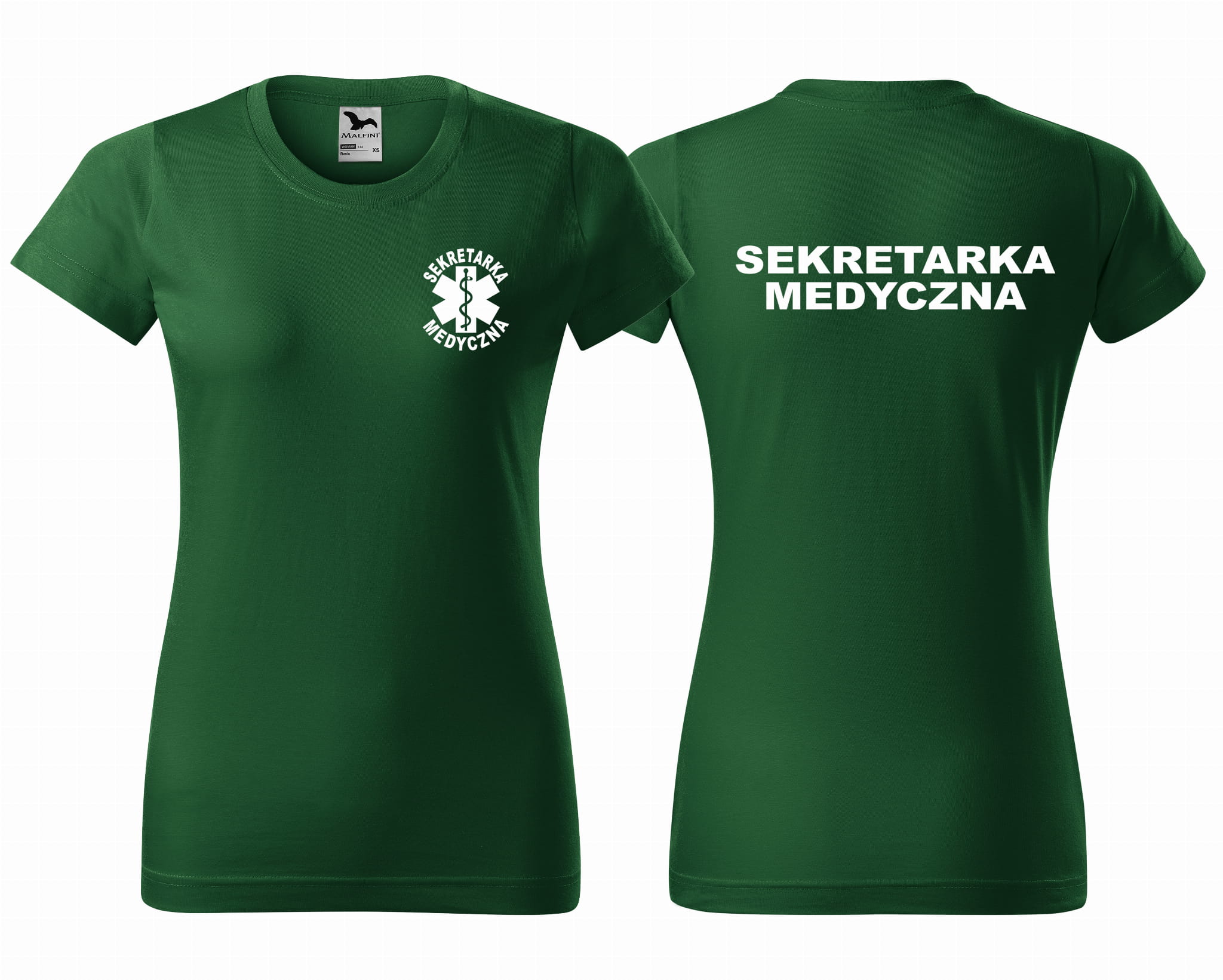 Koszulka damska BASIC SEKRETARKA MEDYCZNA + ESKULAP nadruk PRZÓD I TYŁ