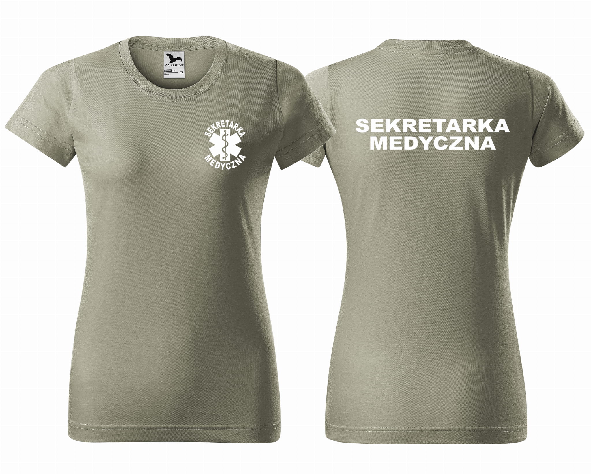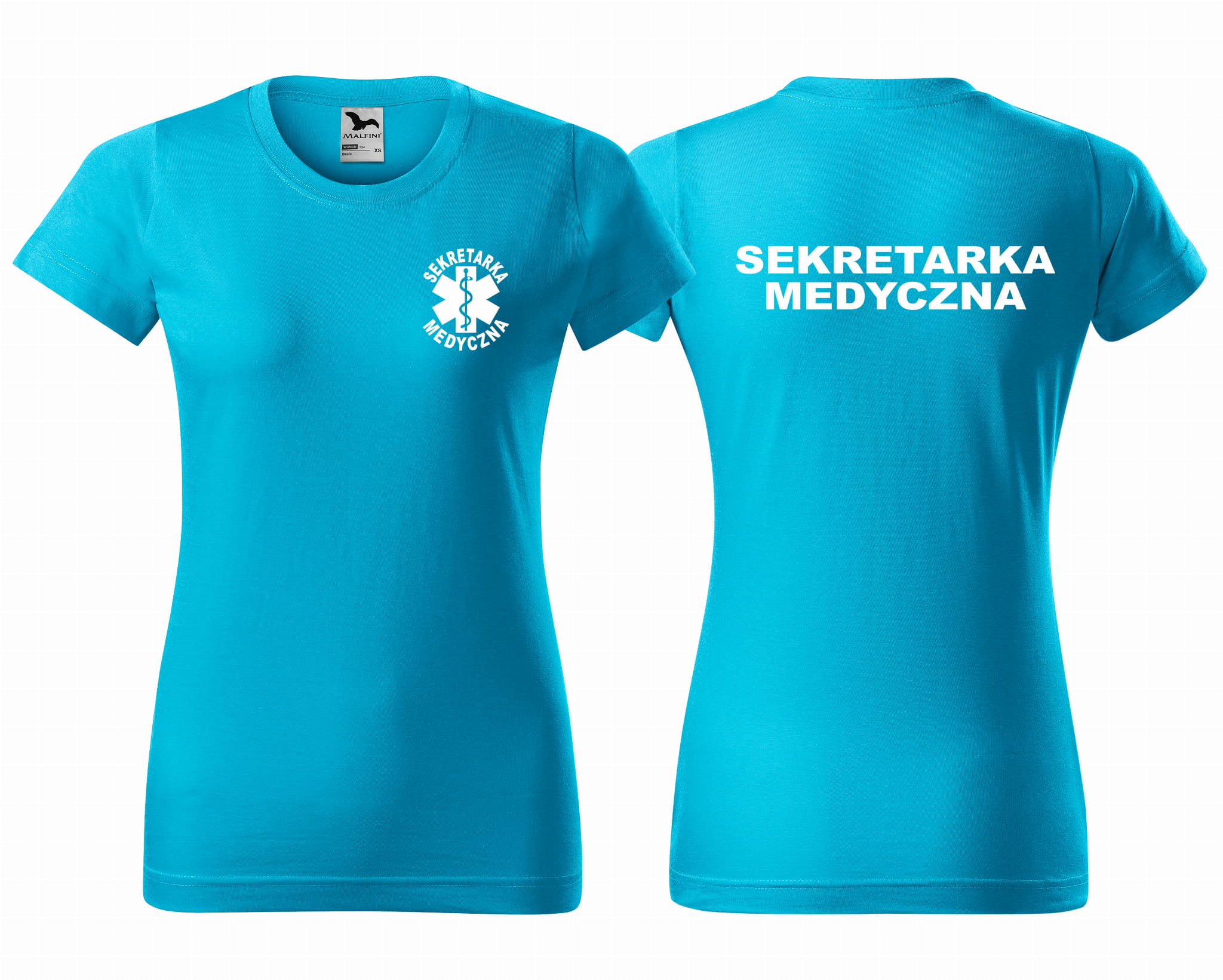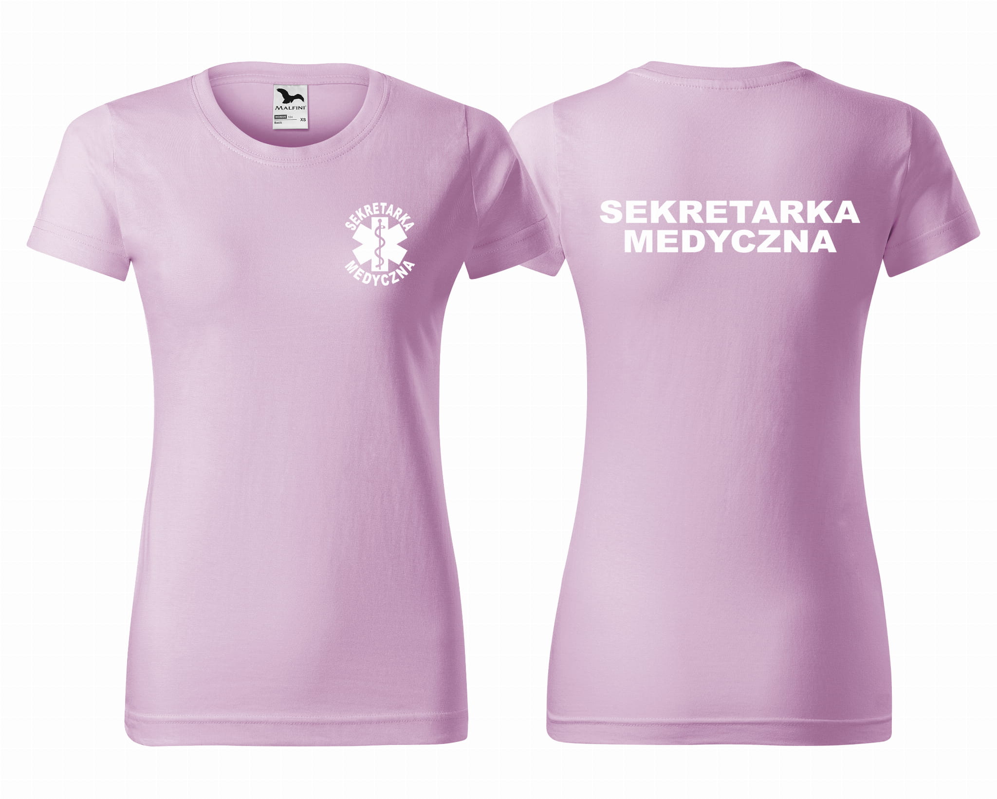 Koszulka damska BASIC SEKRETARKA MEDYCZNA + ESKULAP nadruk PRZÓD I TYŁ
