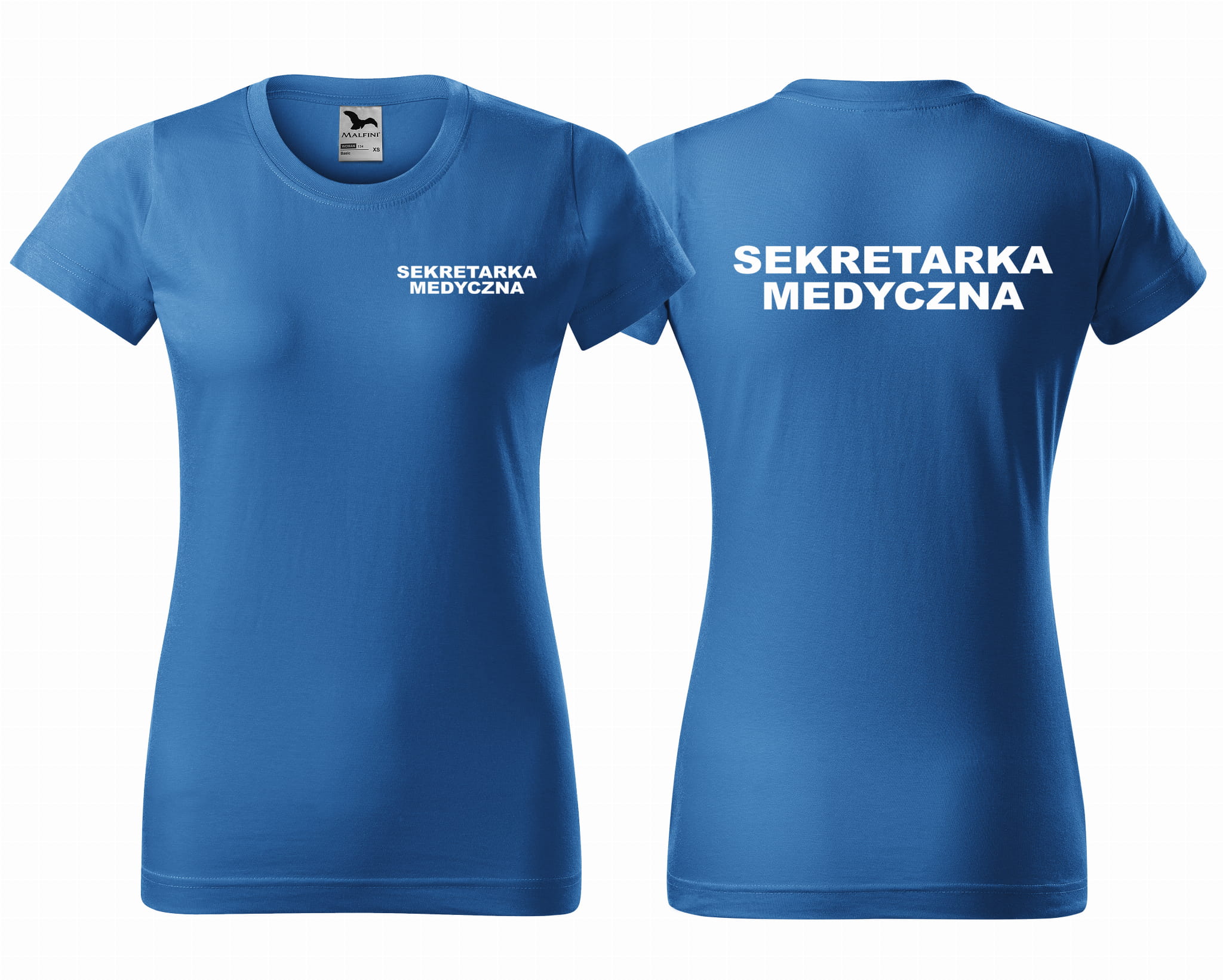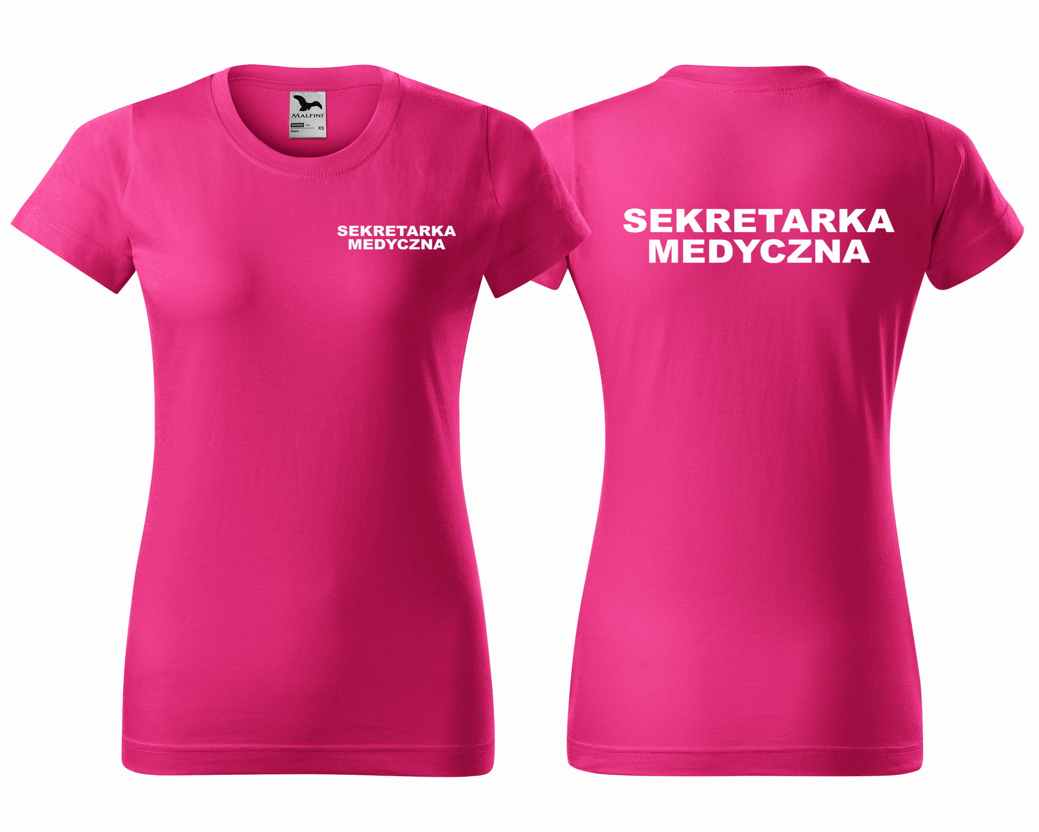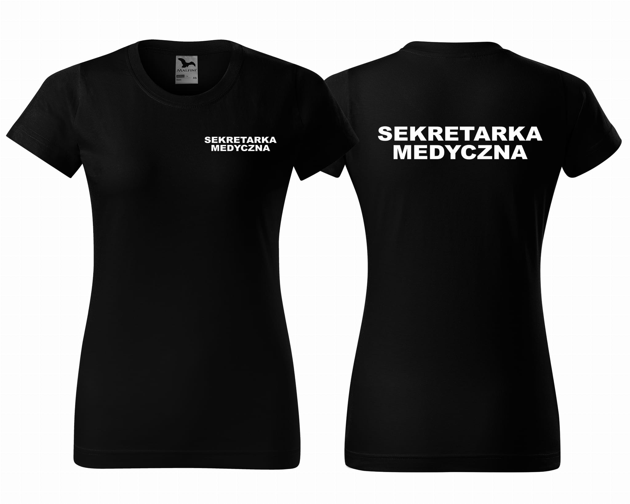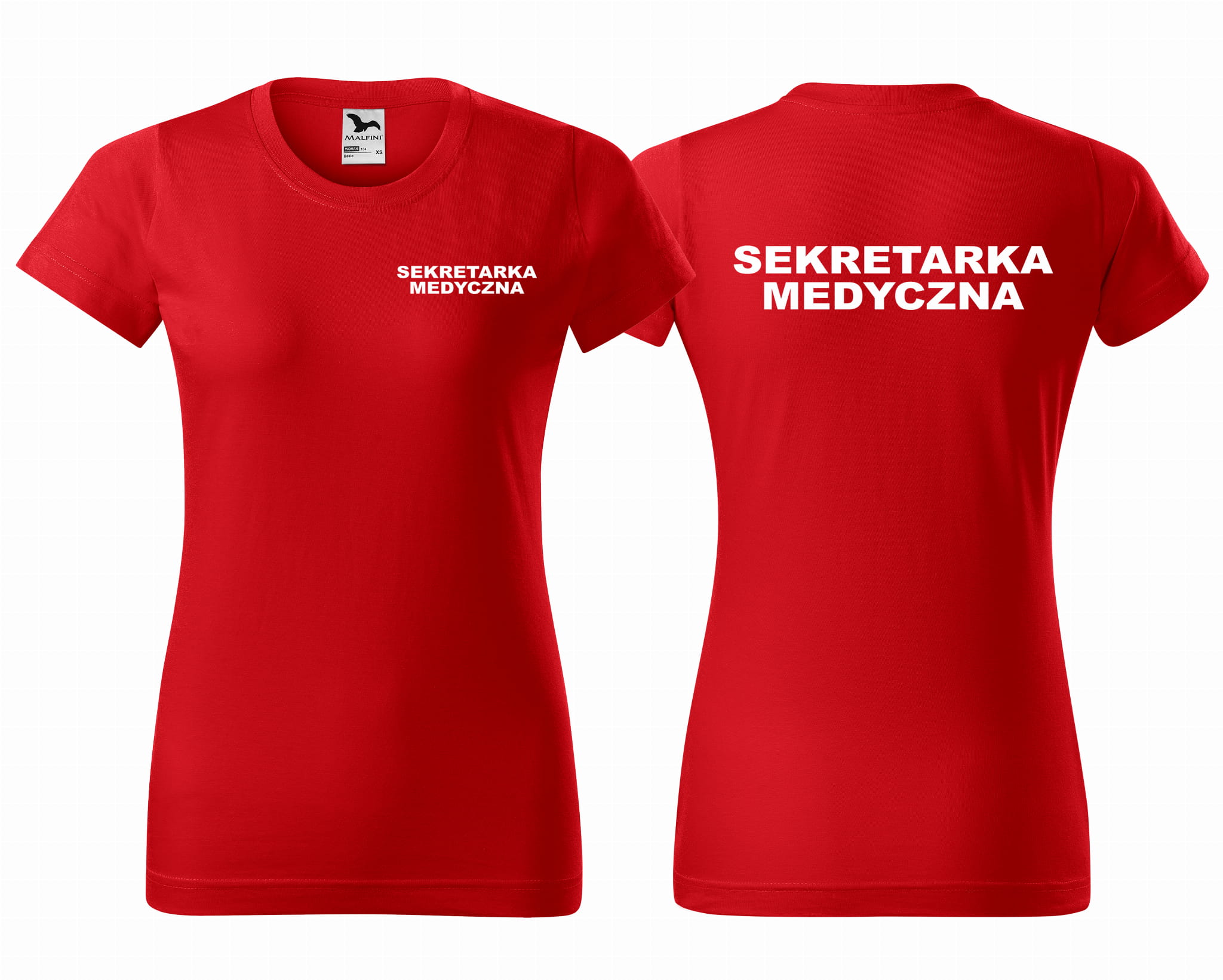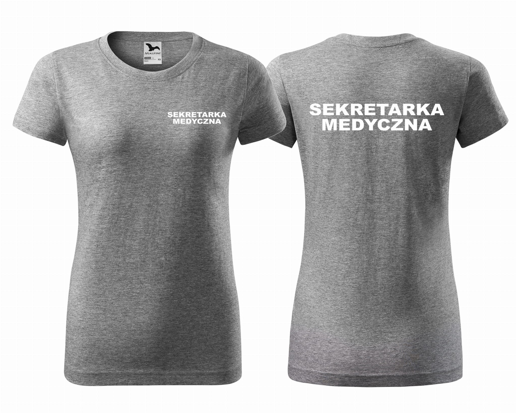 Koszulka damska BASIC SEKRETARKA MEDYCZNA NAPISY nadruk PRZÓD I TYŁ