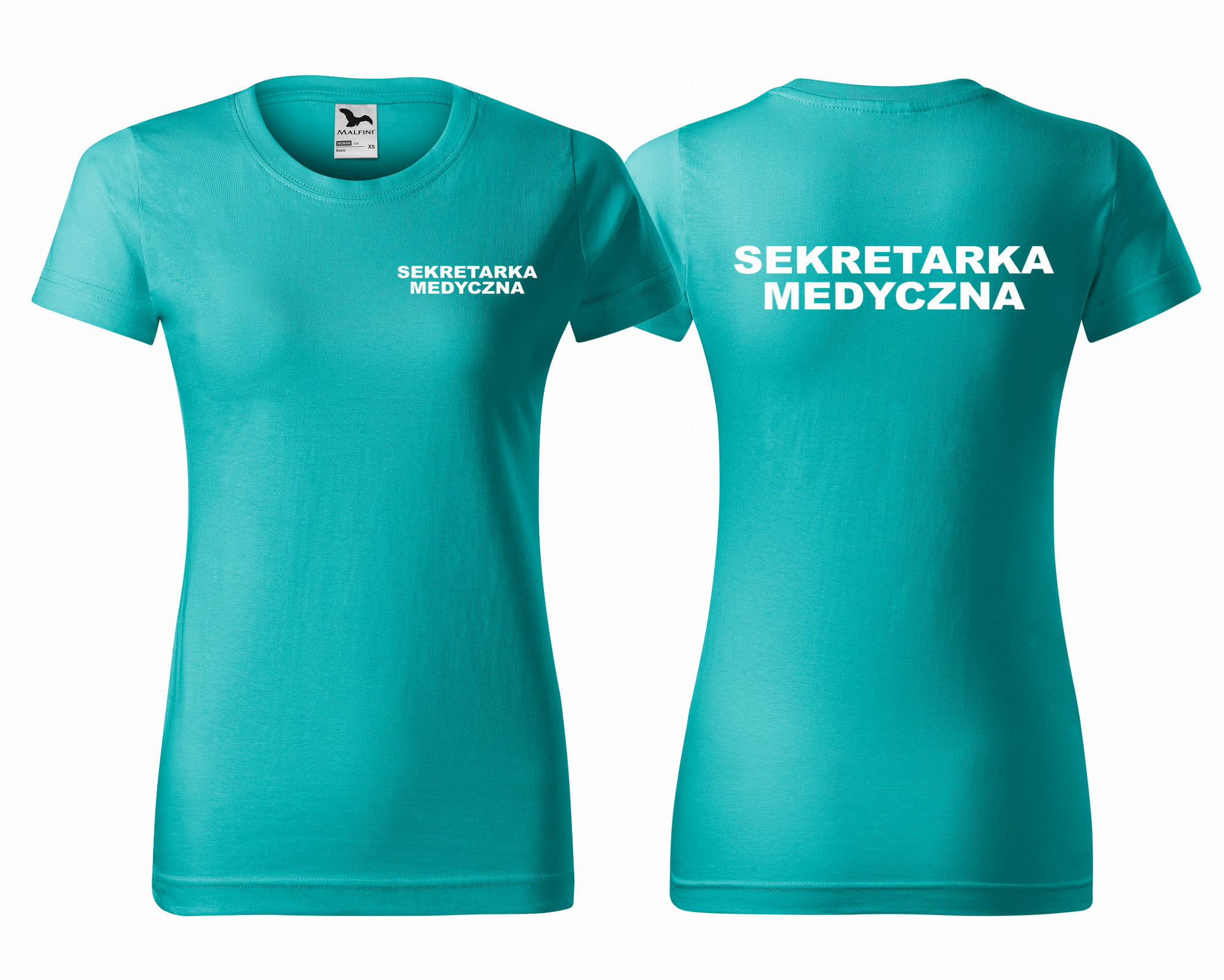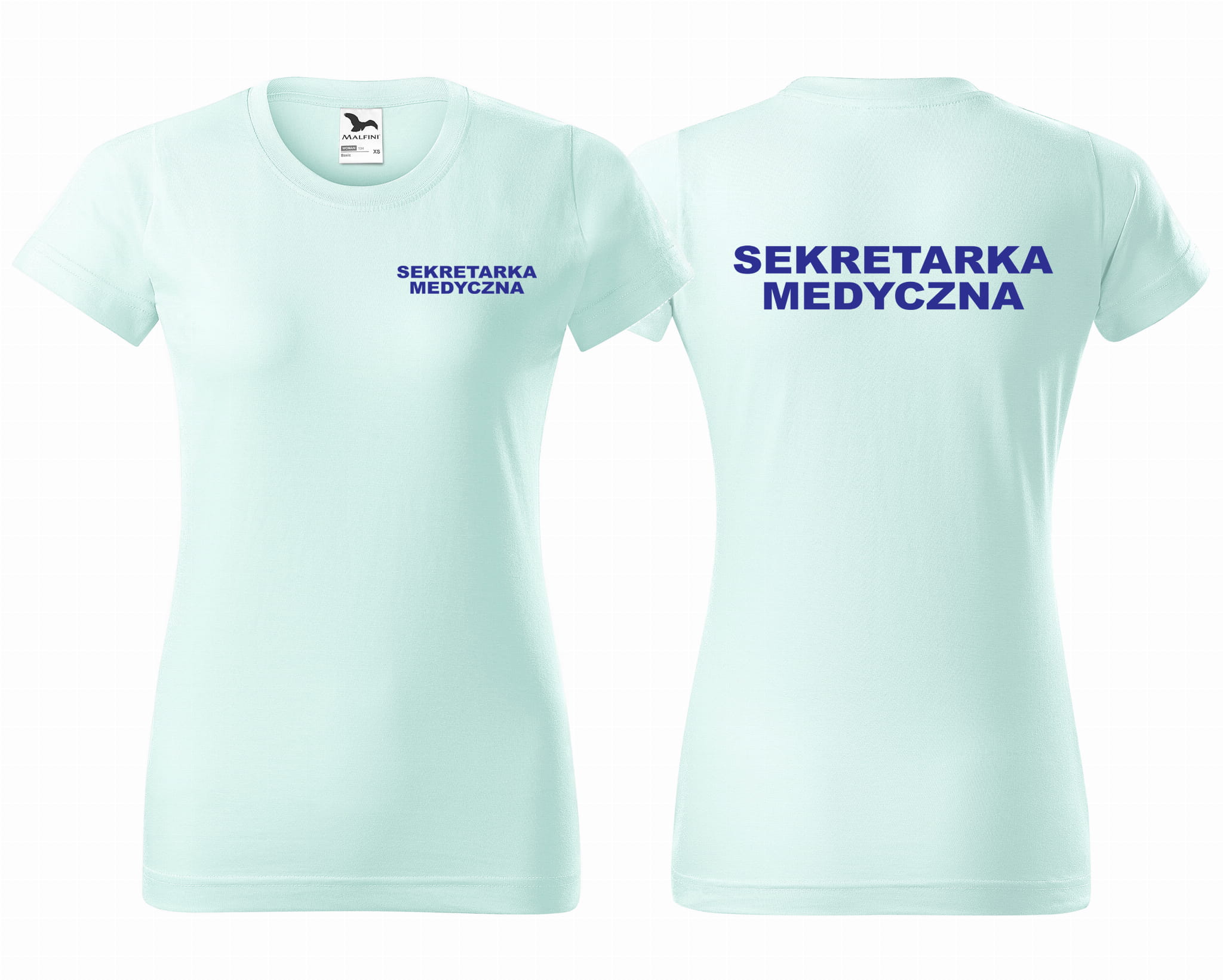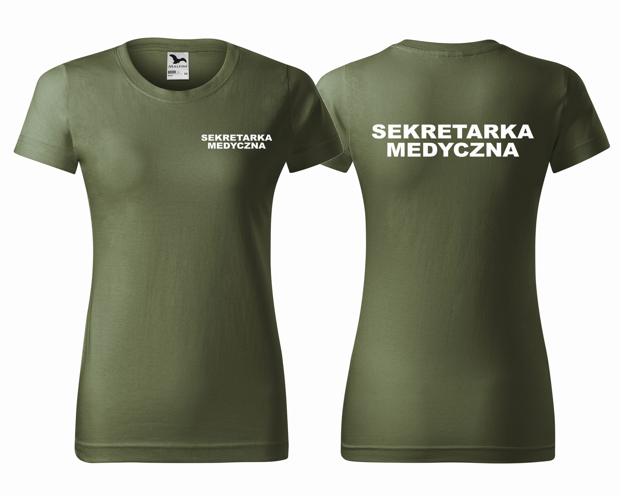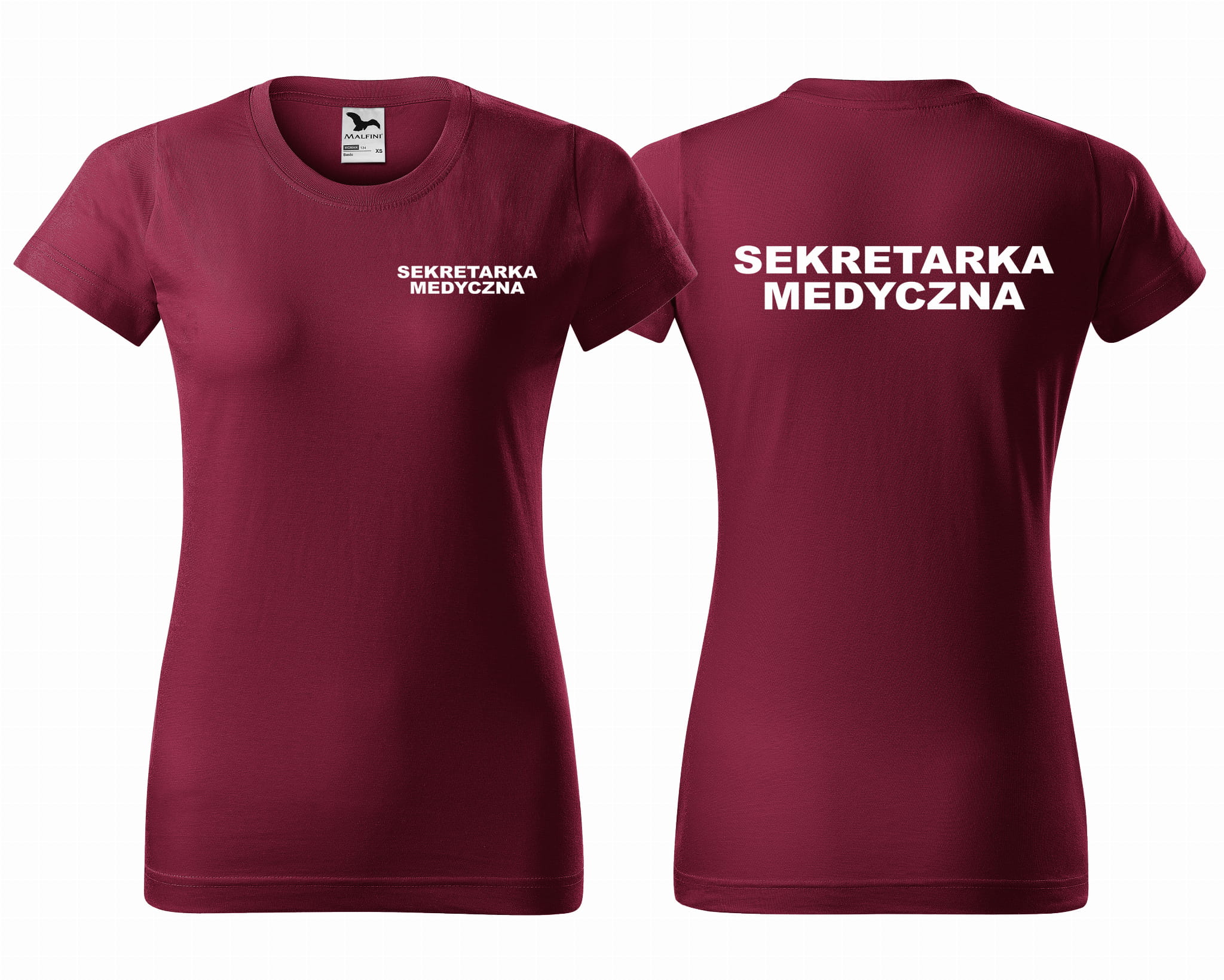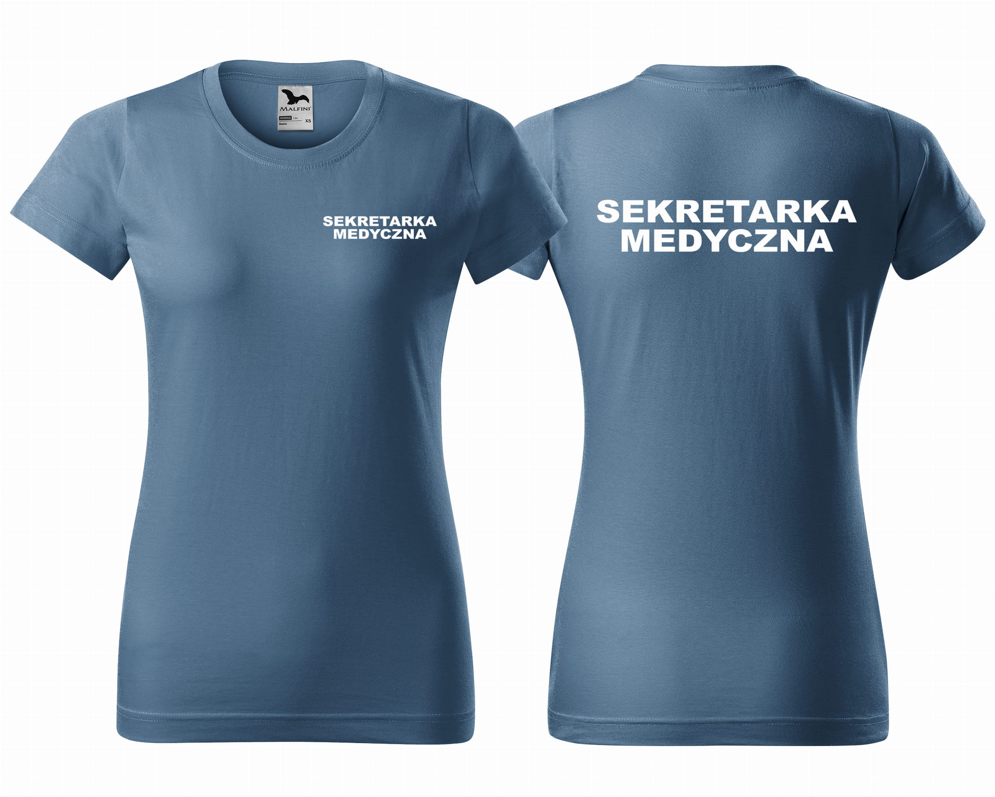 Koszulka damska BASIC SEKRETARKA MEDYCZNA NAPISY nadruk PRZÓD I TYŁ