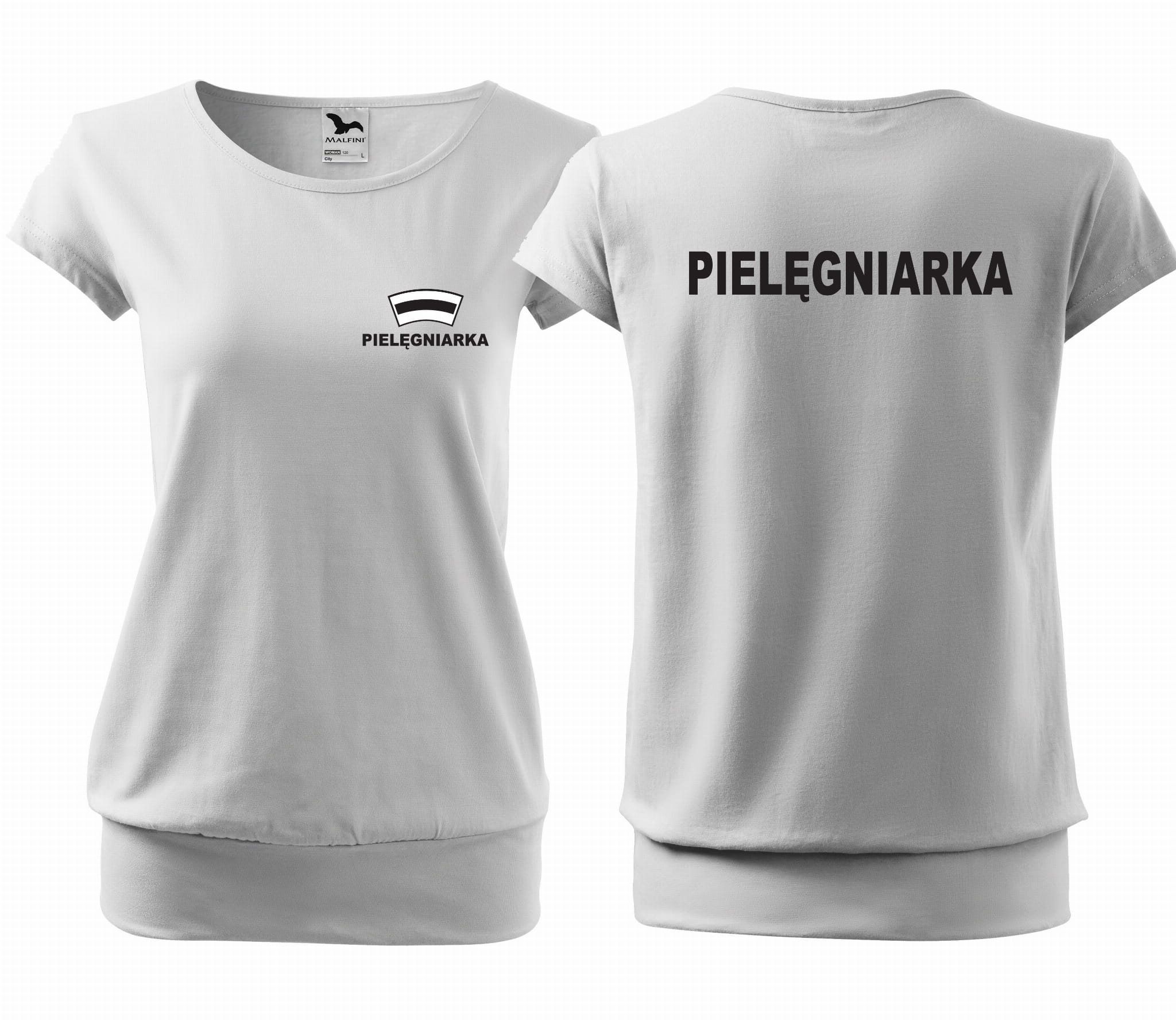 Koszulka damska CITY PIELĘGNIARKA CZEPEK nadruk PRZÓD I TYŁ