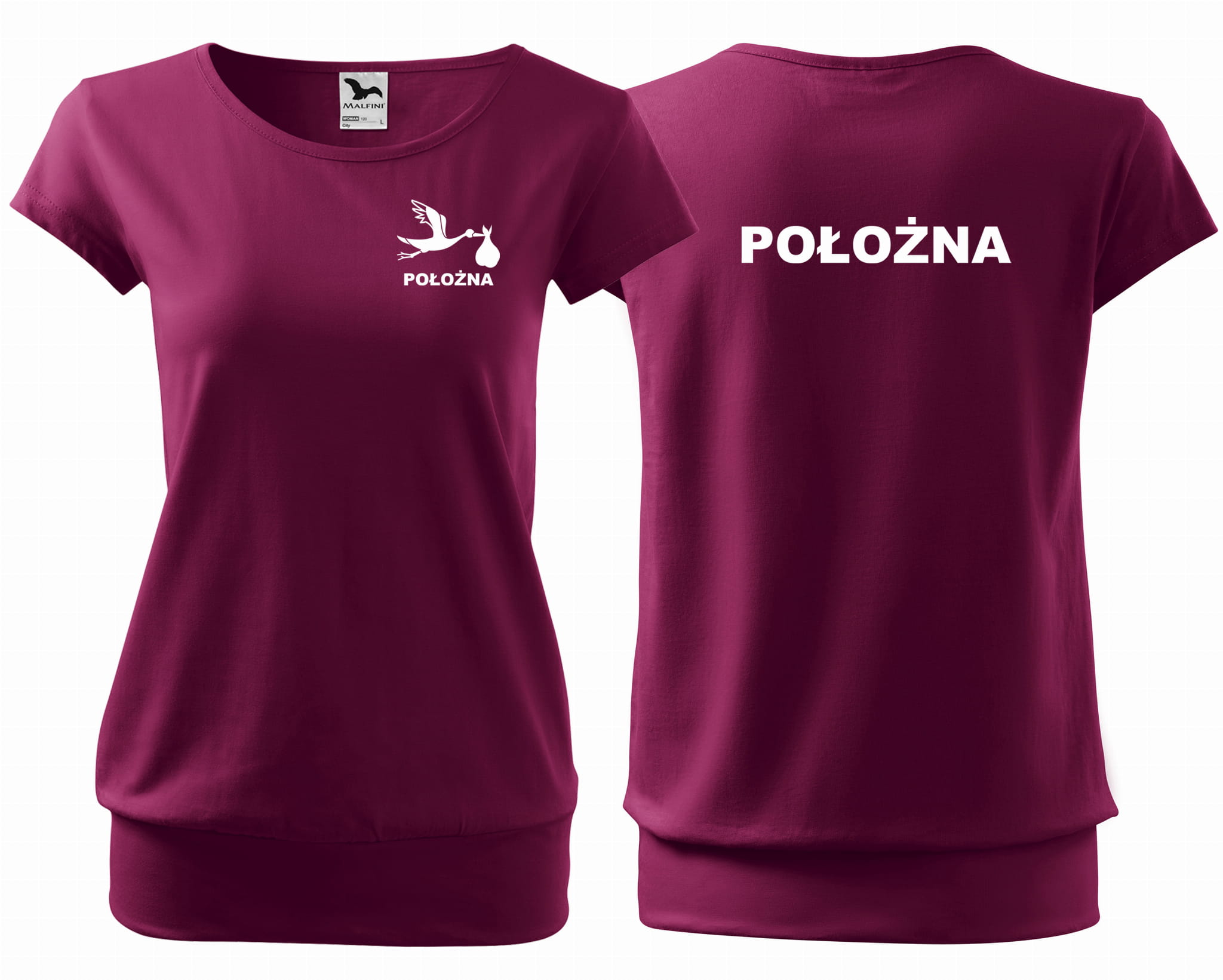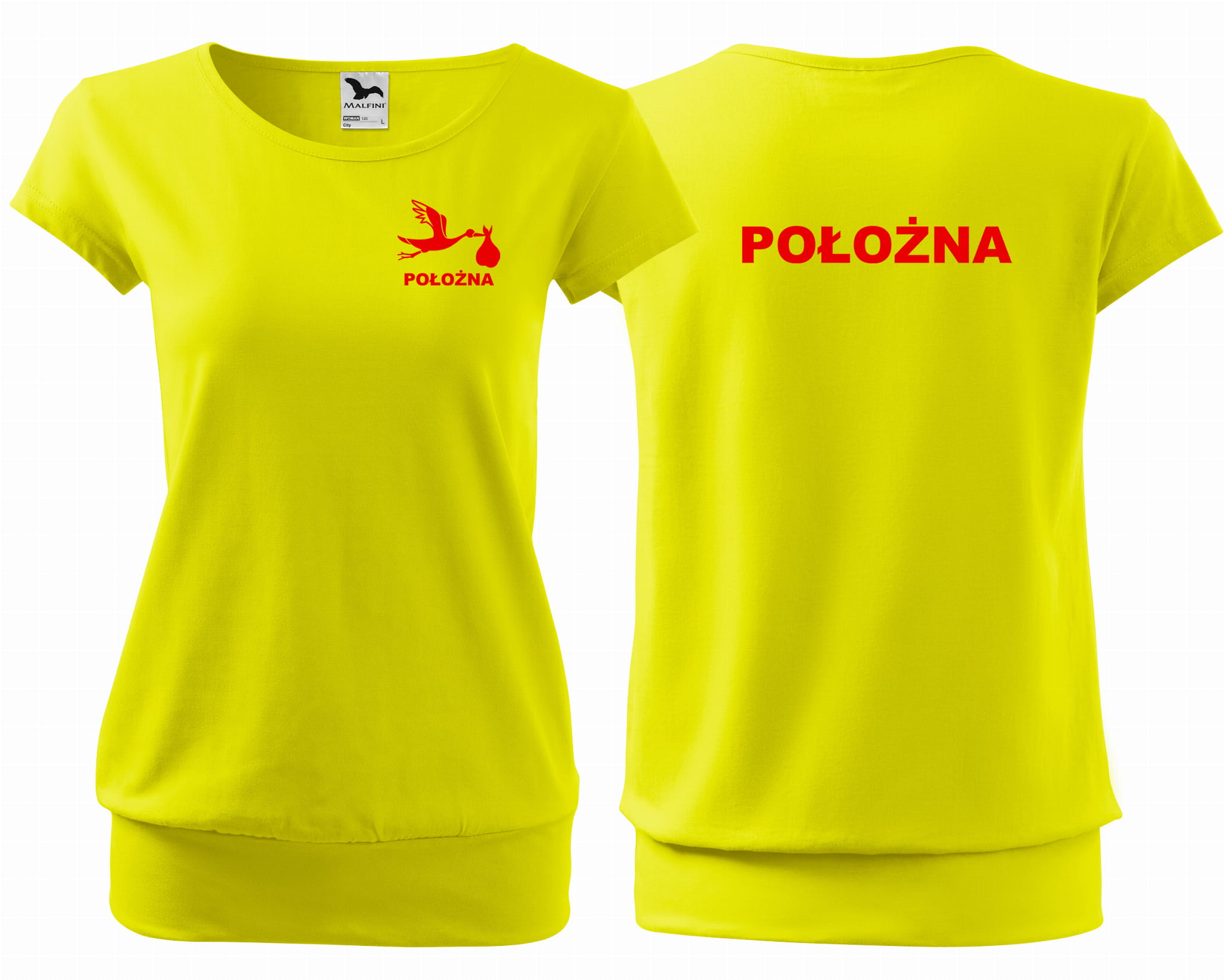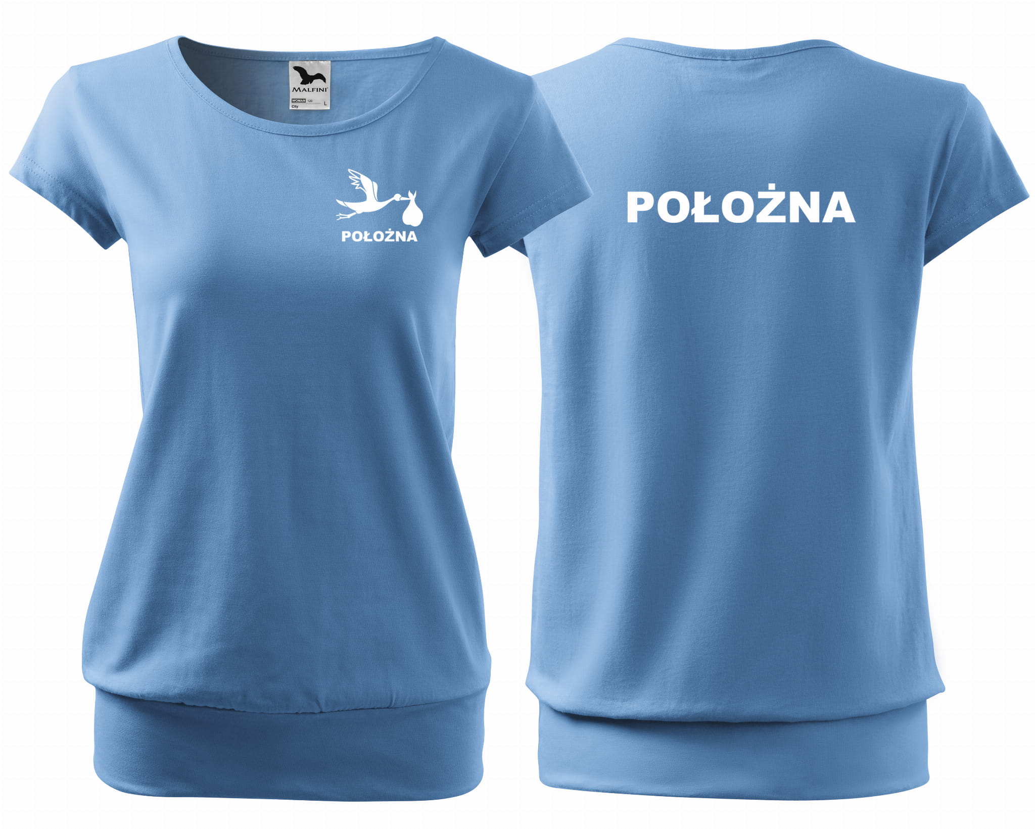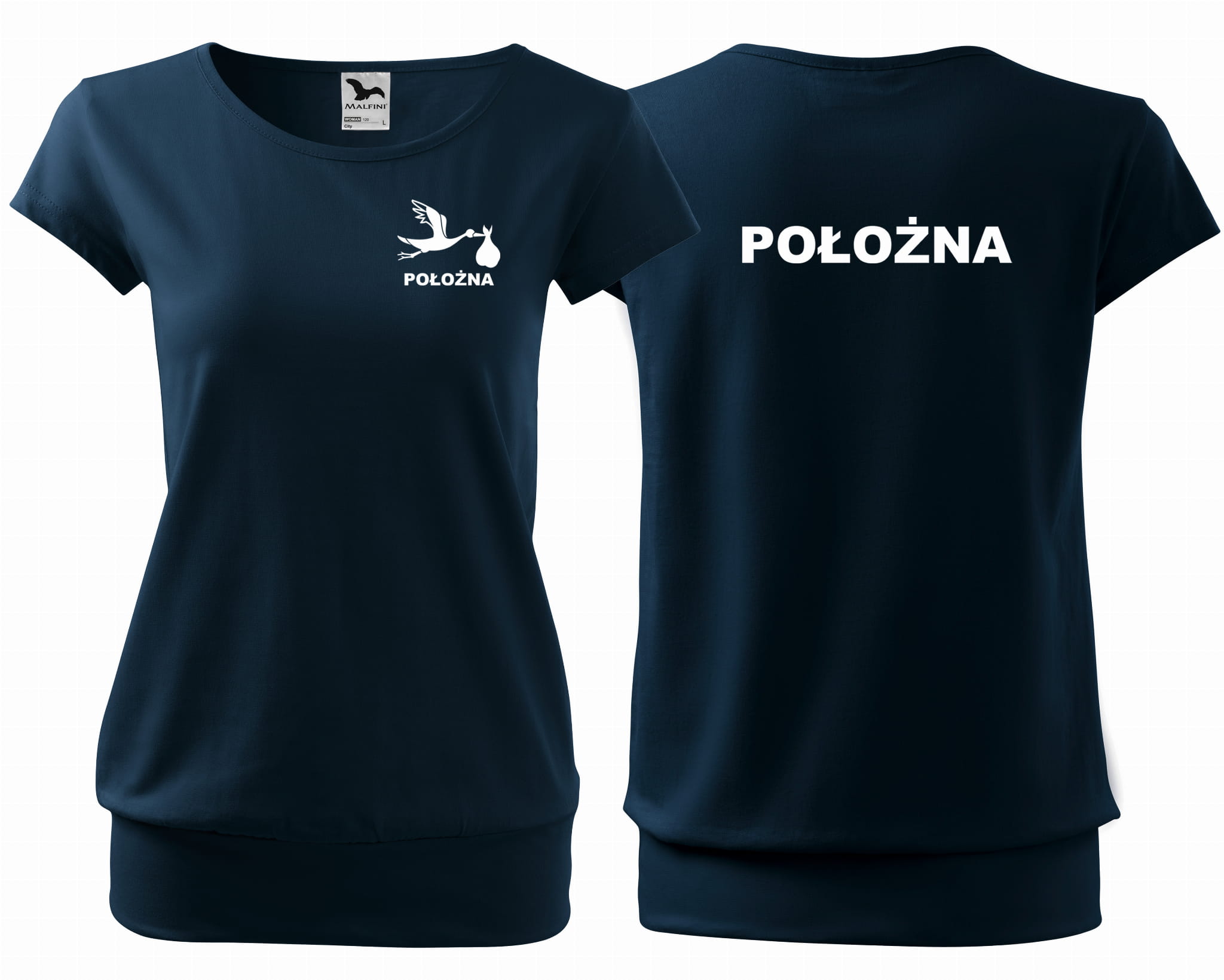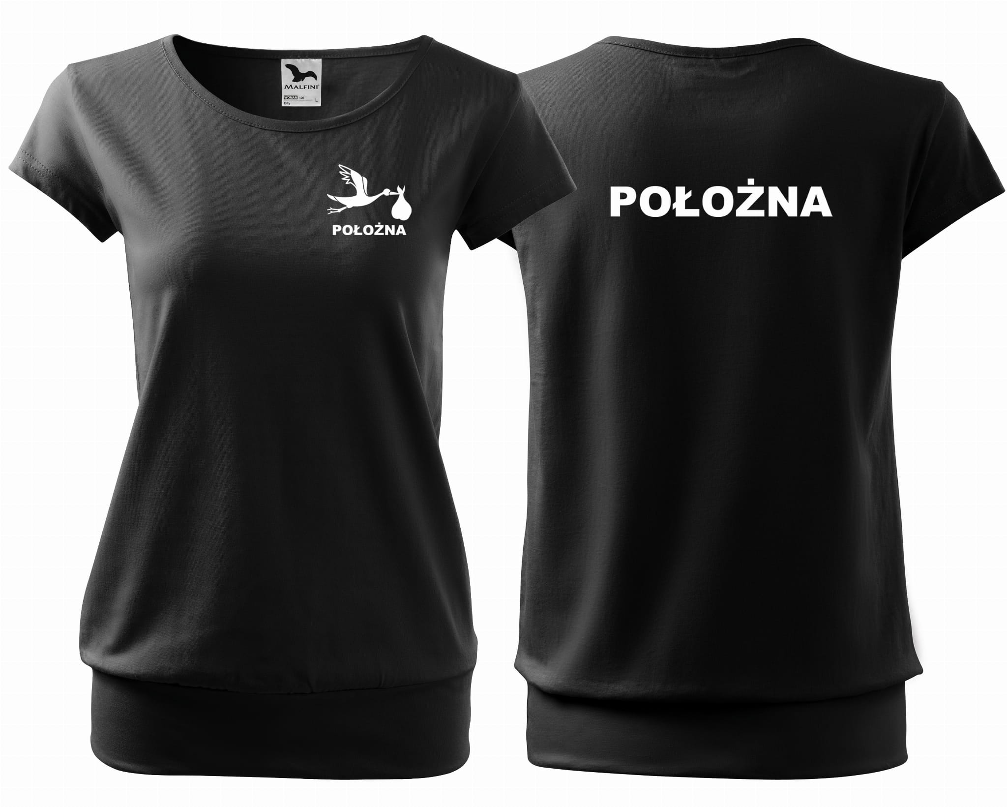 Koszulka damska CITY POŁOŻNA BOCIAN nadruk PRZÓD I TYŁ