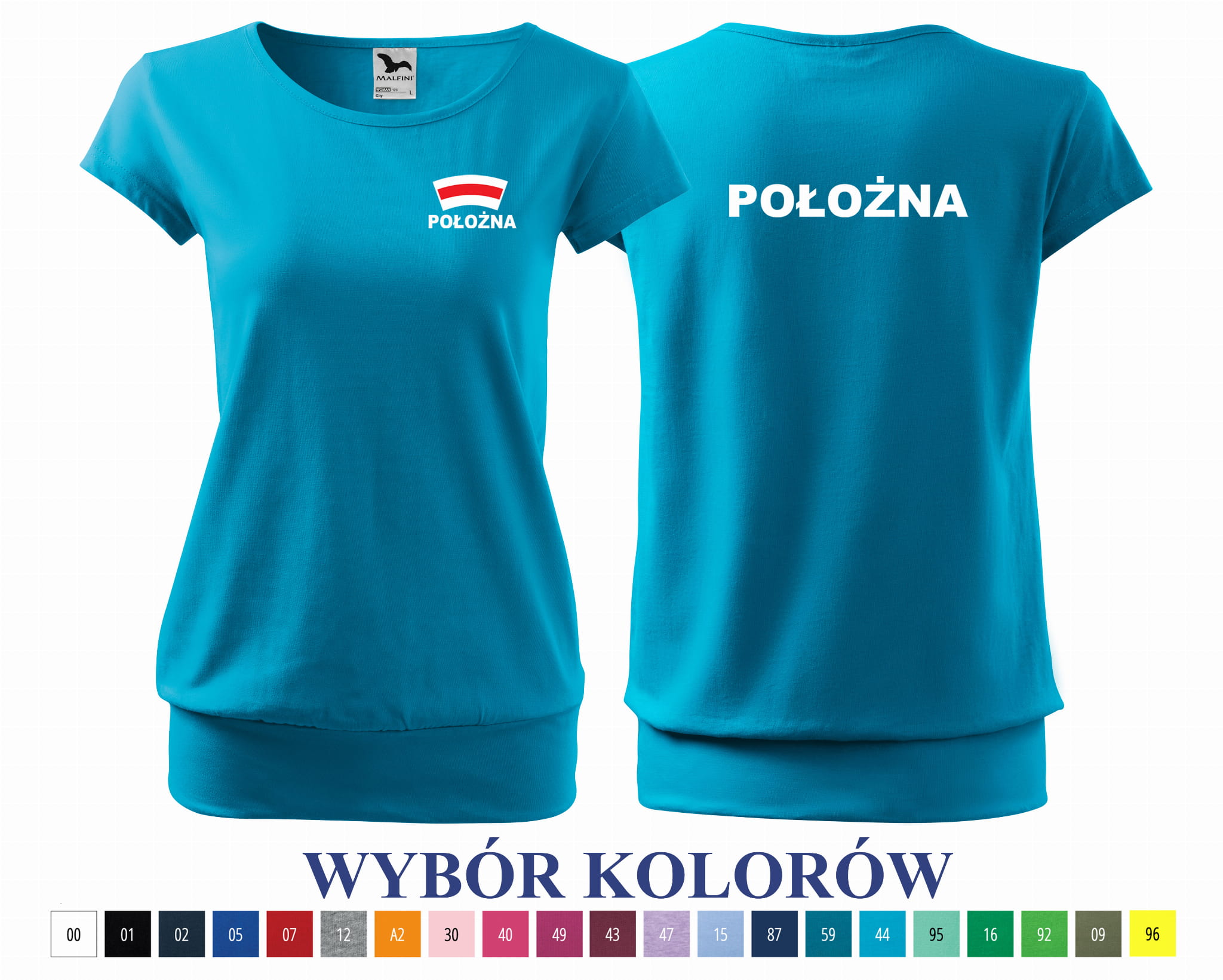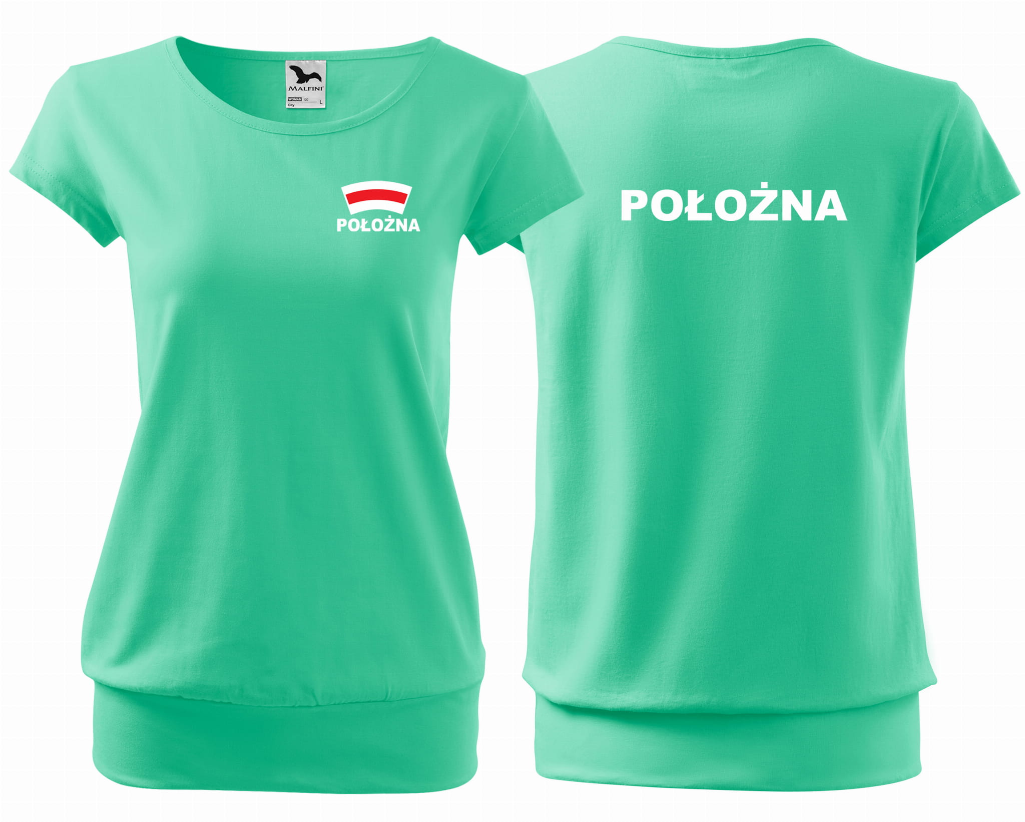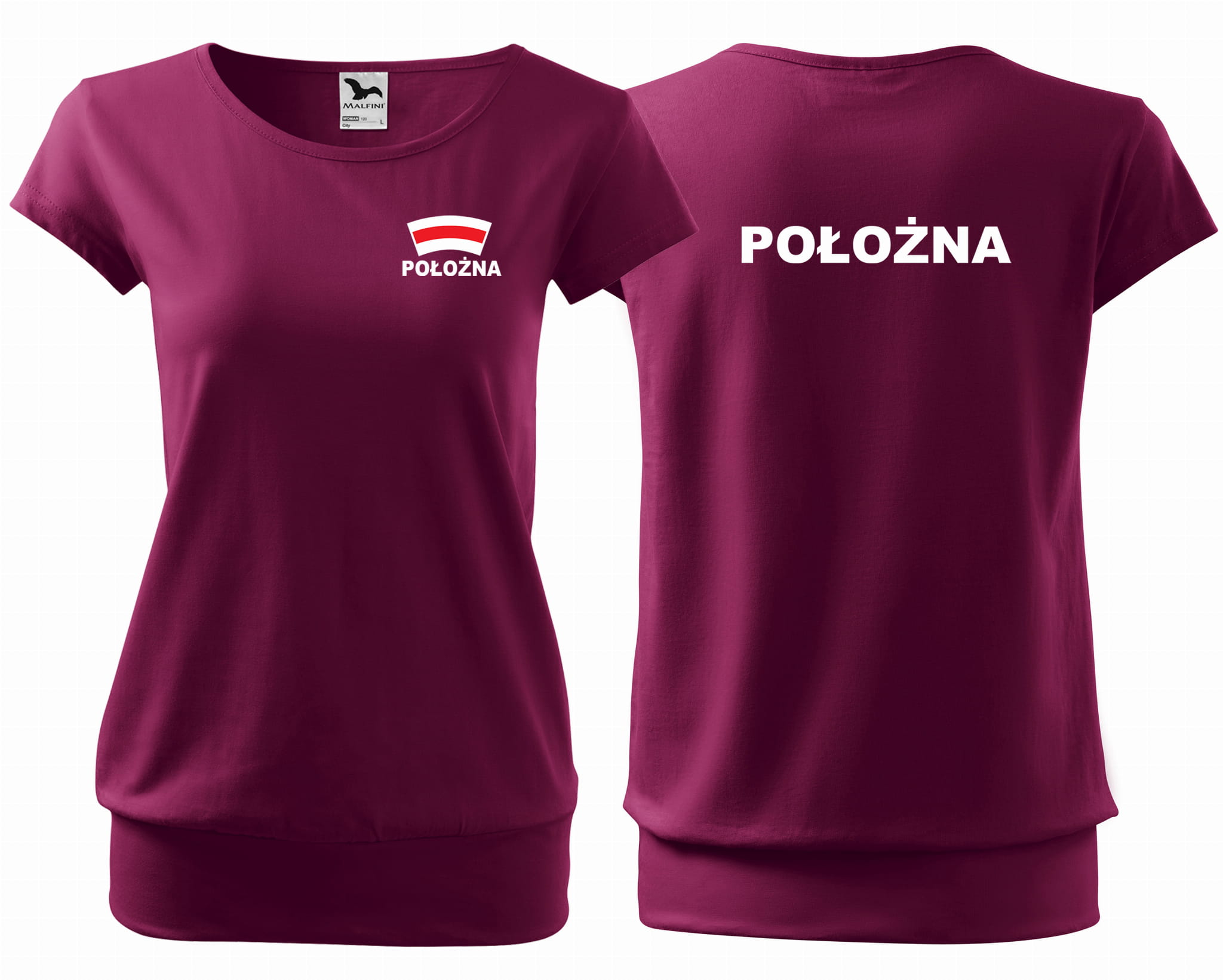 Koszulka damska CITY POŁOŻNA CZEPEK nadruk PRZÓD I TYŁ