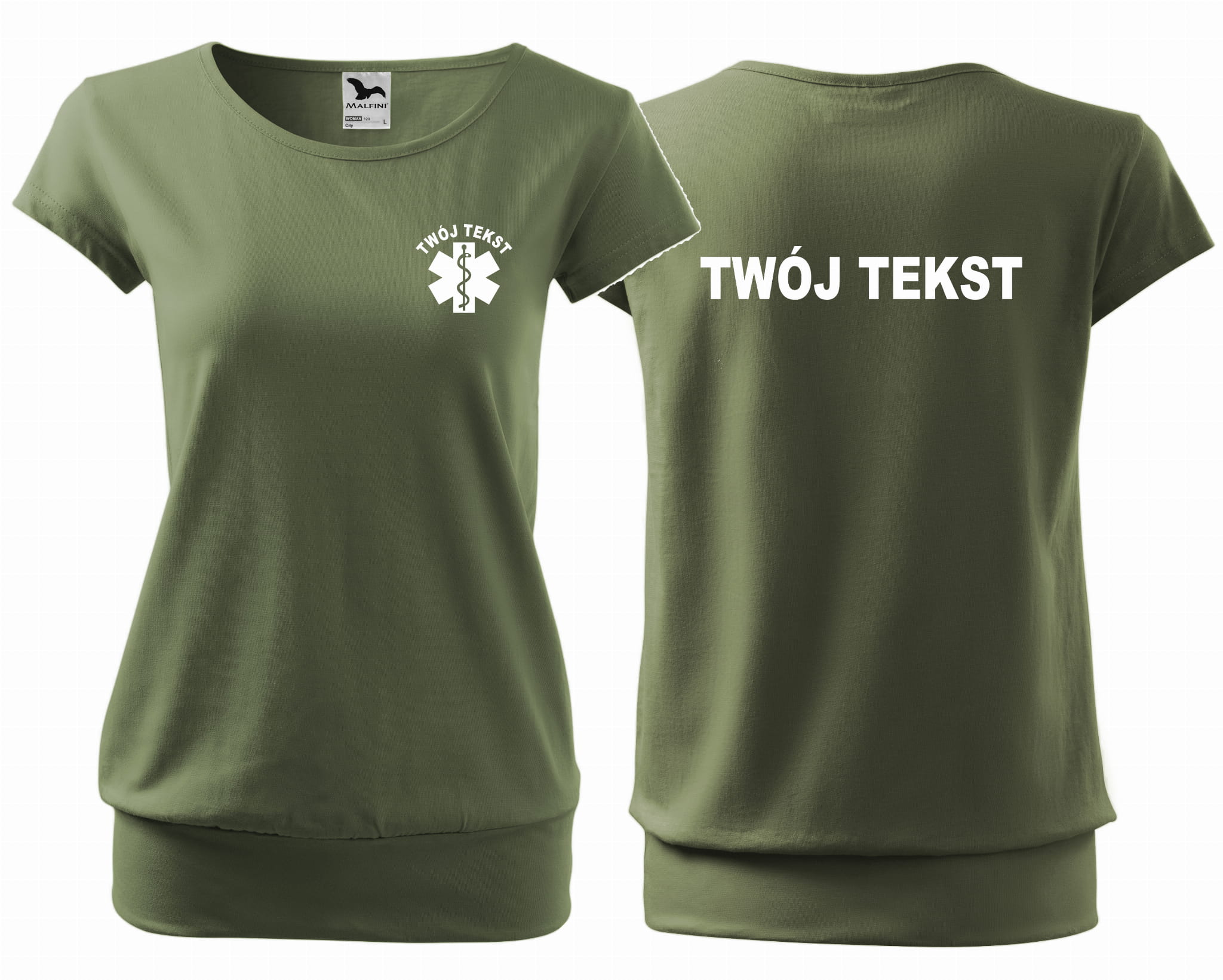 Koszulka damska CITY TWÓJ TEKST + ESKULAP