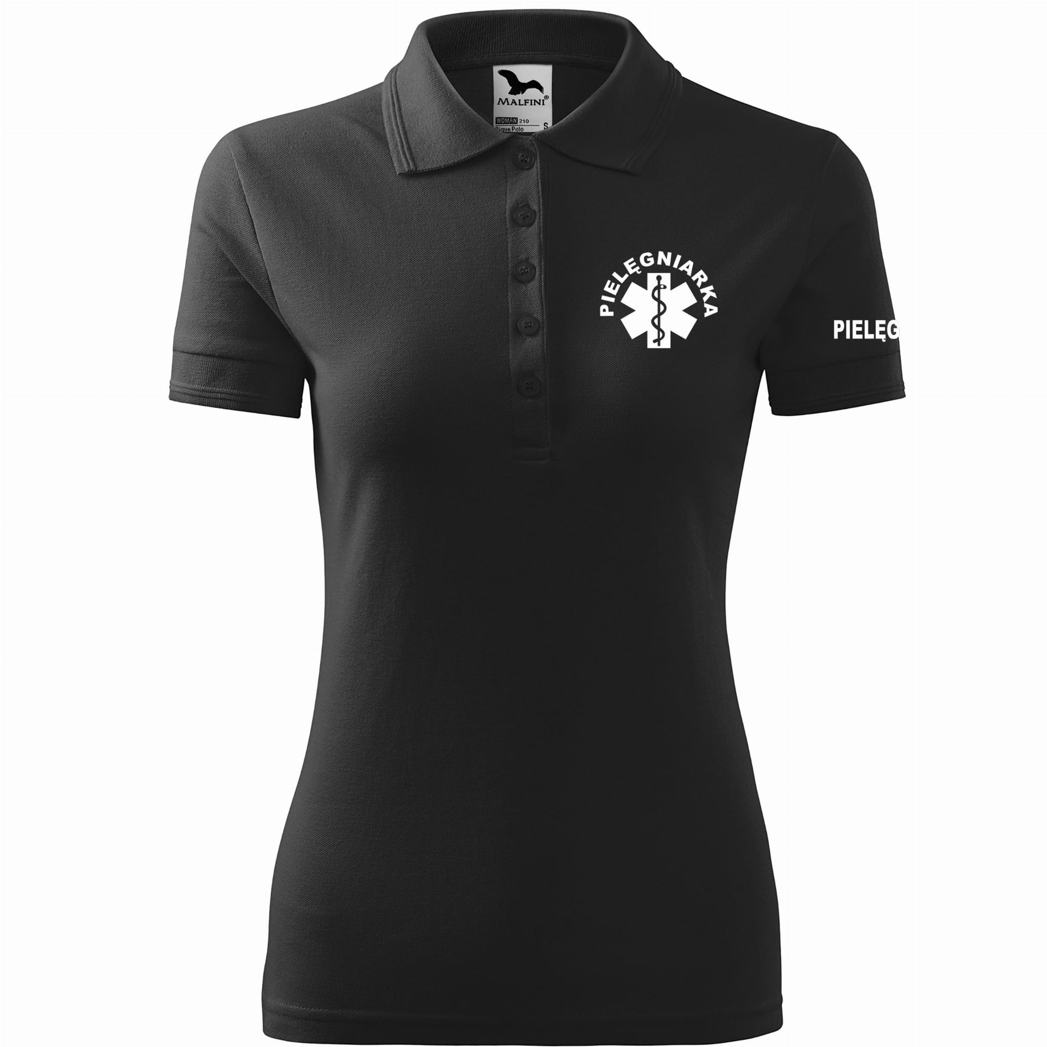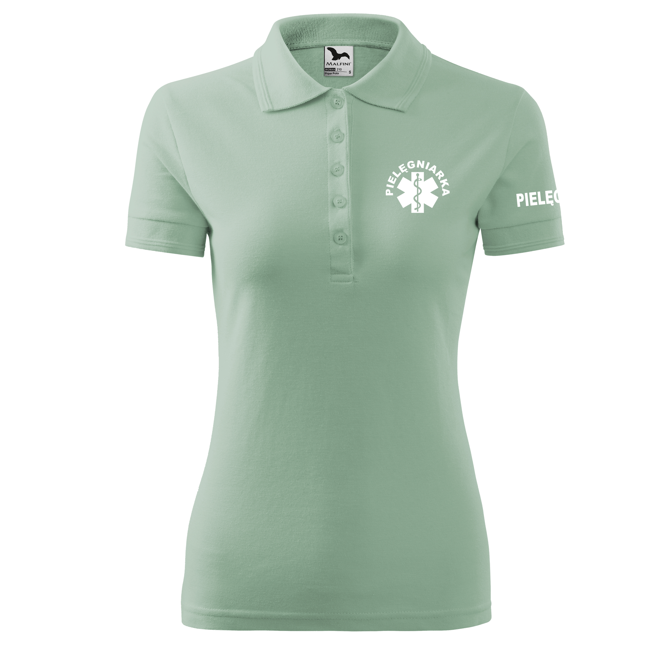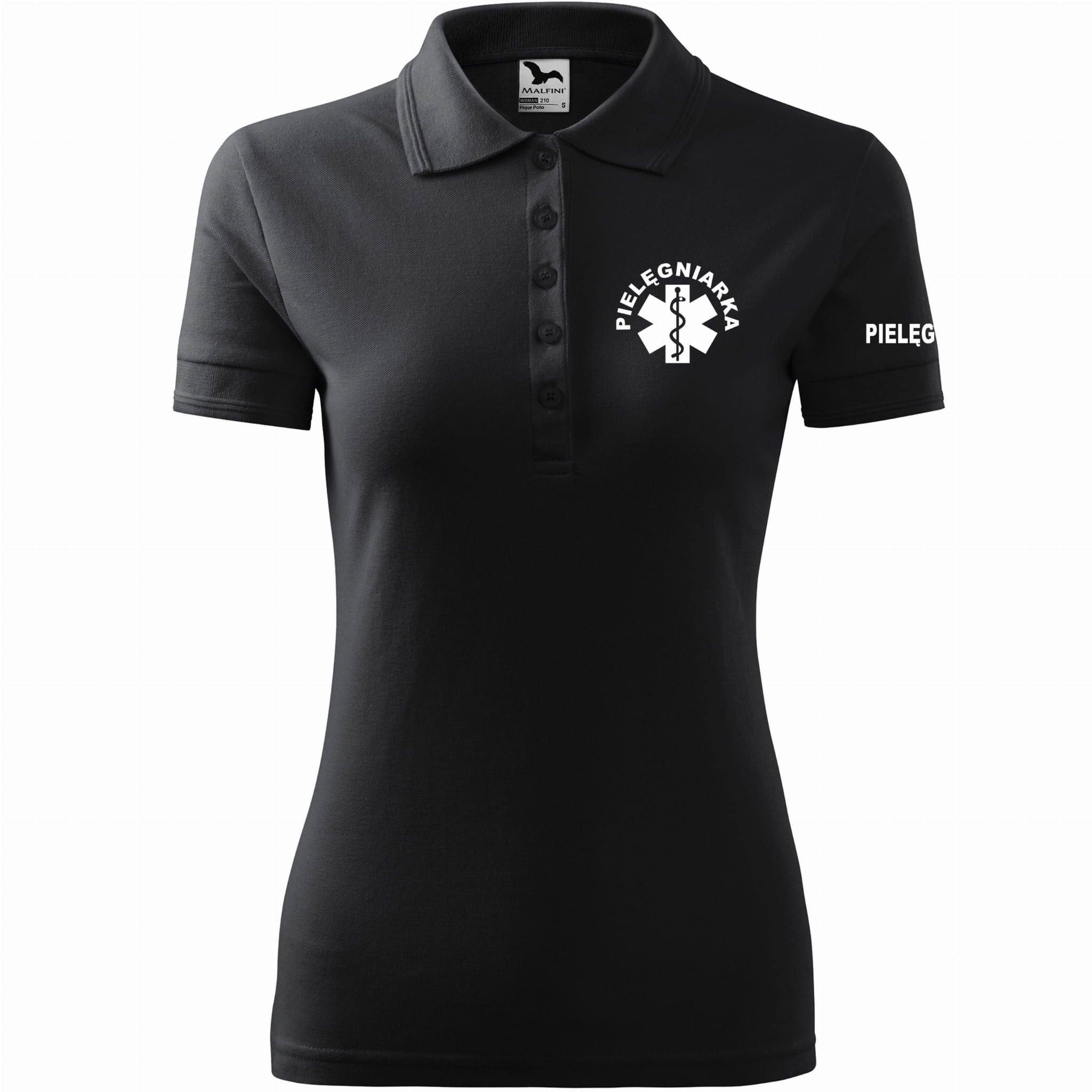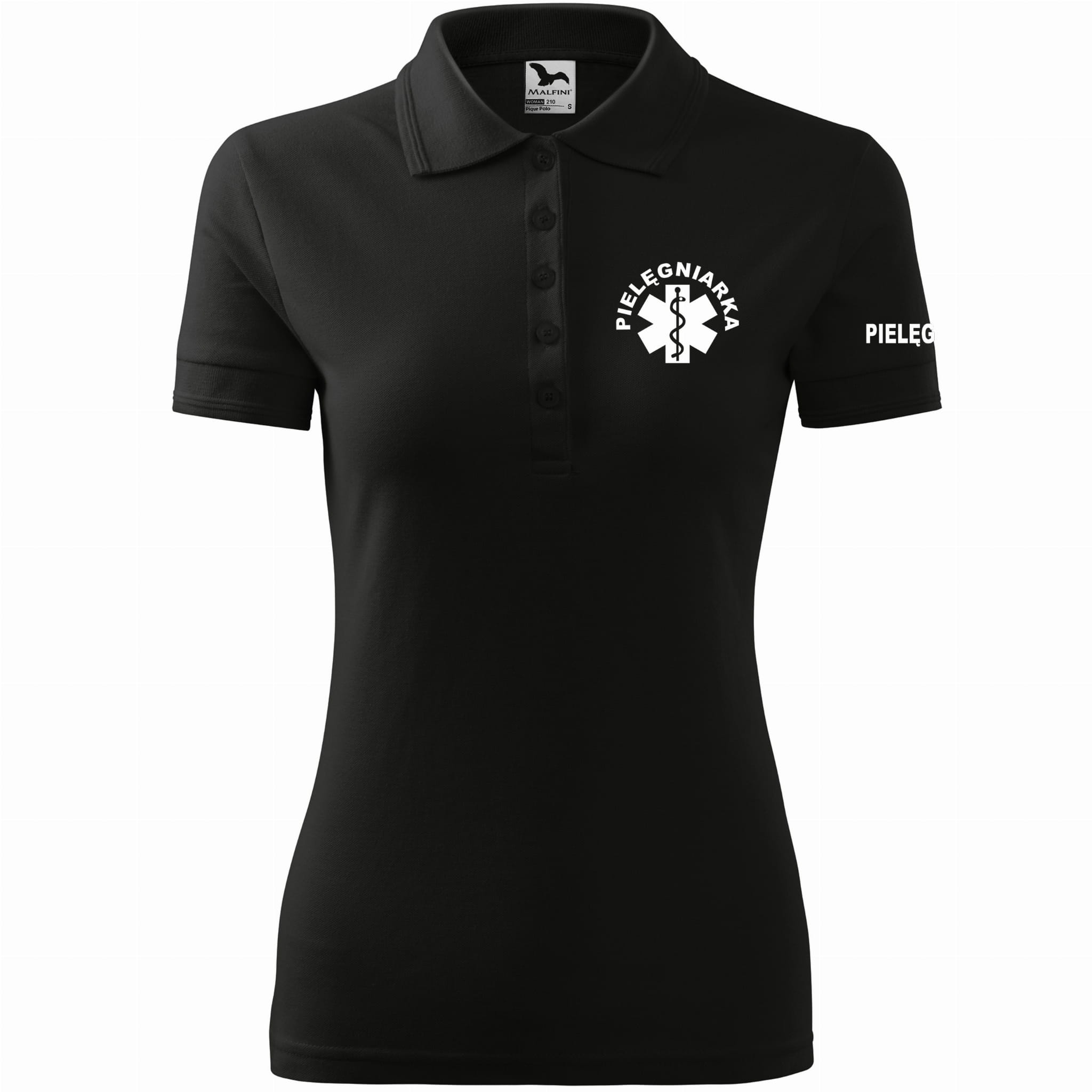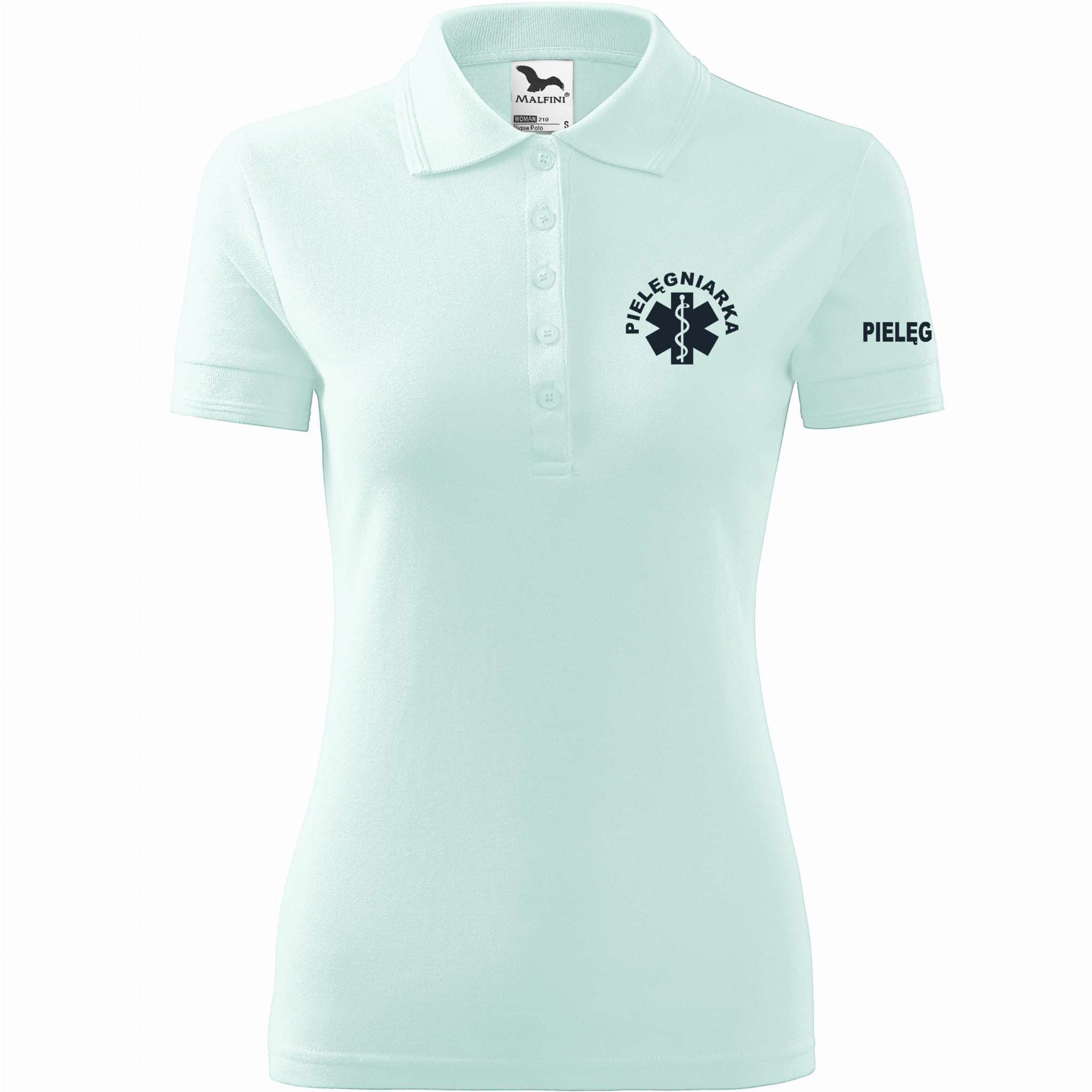 Koszulka damska POLO (210) PIELĘGNIARKA ESKULAP nadruk PRZÓD I RĘKAWEK