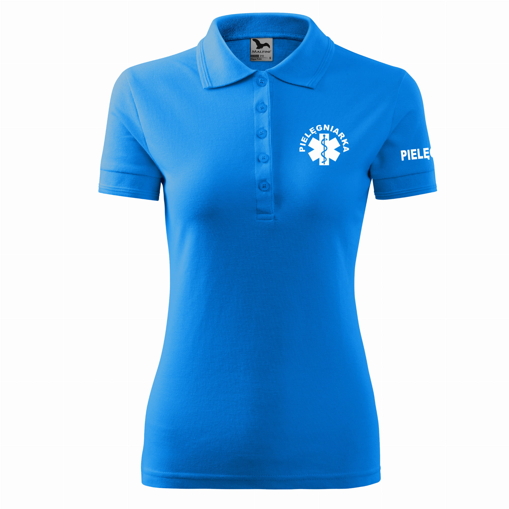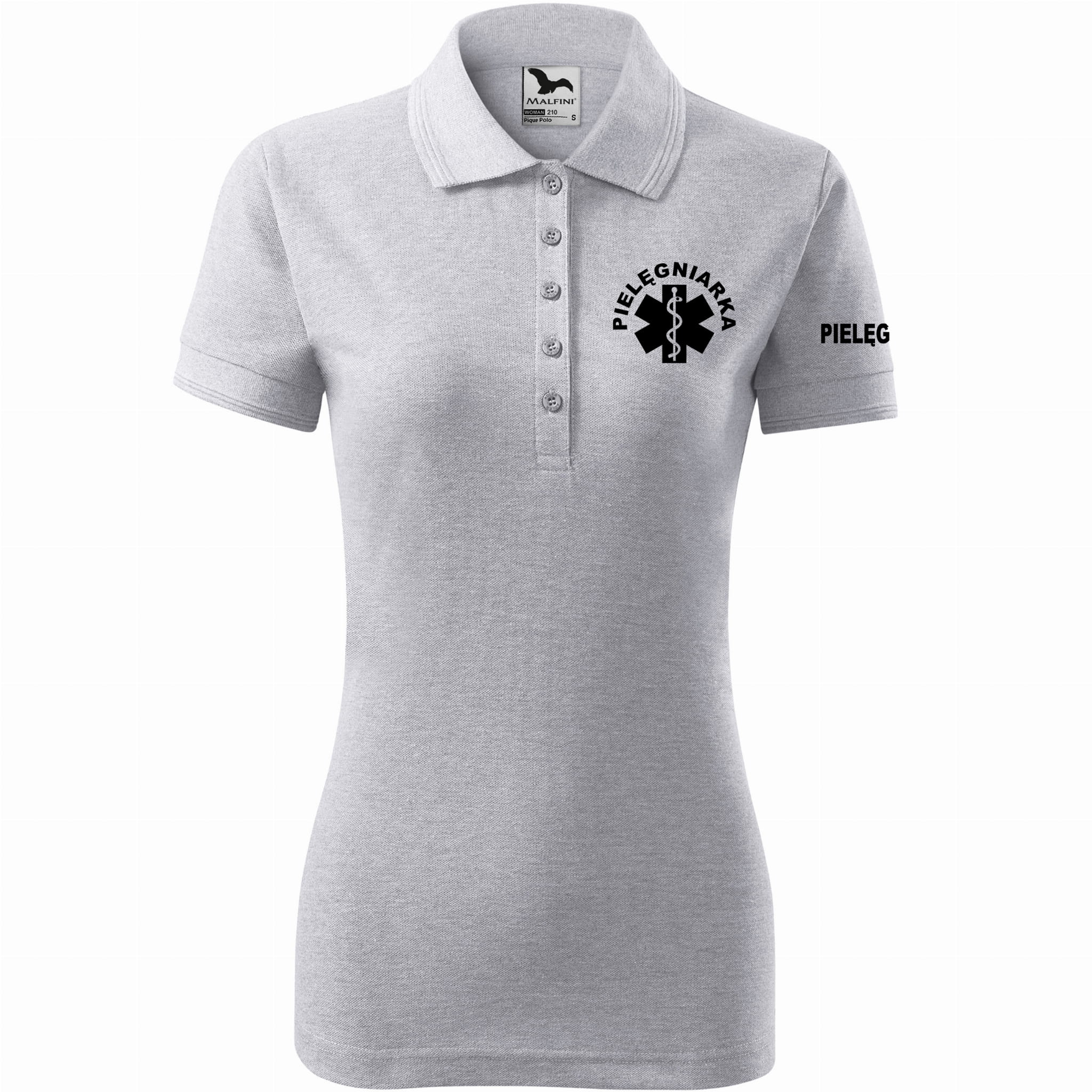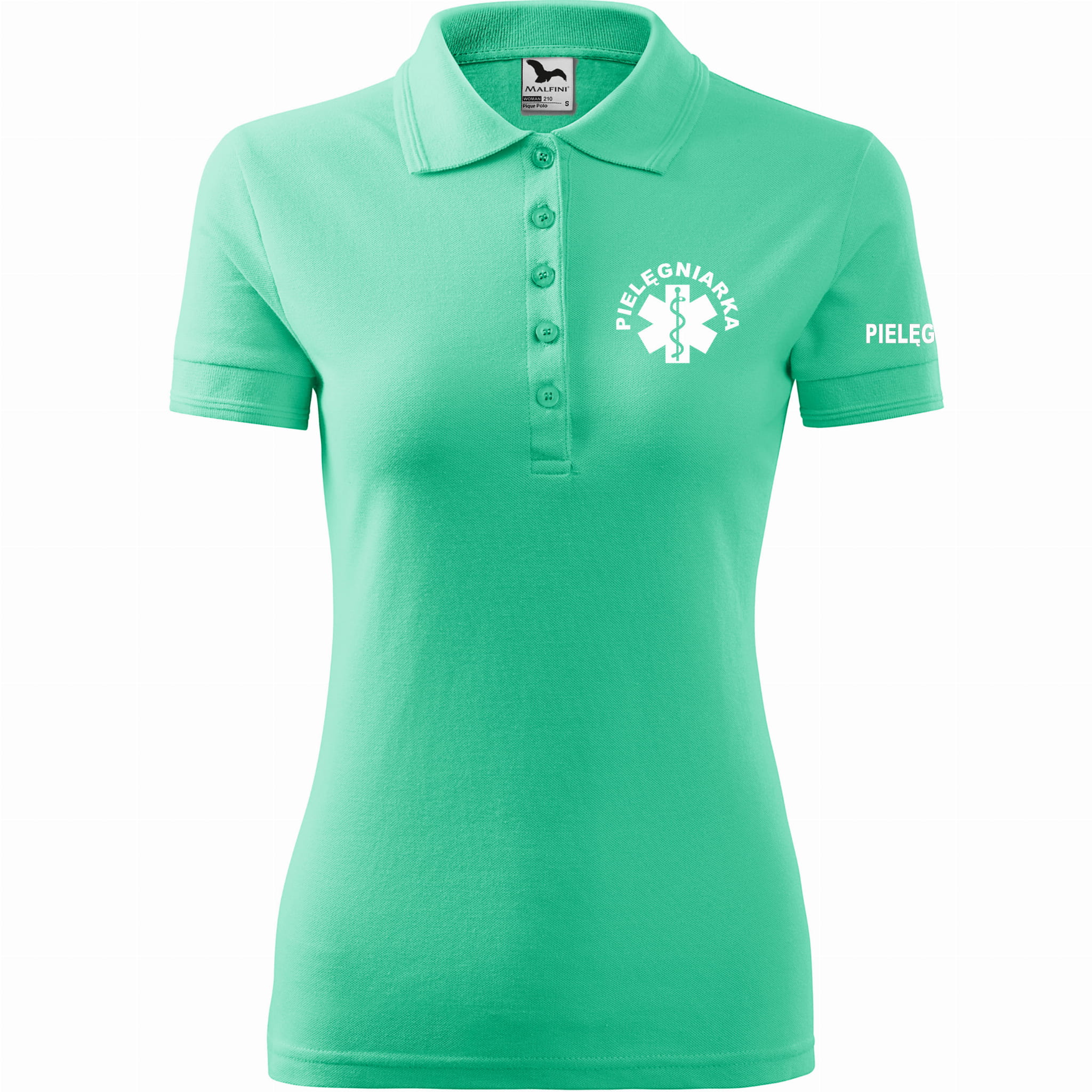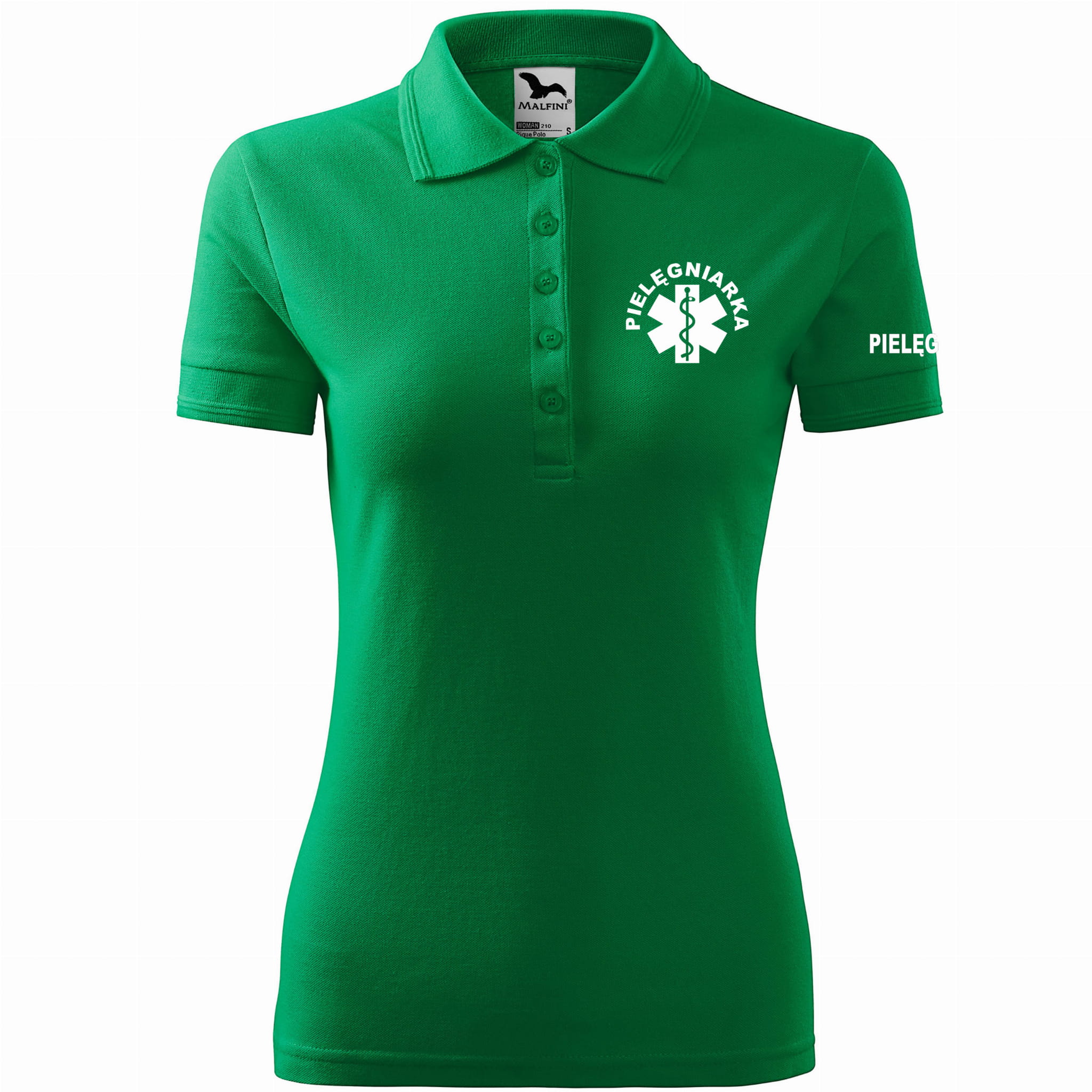 Koszulka damska POLO (210) PIELĘGNIARKA ESKULAP nadruk PRZÓD I RĘKAWEK