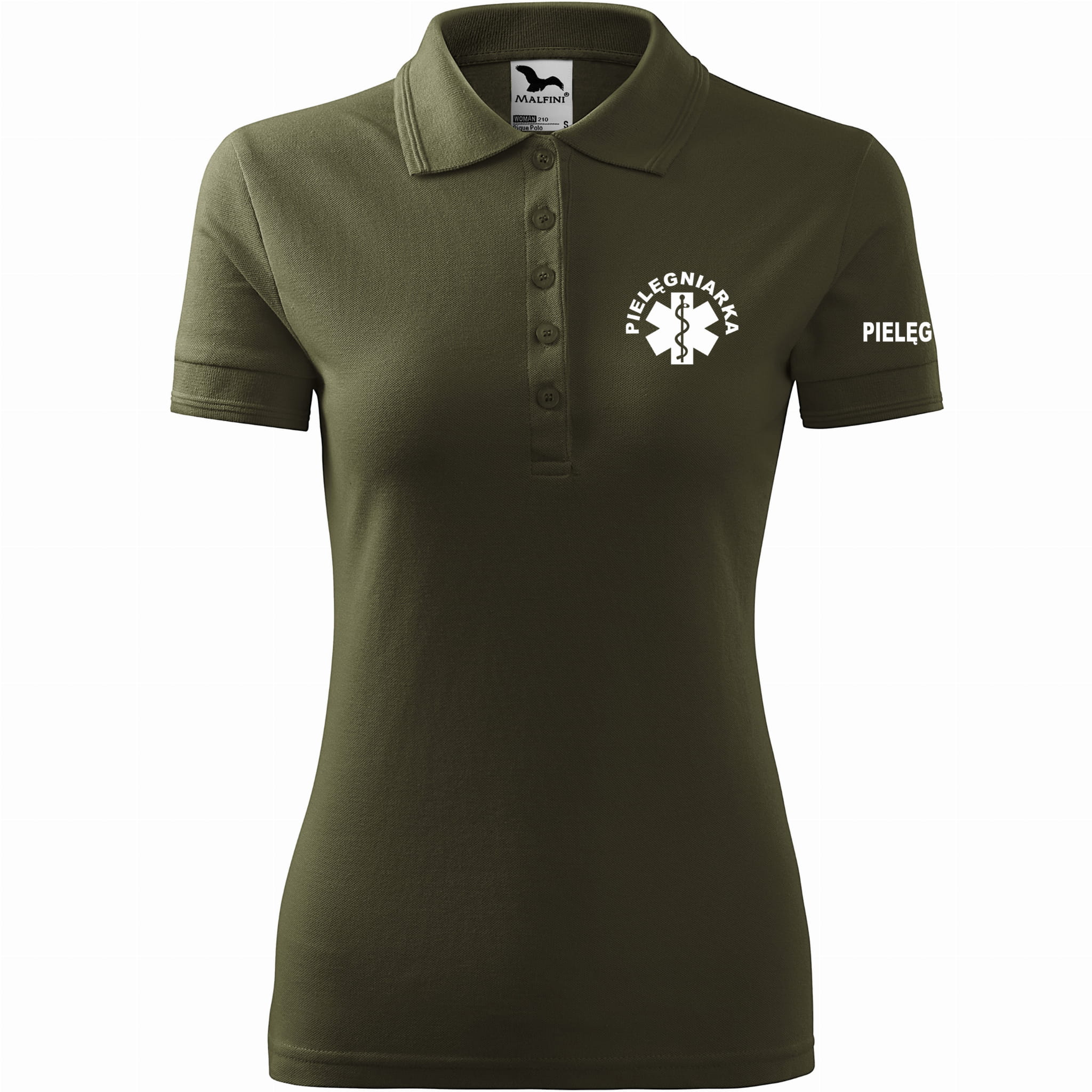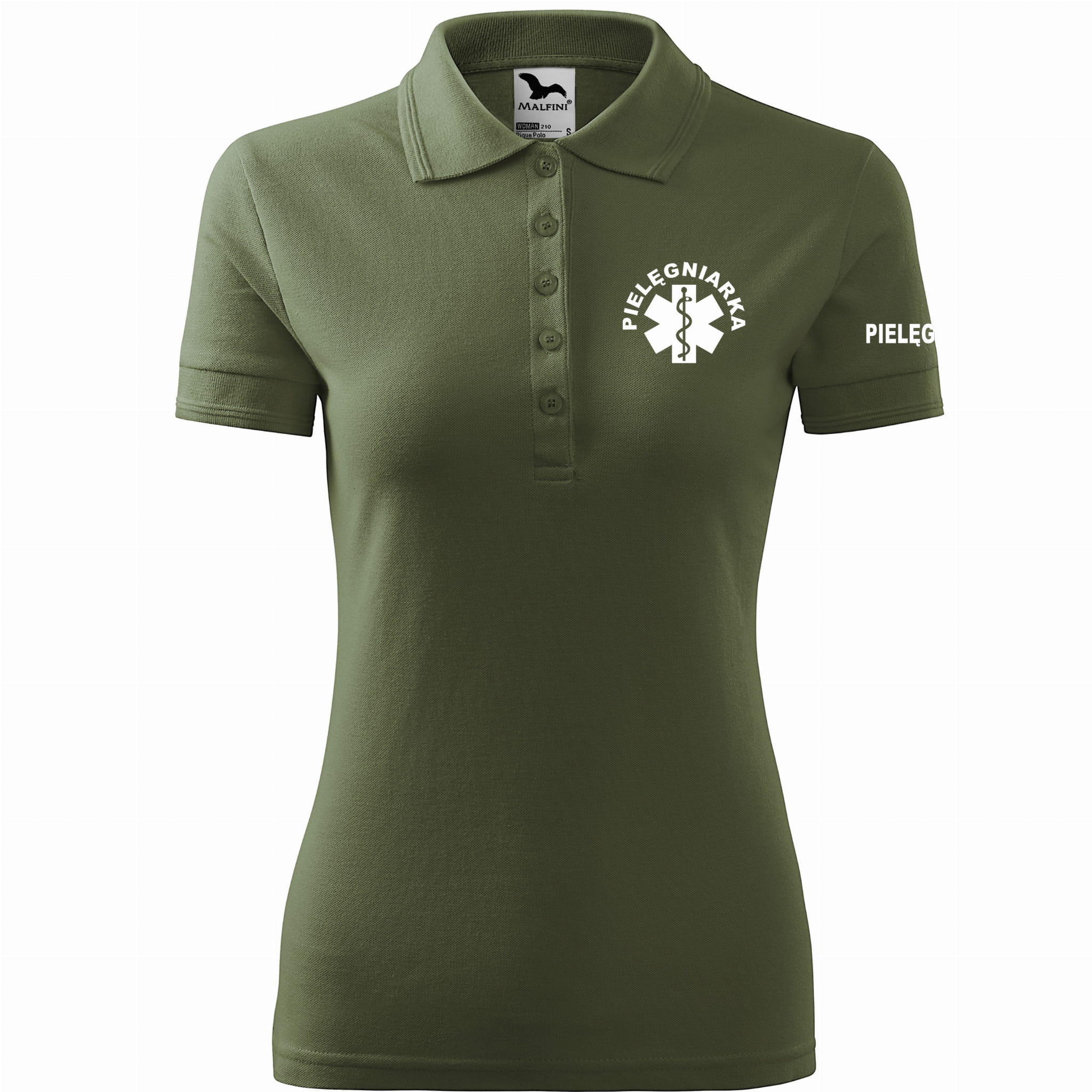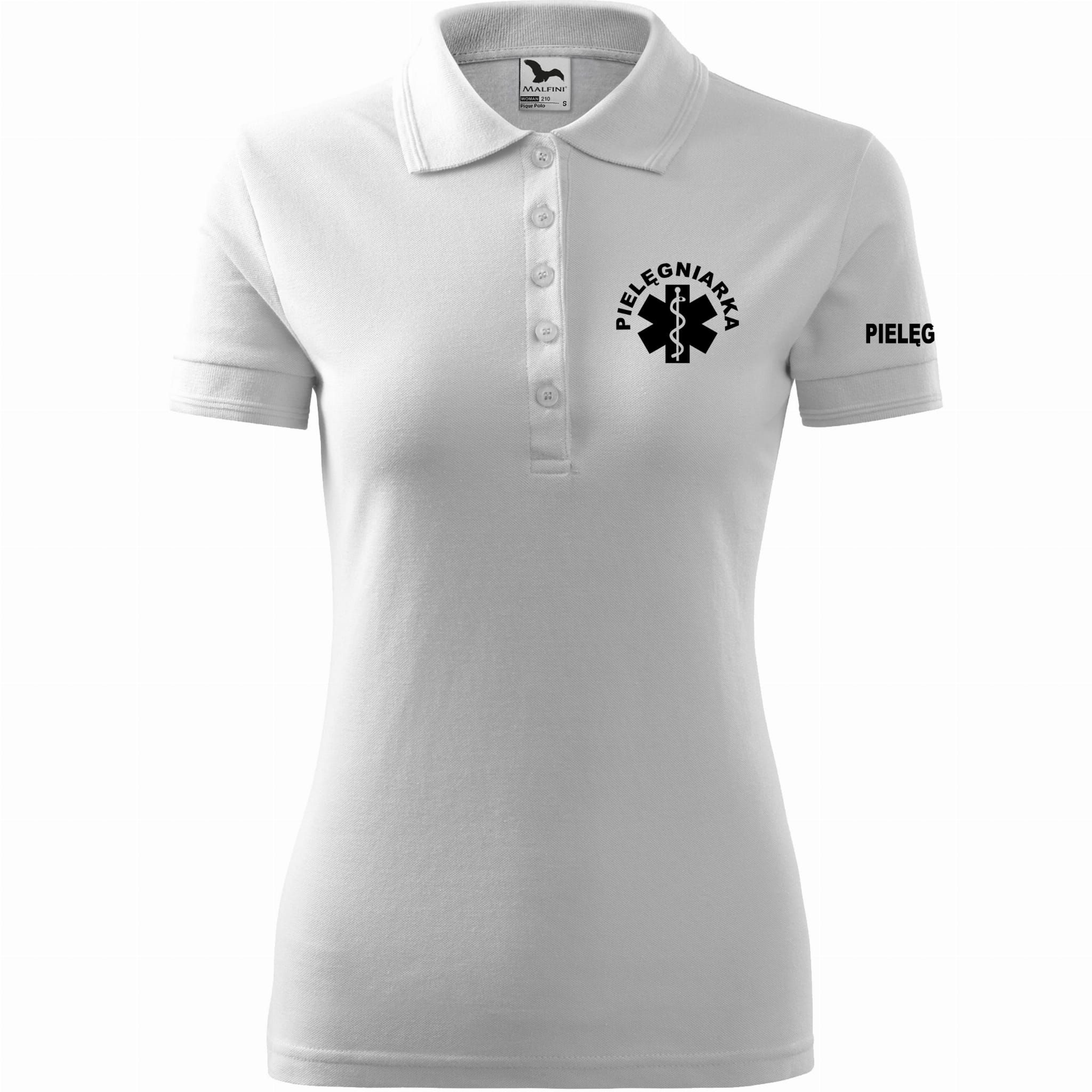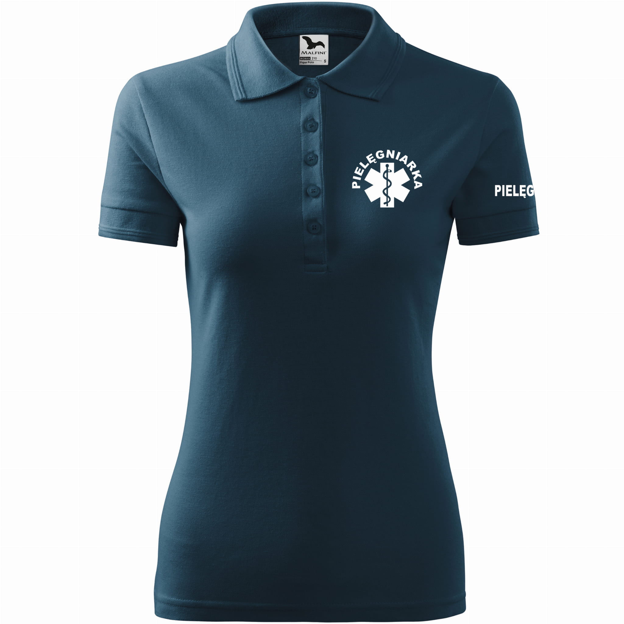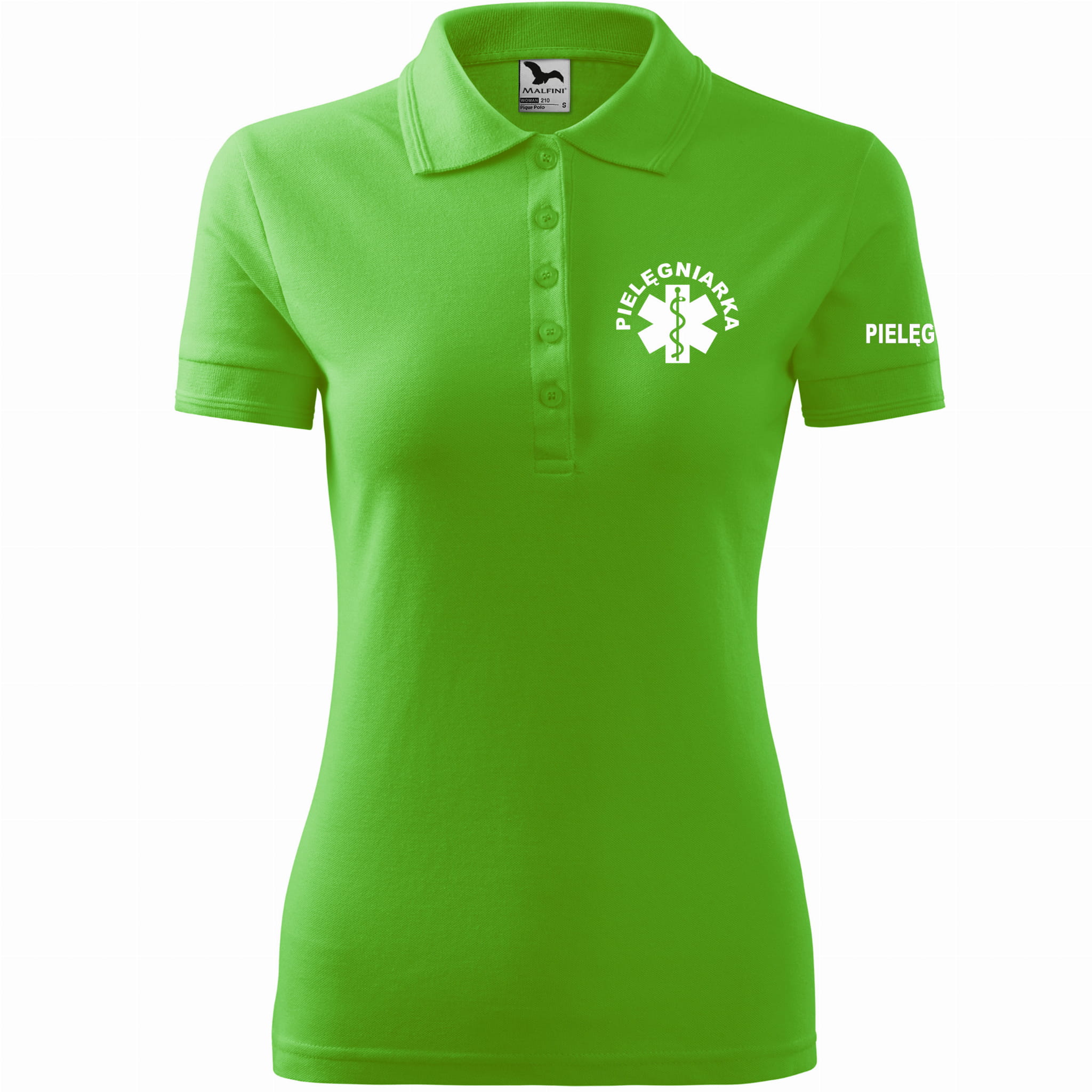 Koszulka damska POLO (210) PIELĘGNIARKA ESKULAP nadruk PRZÓD I RĘKAWEK