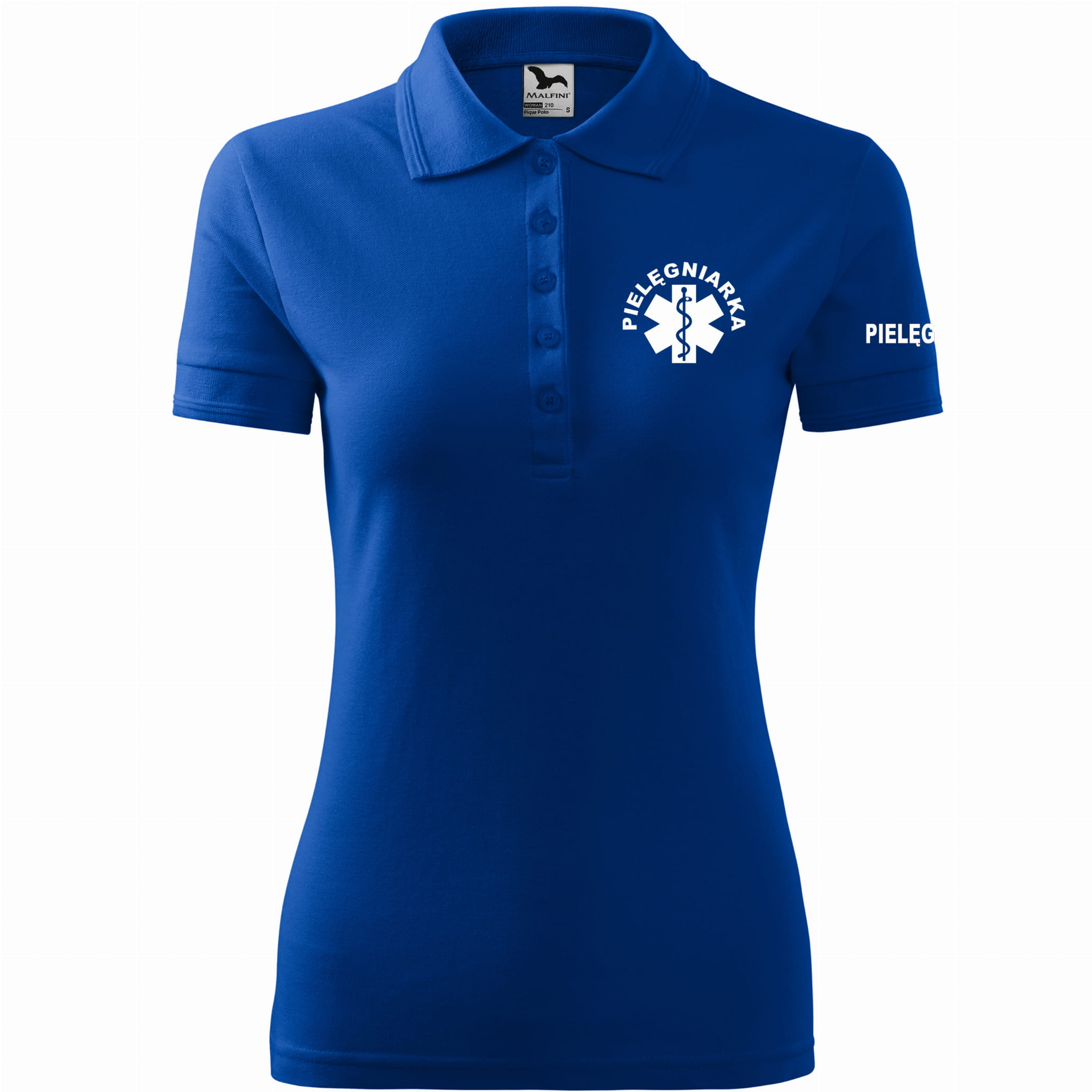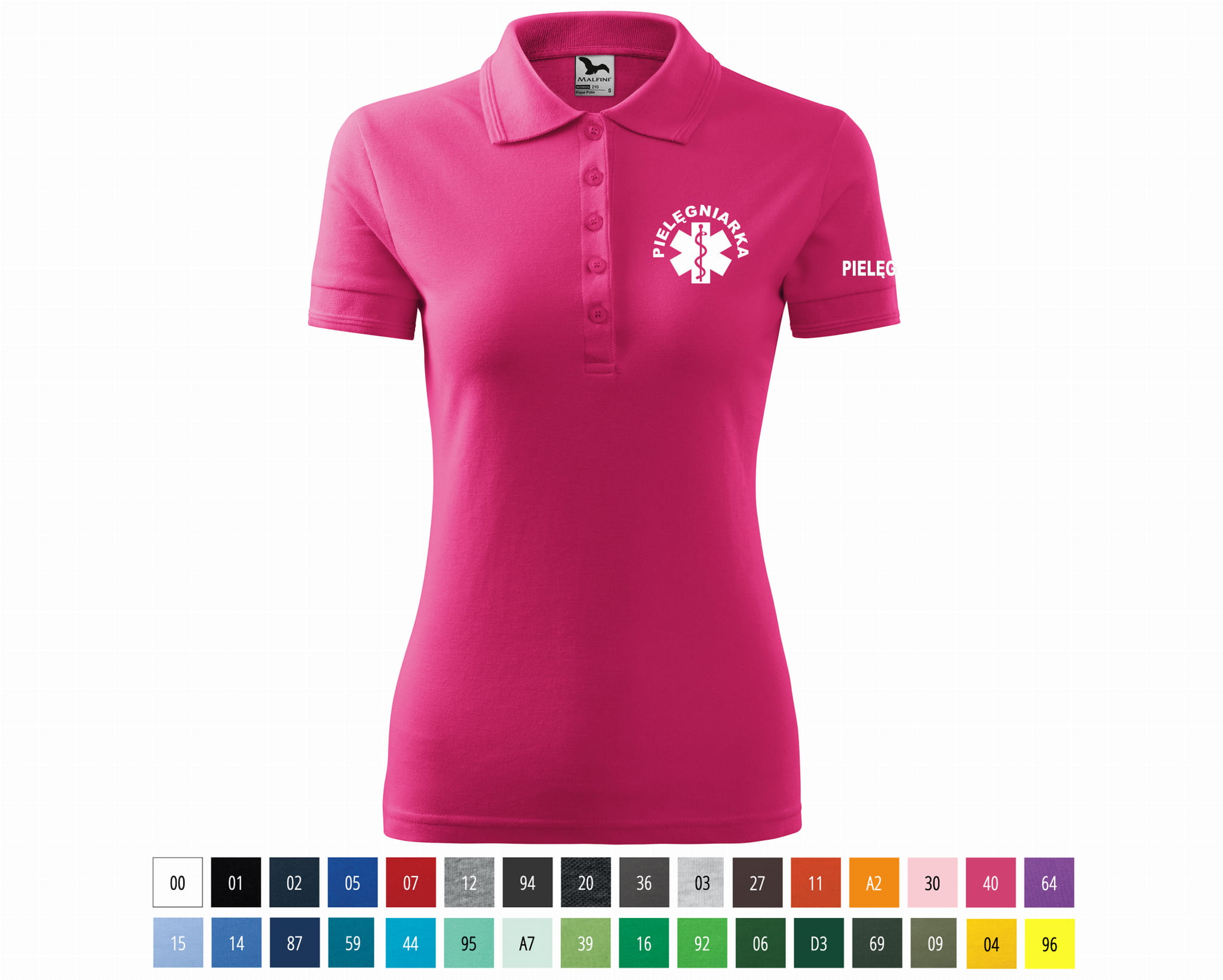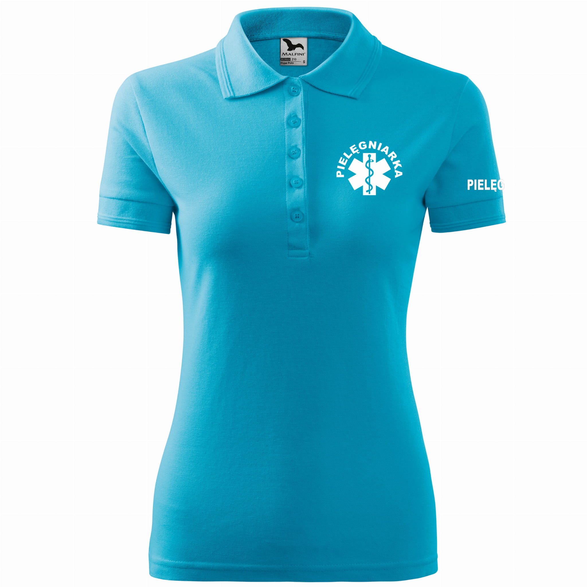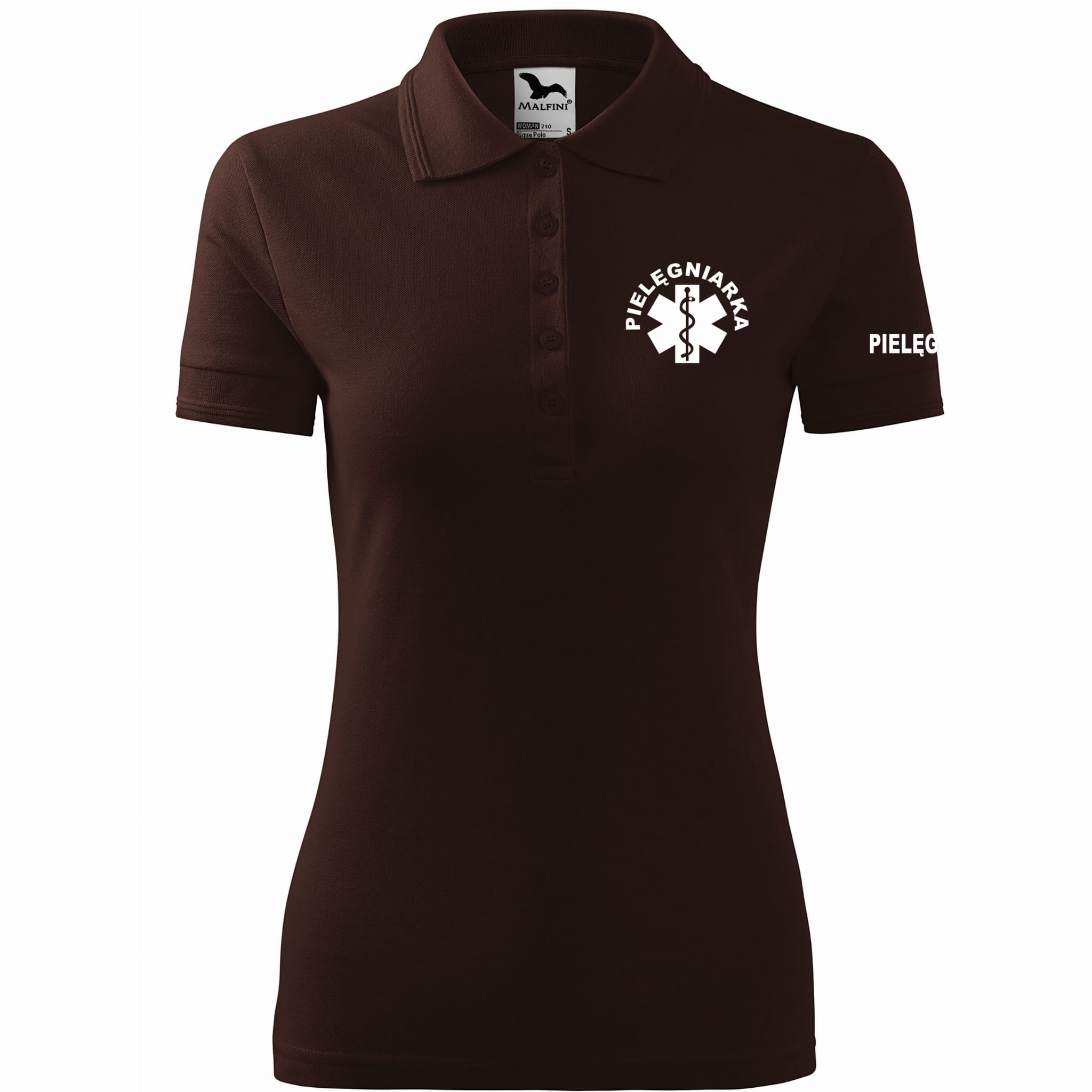 Koszulka damska POLO (210) PIELĘGNIARKA ESKULAP nadruk PRZÓD I RĘKAWEK