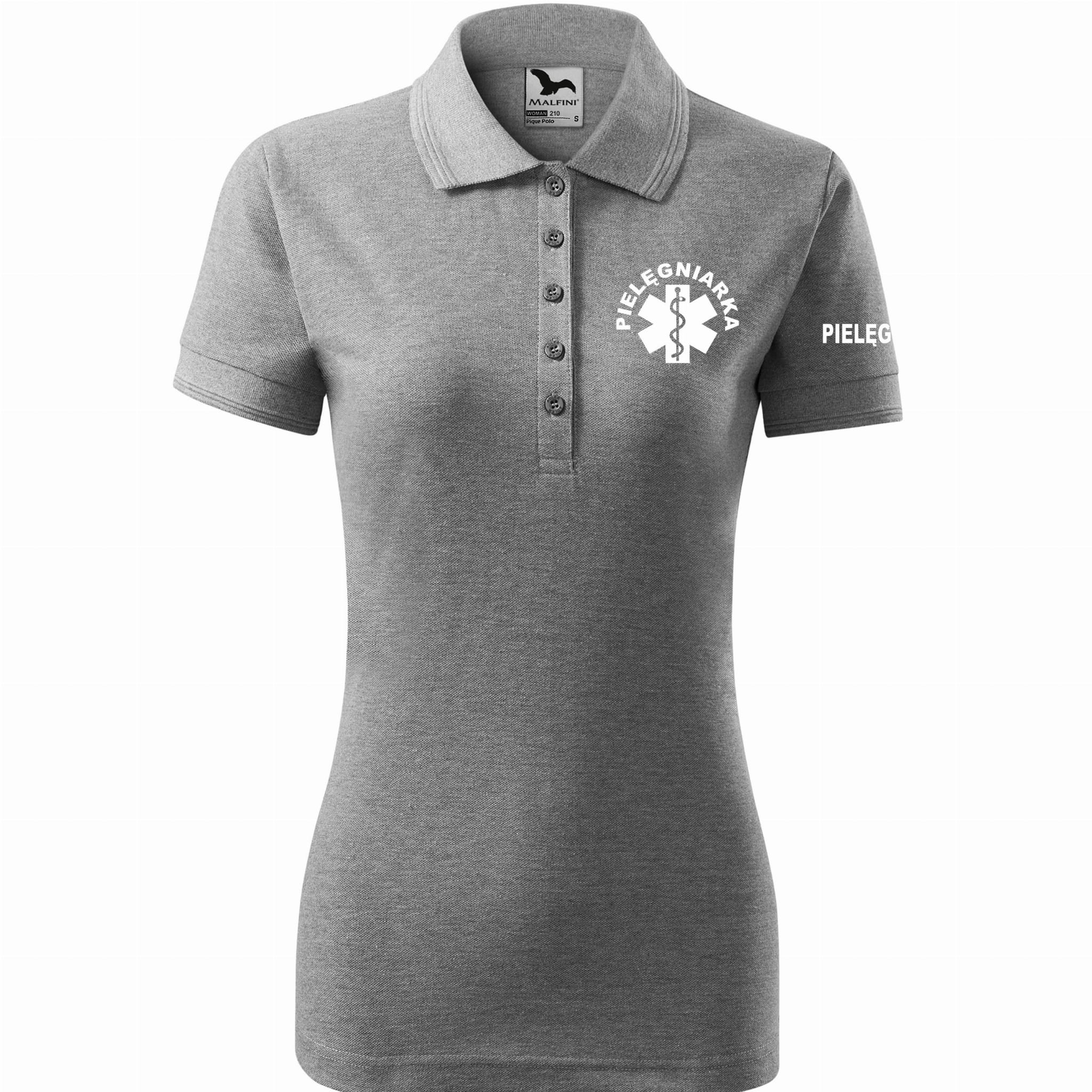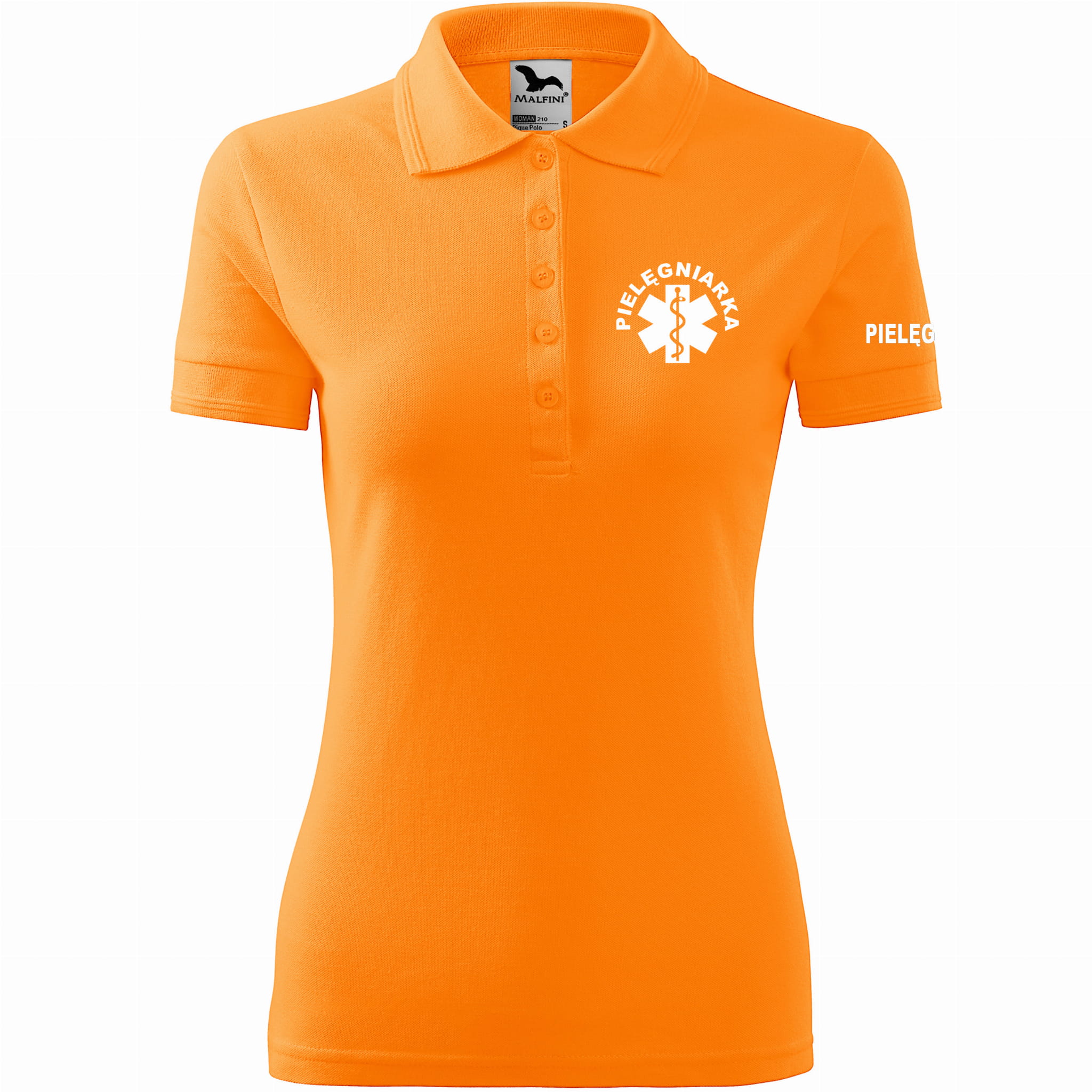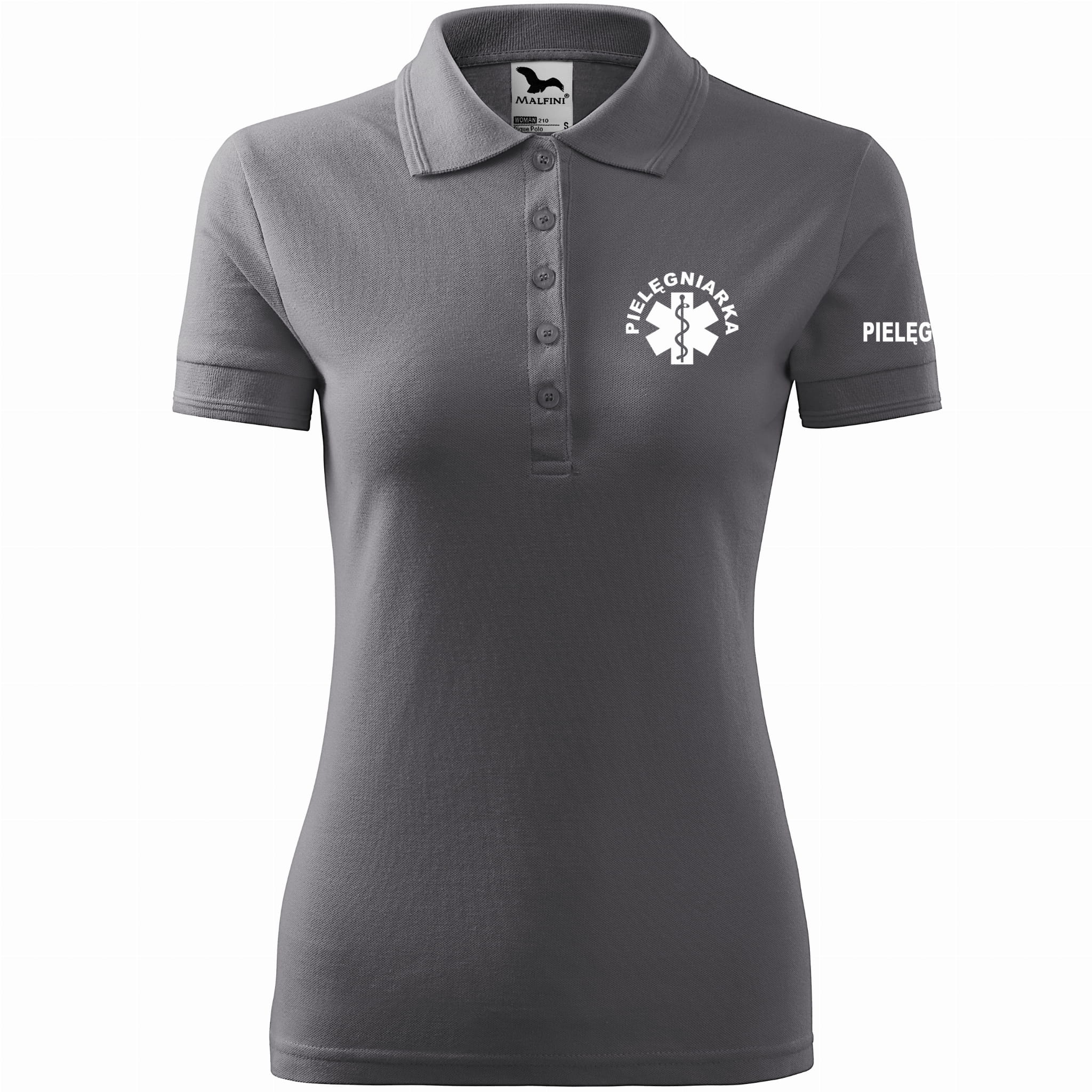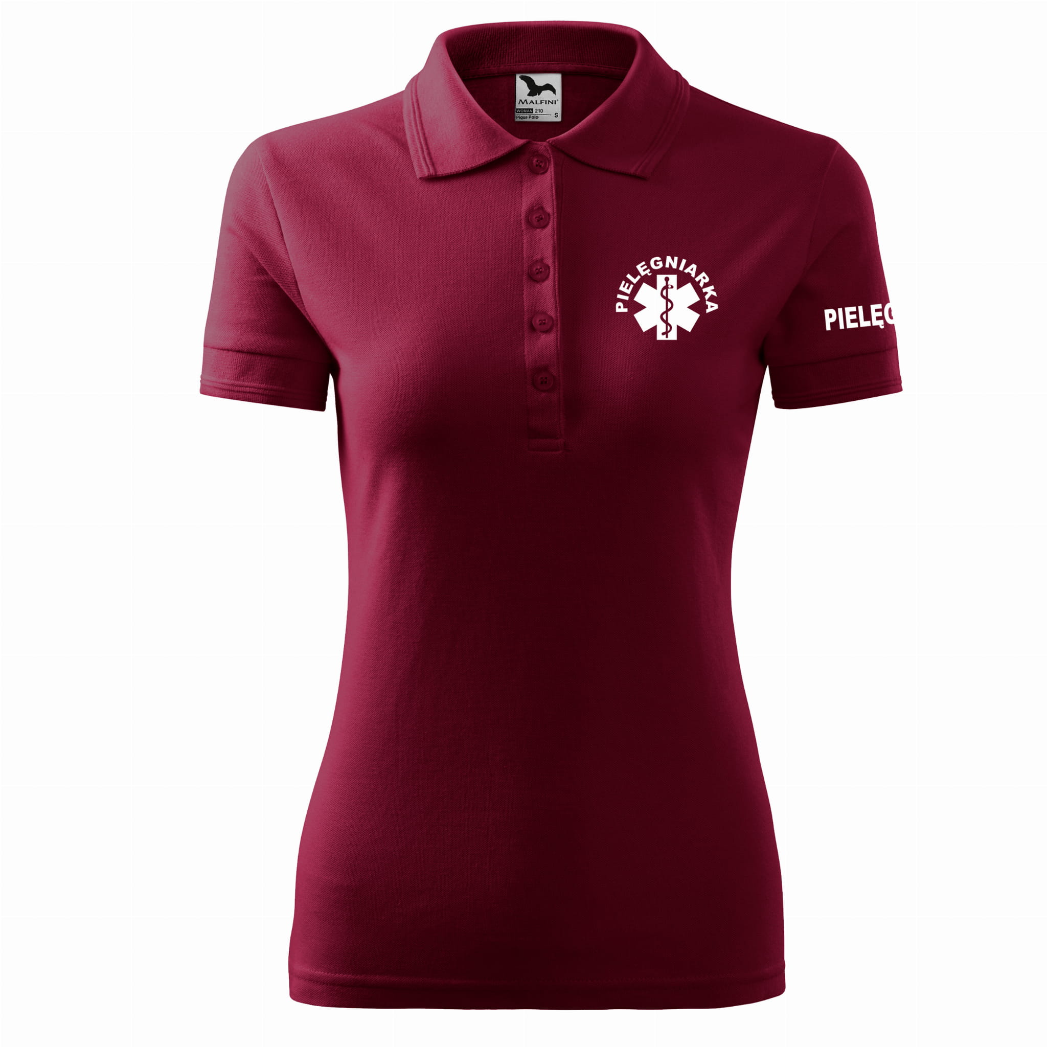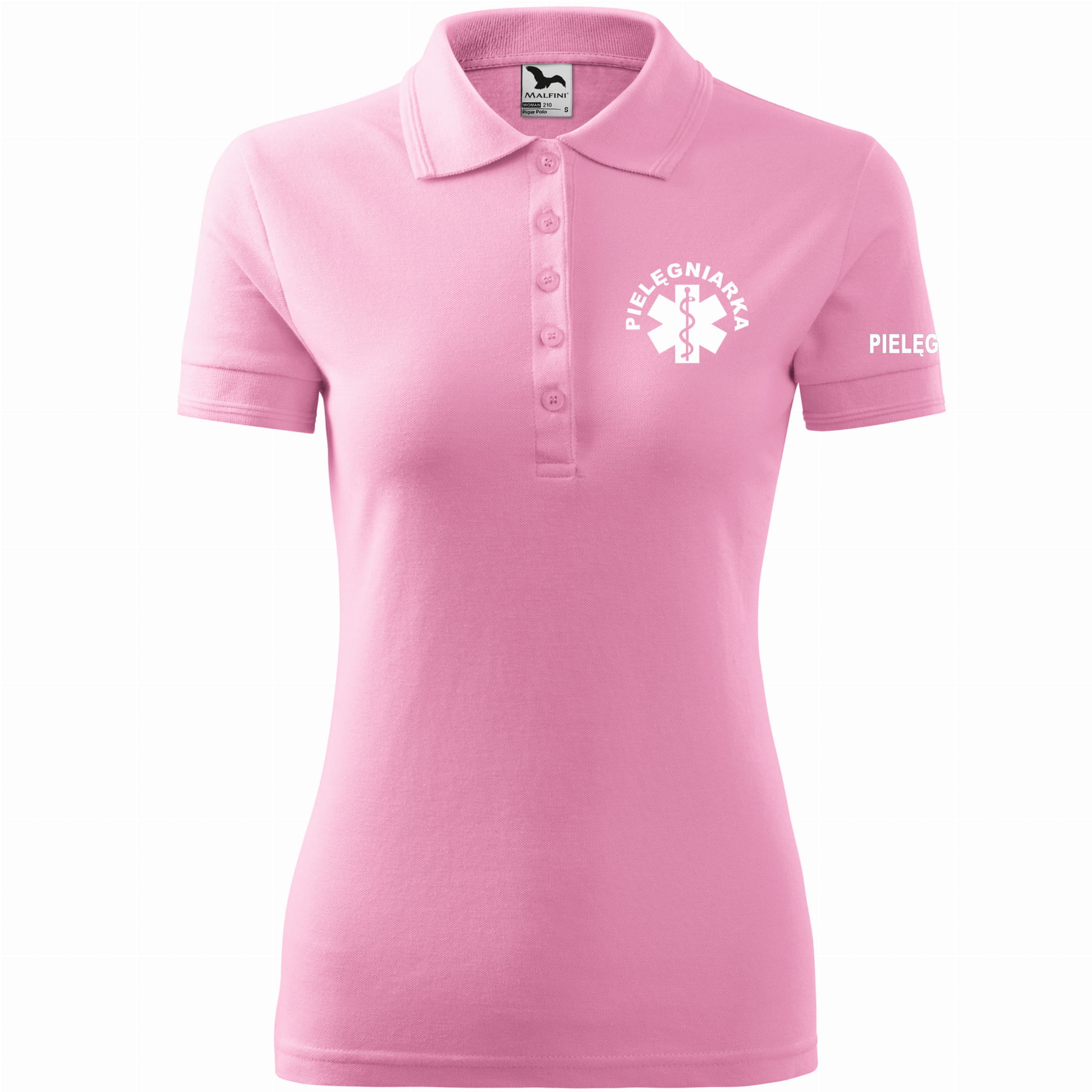 Koszulka damska POLO (210) PIELĘGNIARKA ESKULAP nadruk PRZÓD I RĘKAWEK