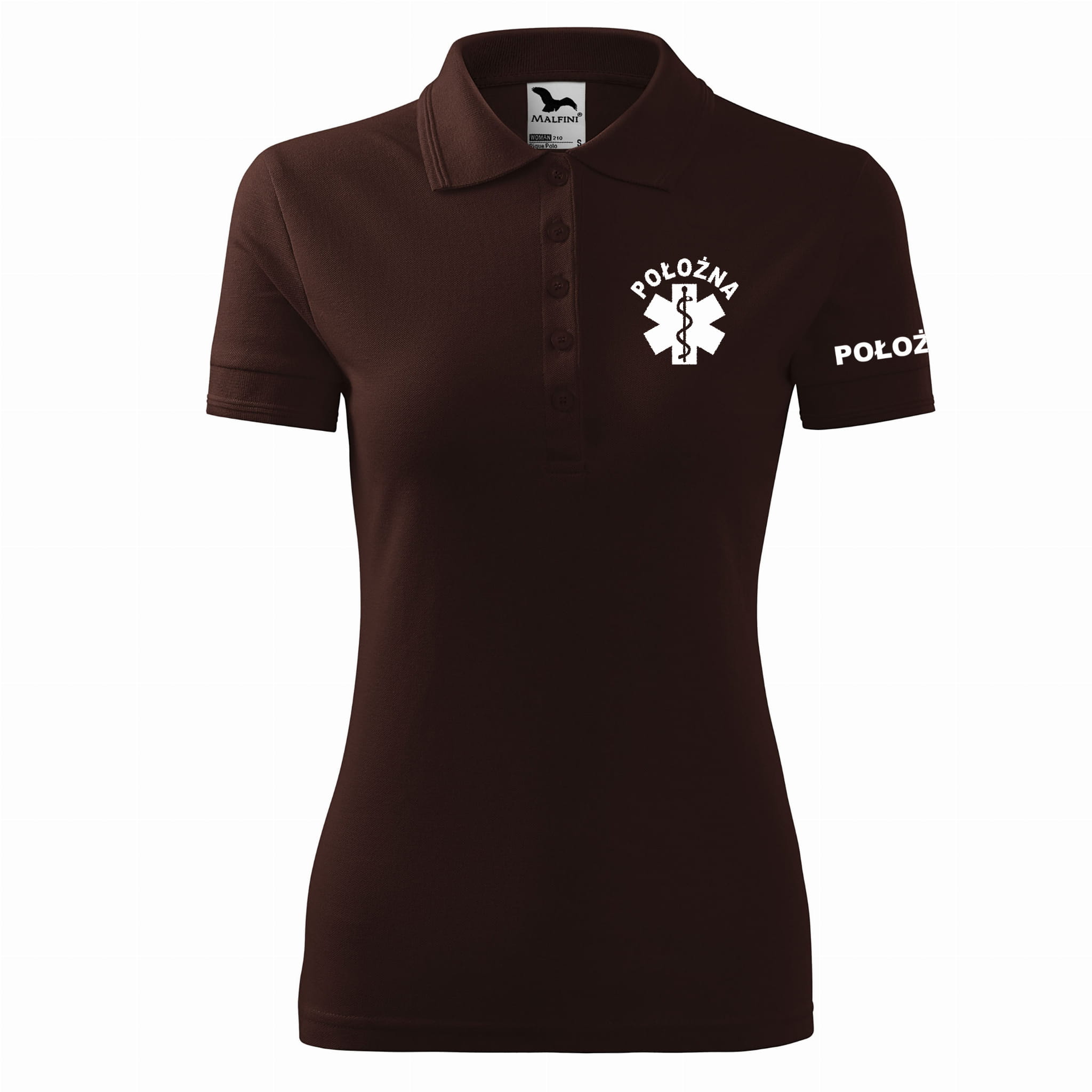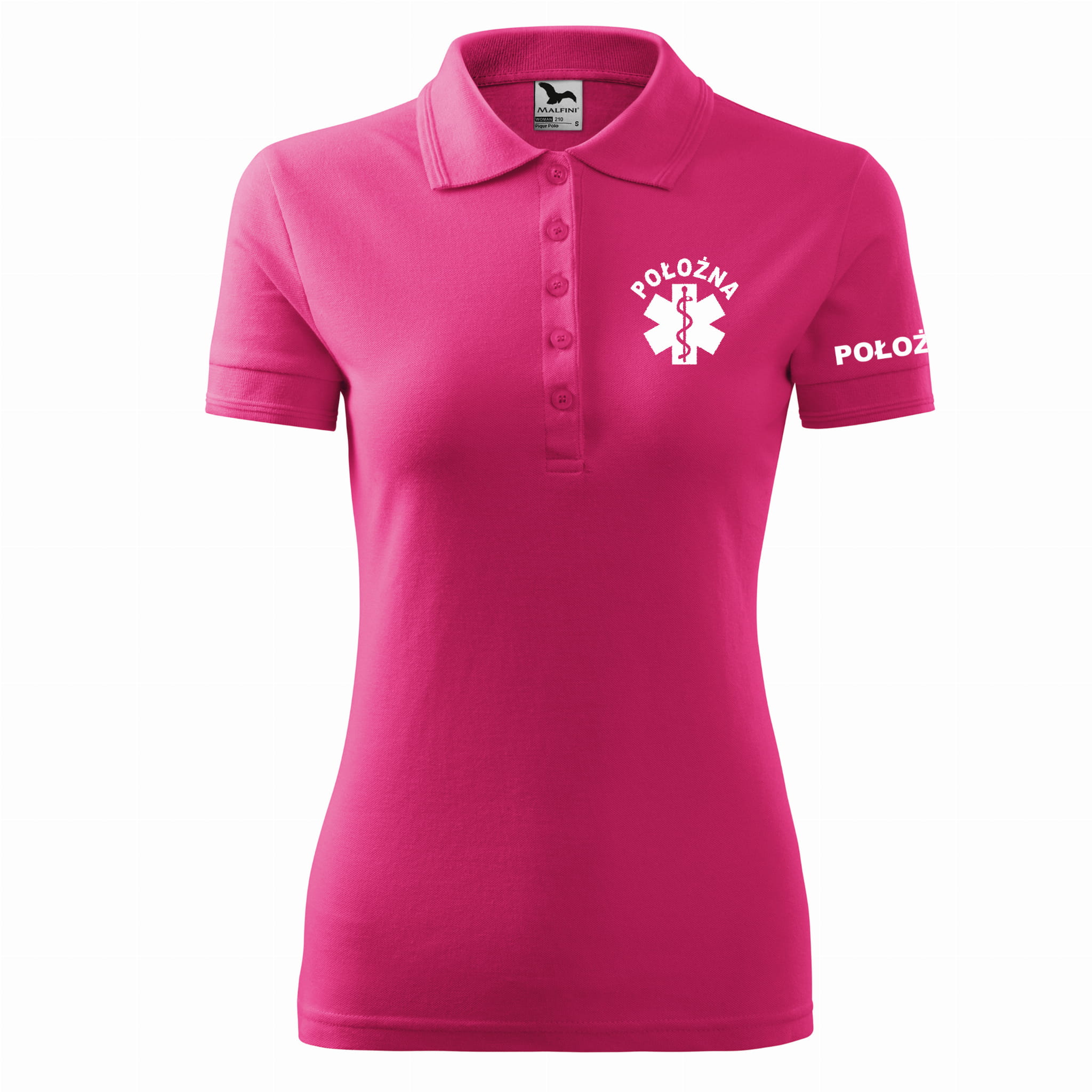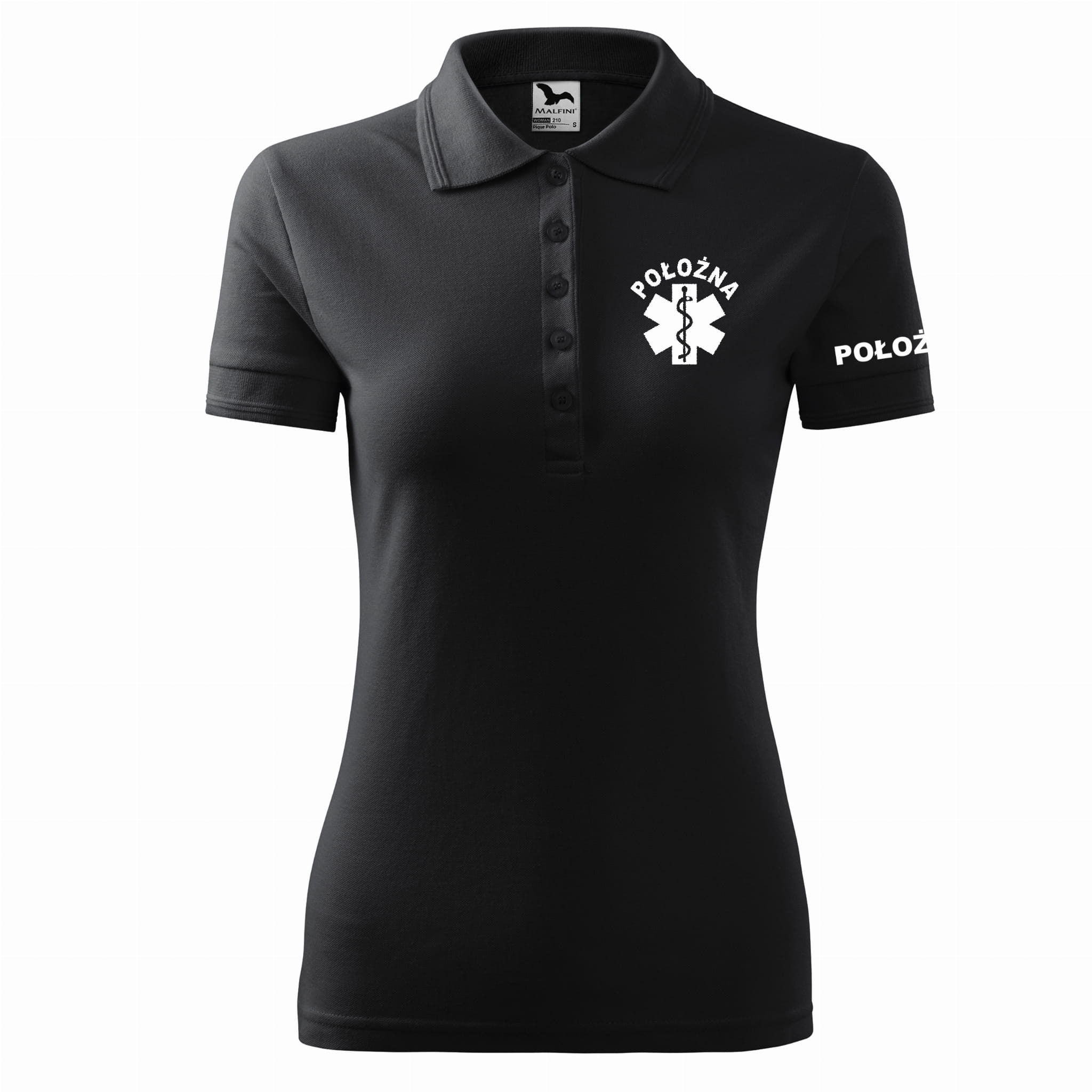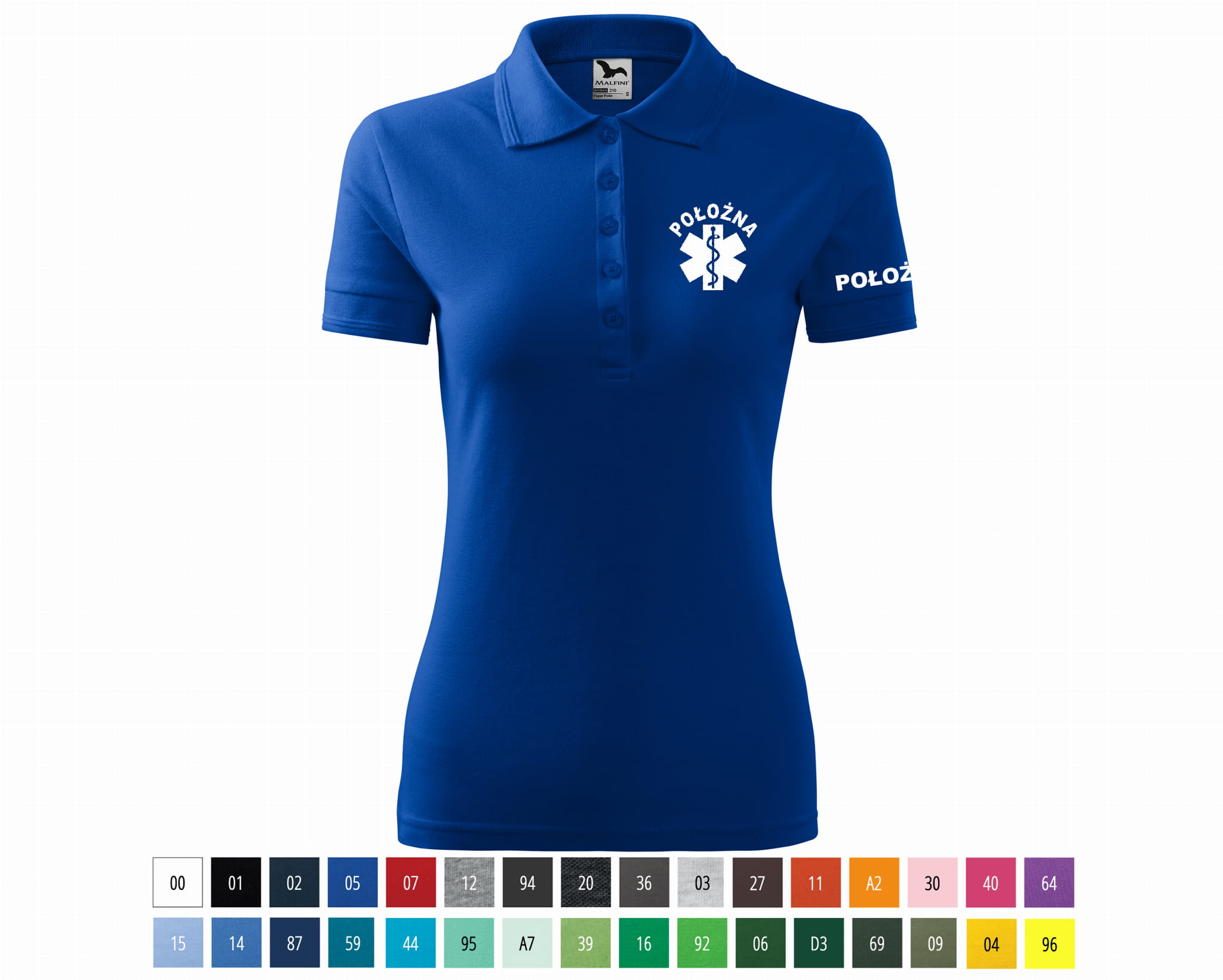 Koszulka damska POLO (210) POŁOŻNA ESKULAP nadruk PRZÓD I RĘKAWEK