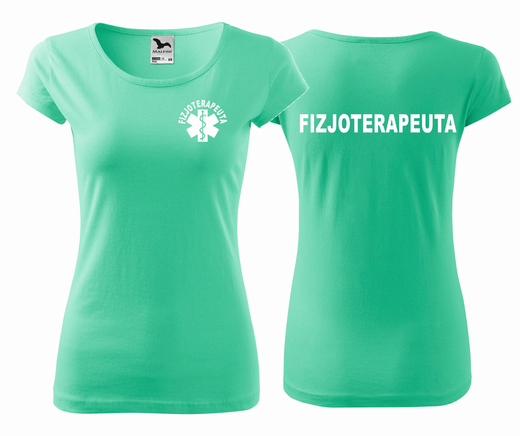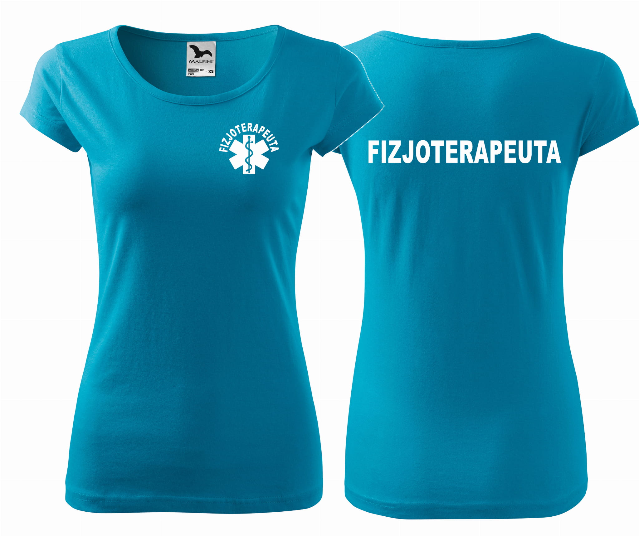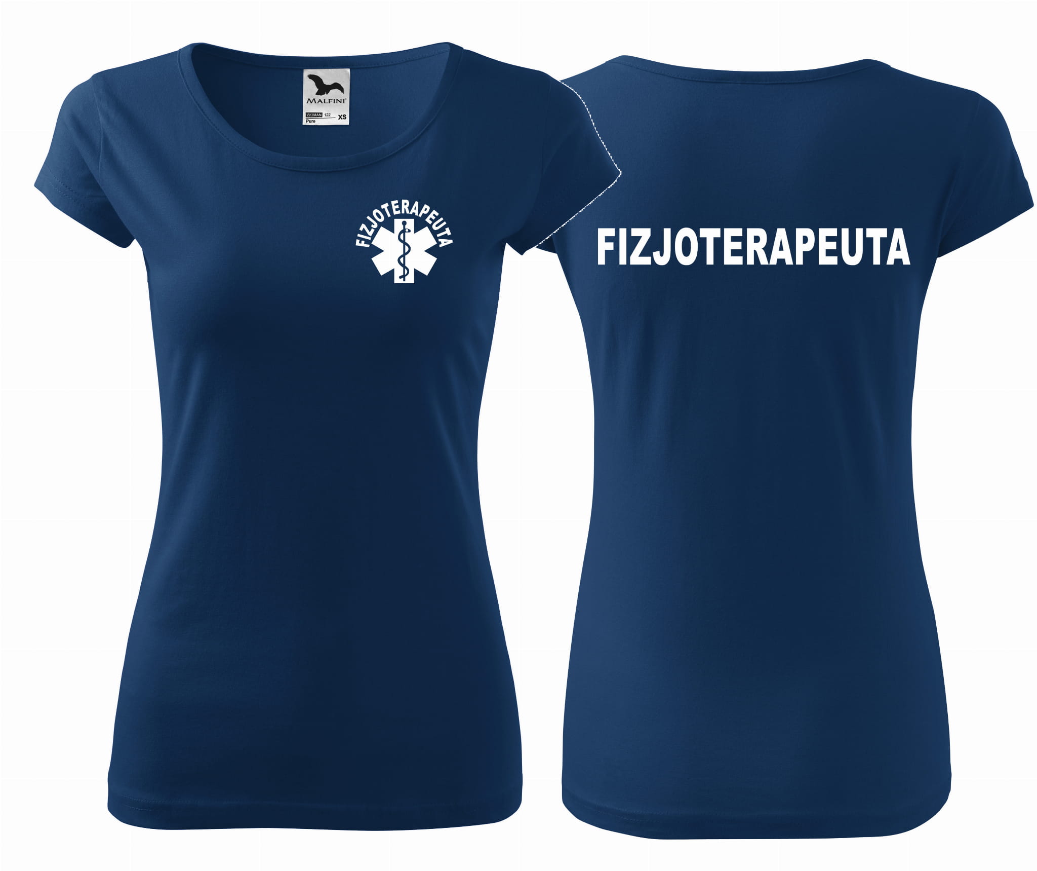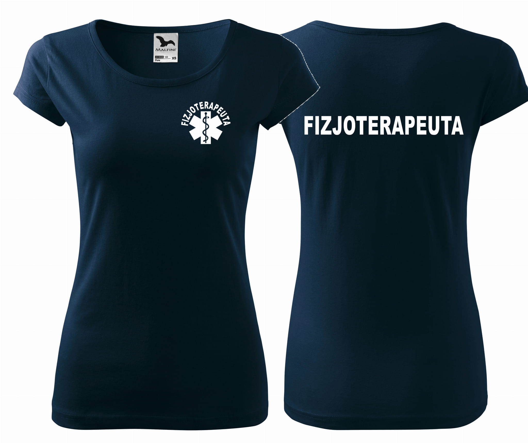 Koszulka damska PURE FIZJOTERAPEUTA ESKULAP nadruk PRZÓD I TYŁ