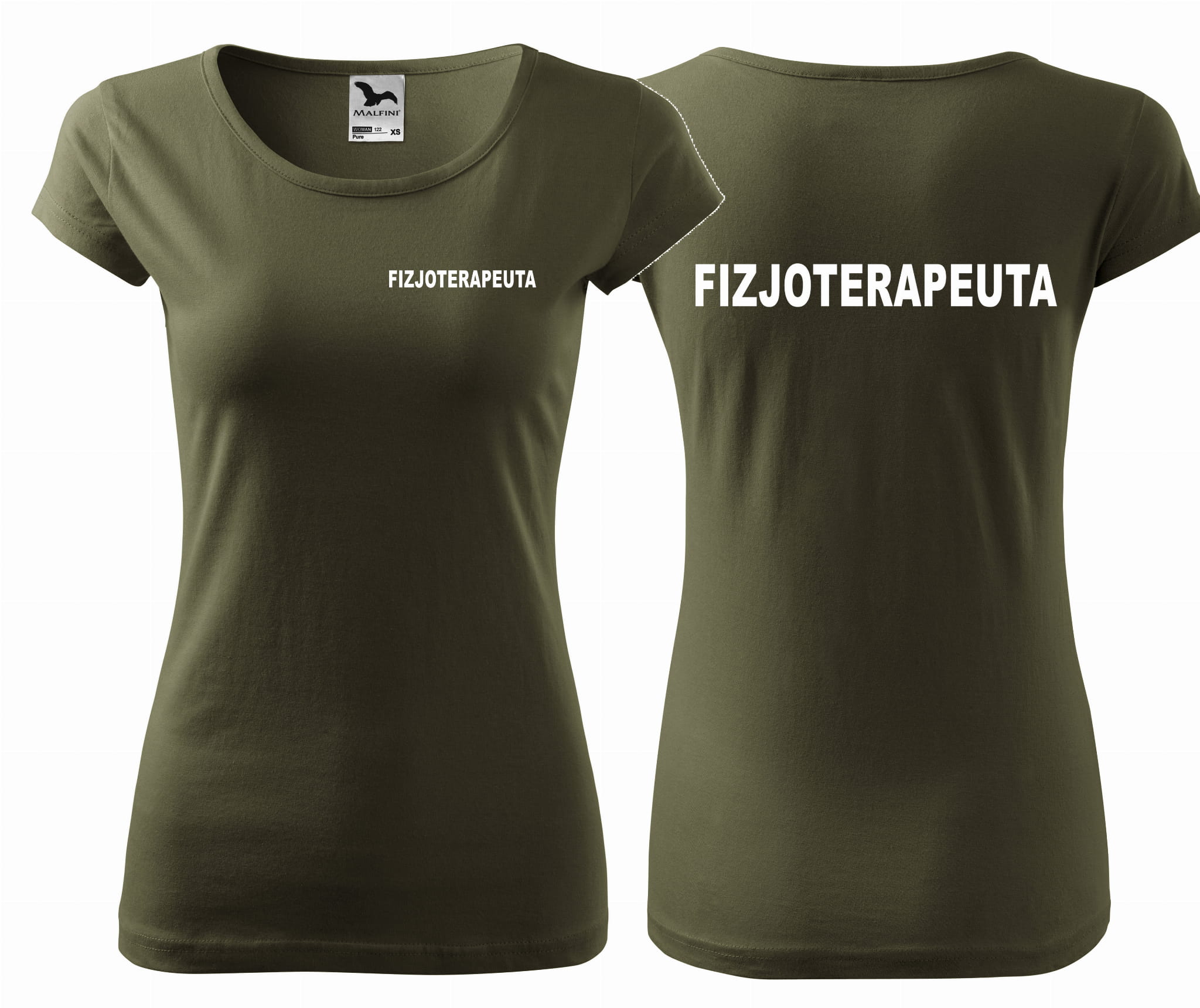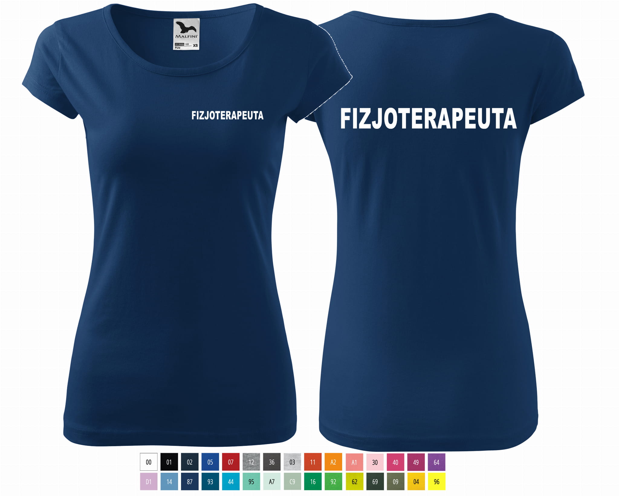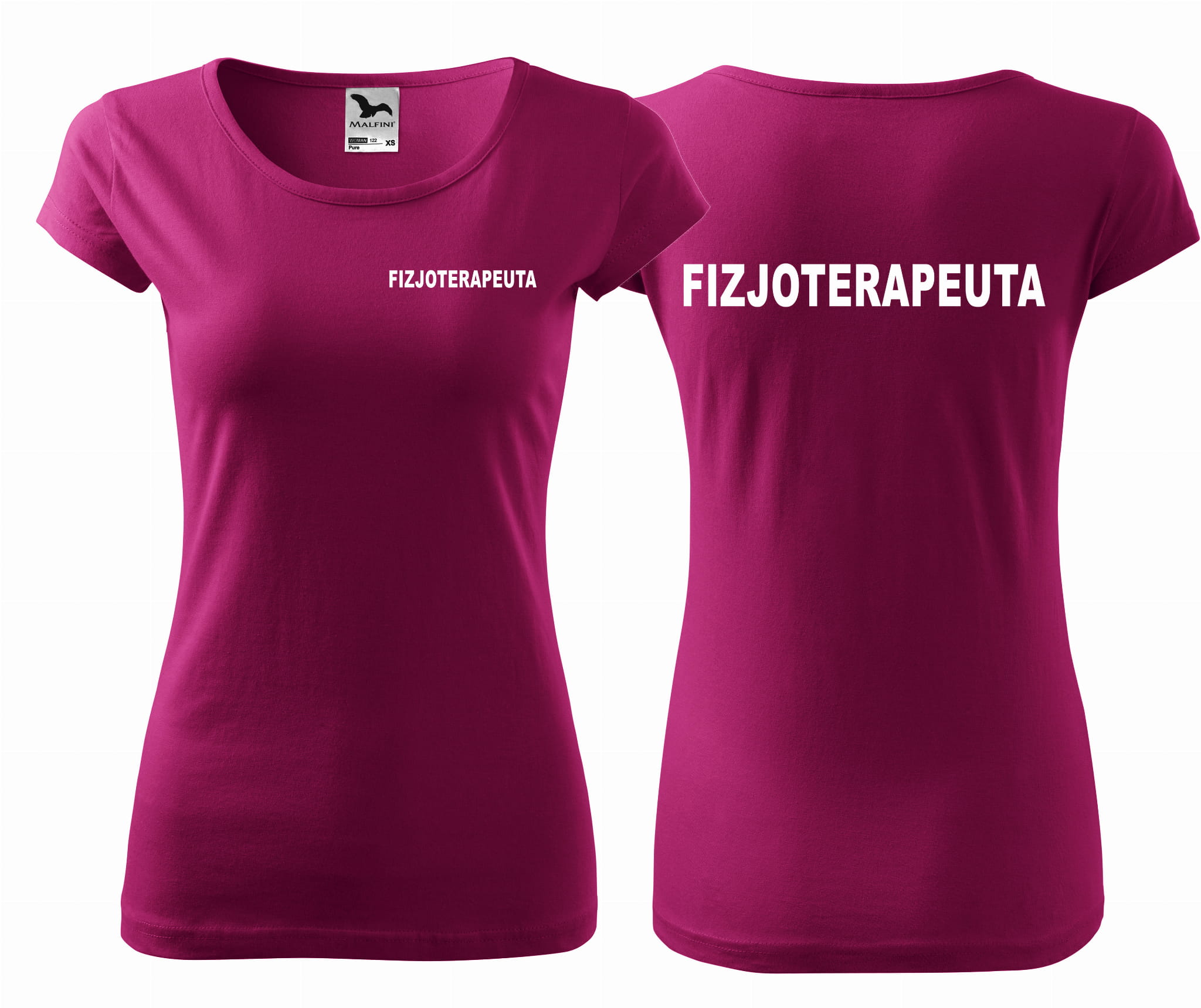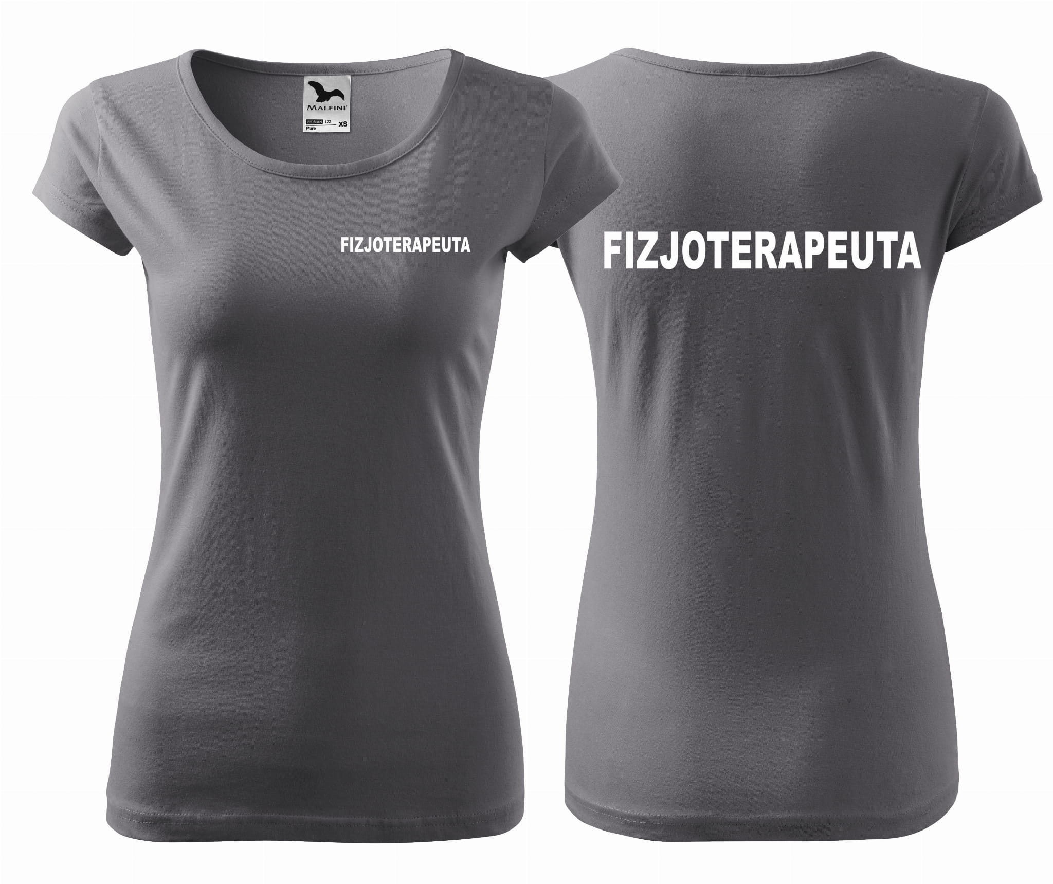Koszulka damska PURE FIZJOTERAPEUTA NAPISY nadruk PRZÓD I TYŁ