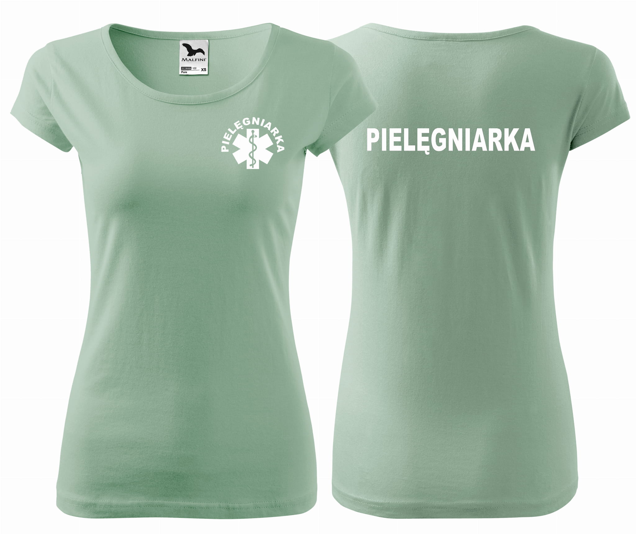 Koszulka damska PURE PIELĘGNIARKA ESKULAP nadruk PRZÓD I TYŁ