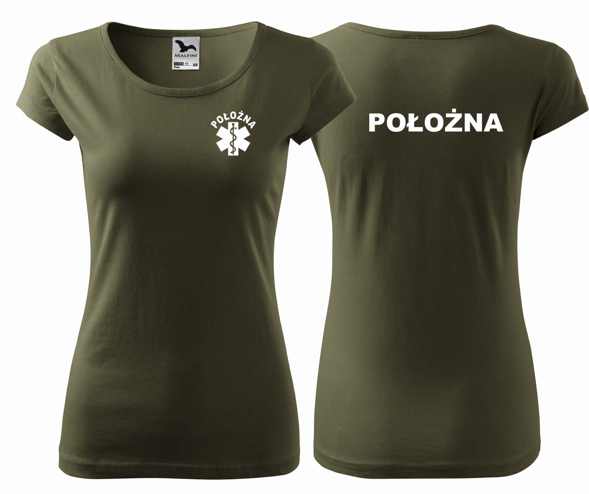 Koszulka damska PURE POŁOŻNA ESKULAP nadruk PRZÓD I TYŁ
