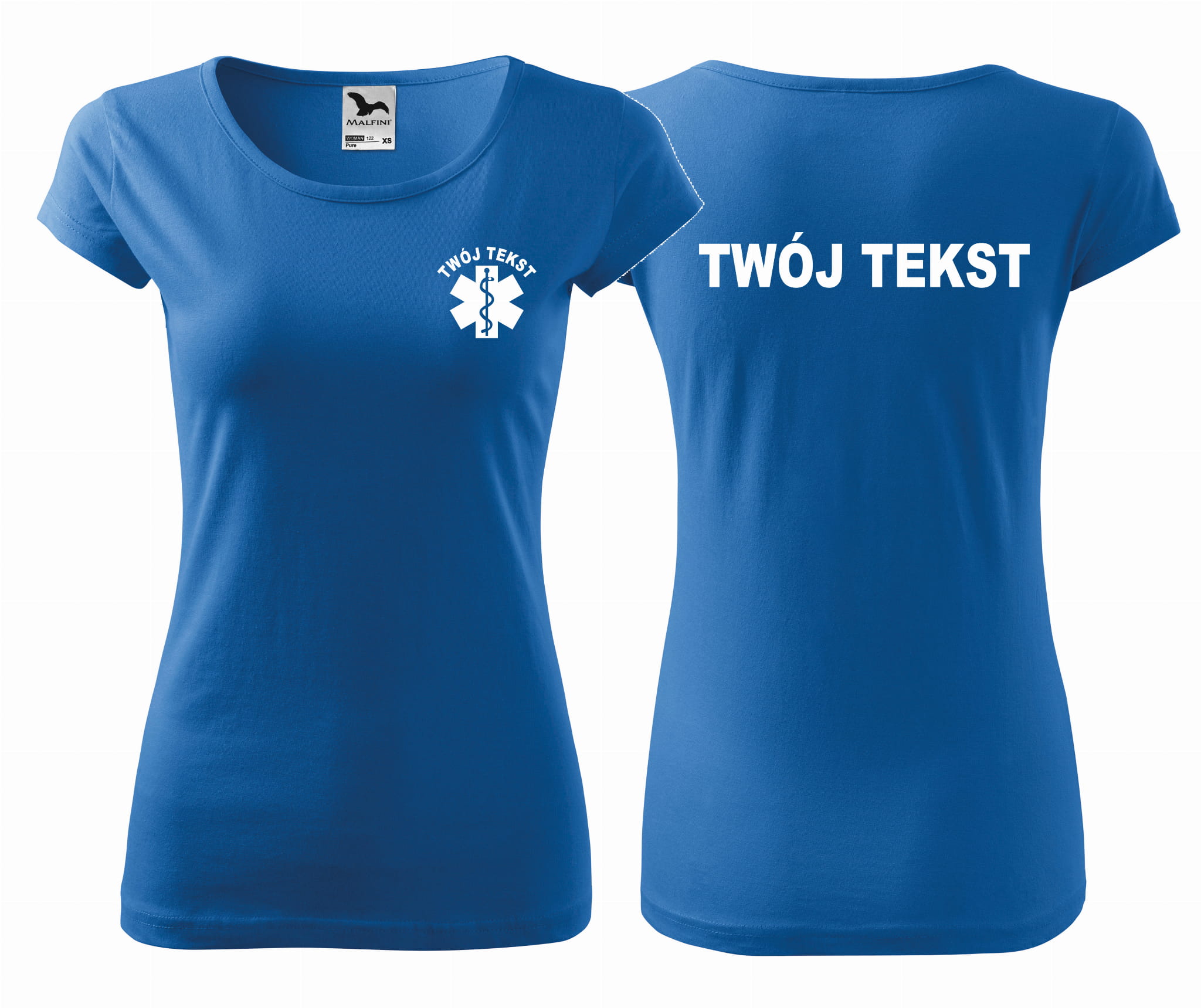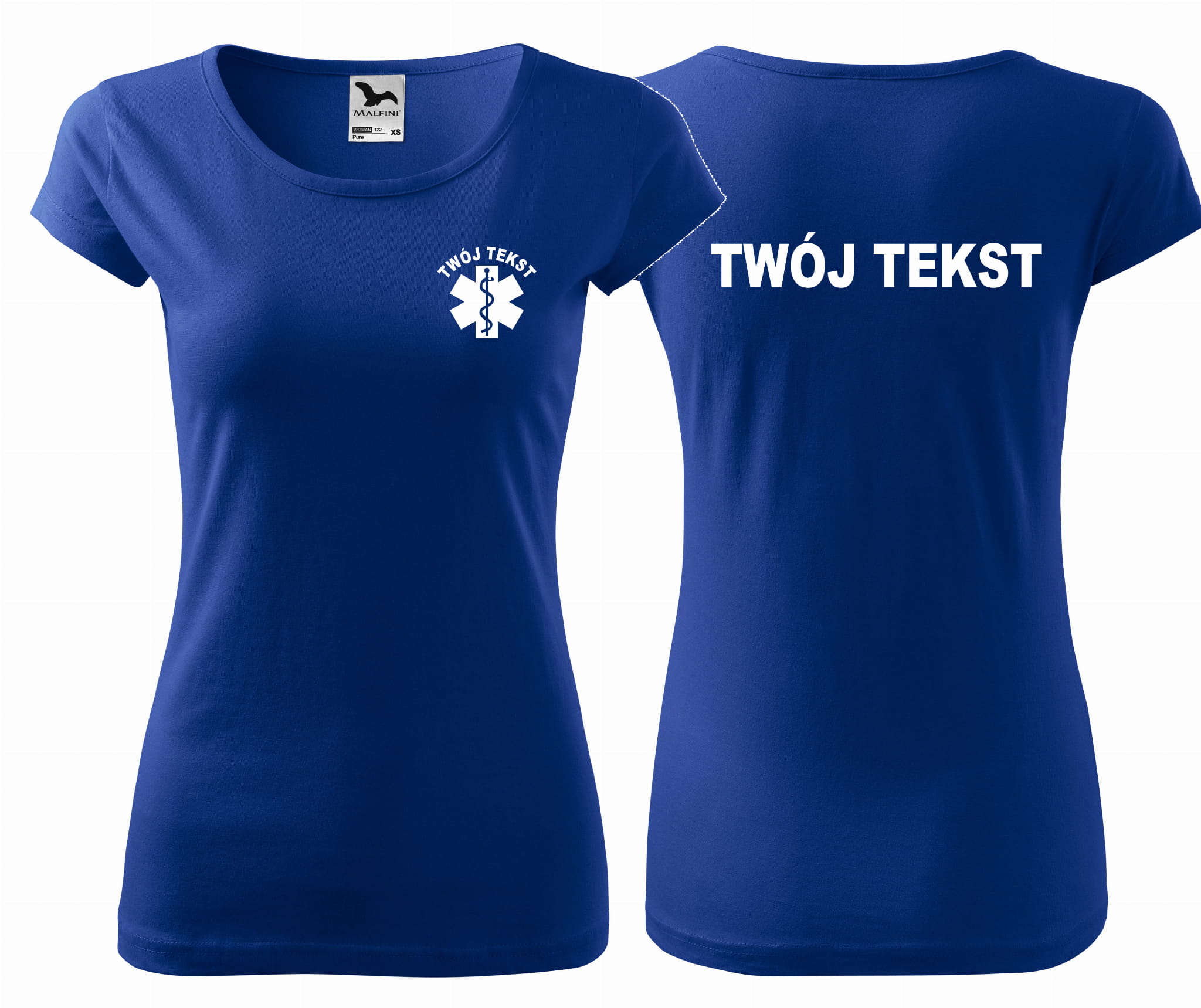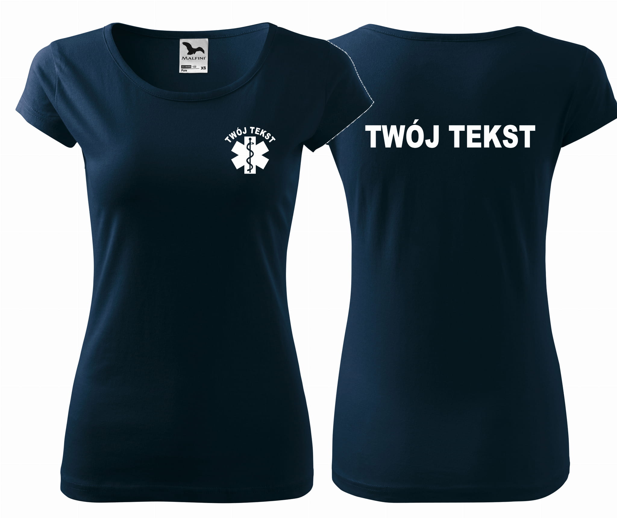 Koszulka damska PURE TWÓJ TEKST + ESKULAP nadruk PRZÓD I TYŁ