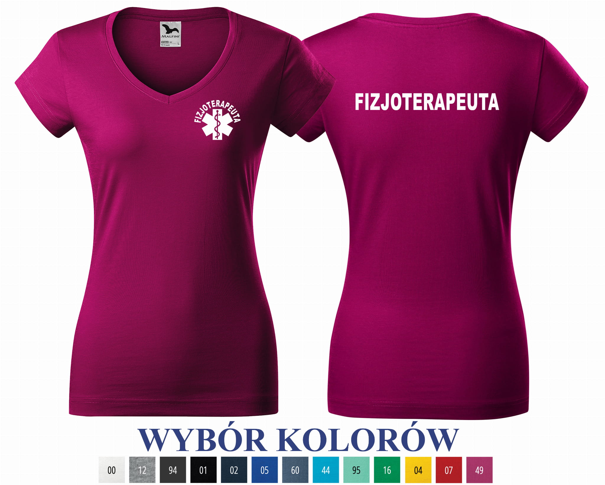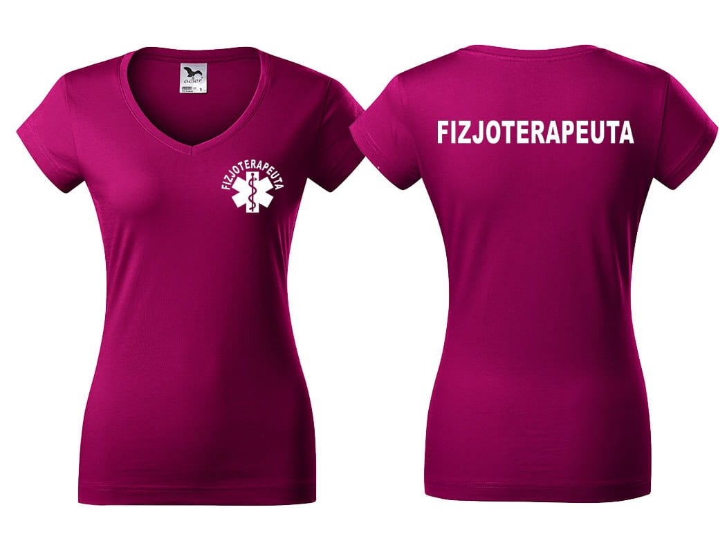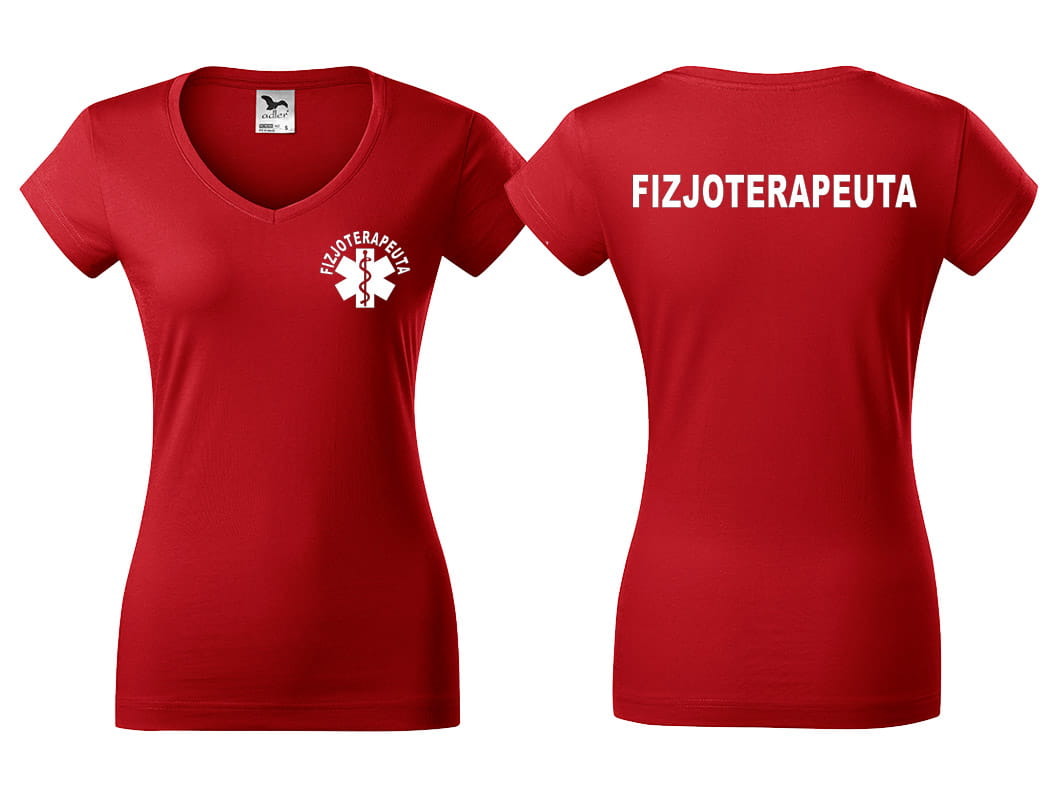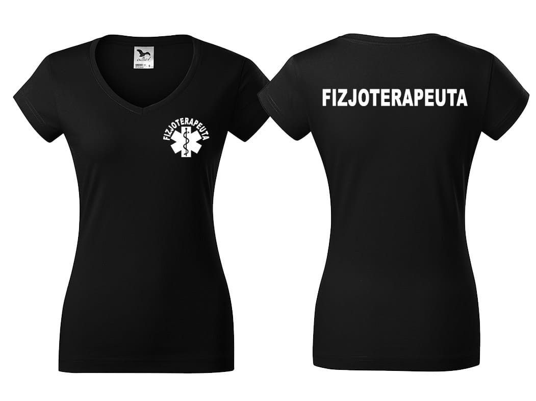 Koszulka damska V-NECK FIZJOTERAPEUTA nadruk PRZÓD I TYŁ