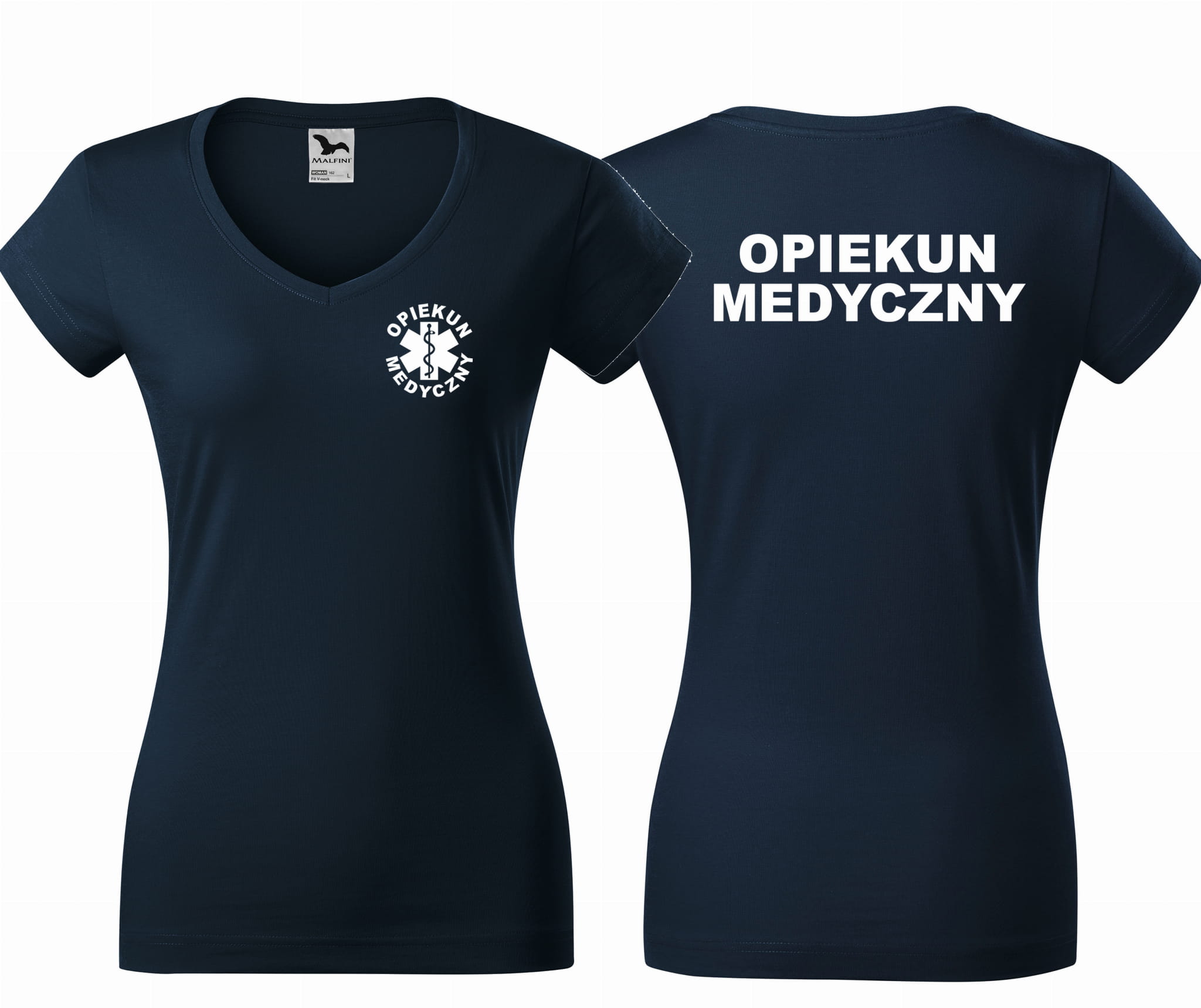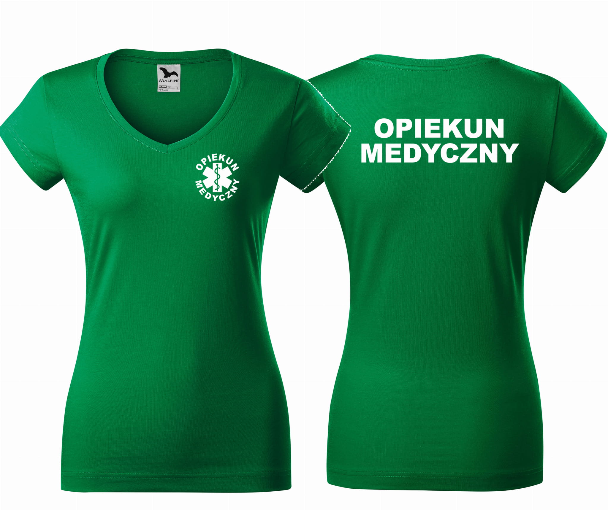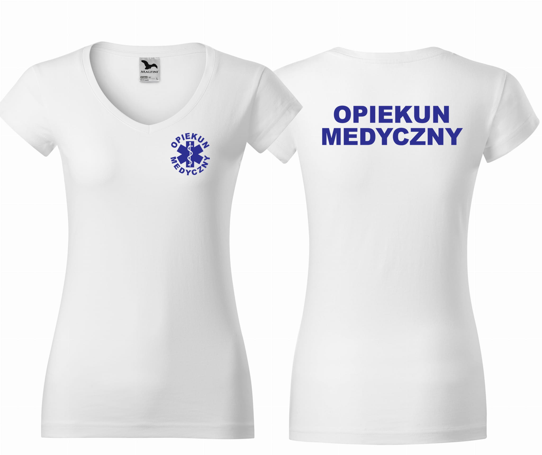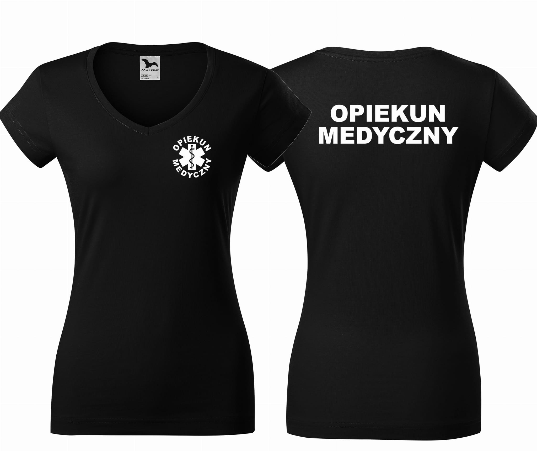 Koszulka damska V-NECK OPIEKUN MEDYCZNY nadruk PRZÓD I TYŁ