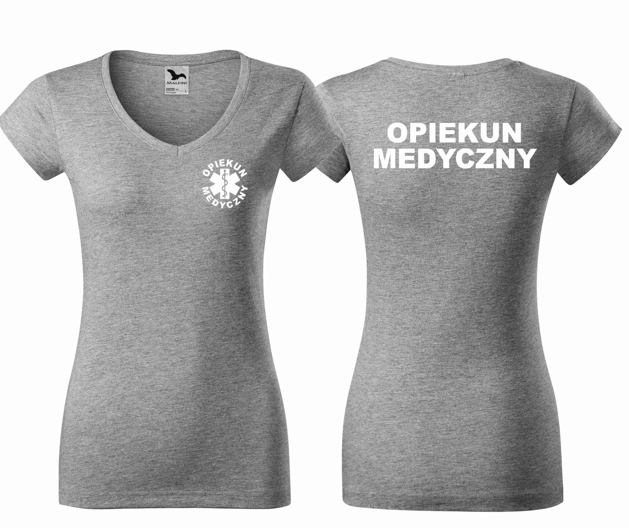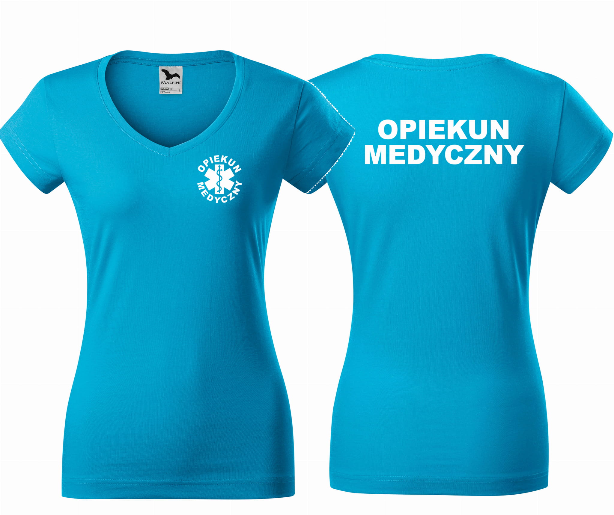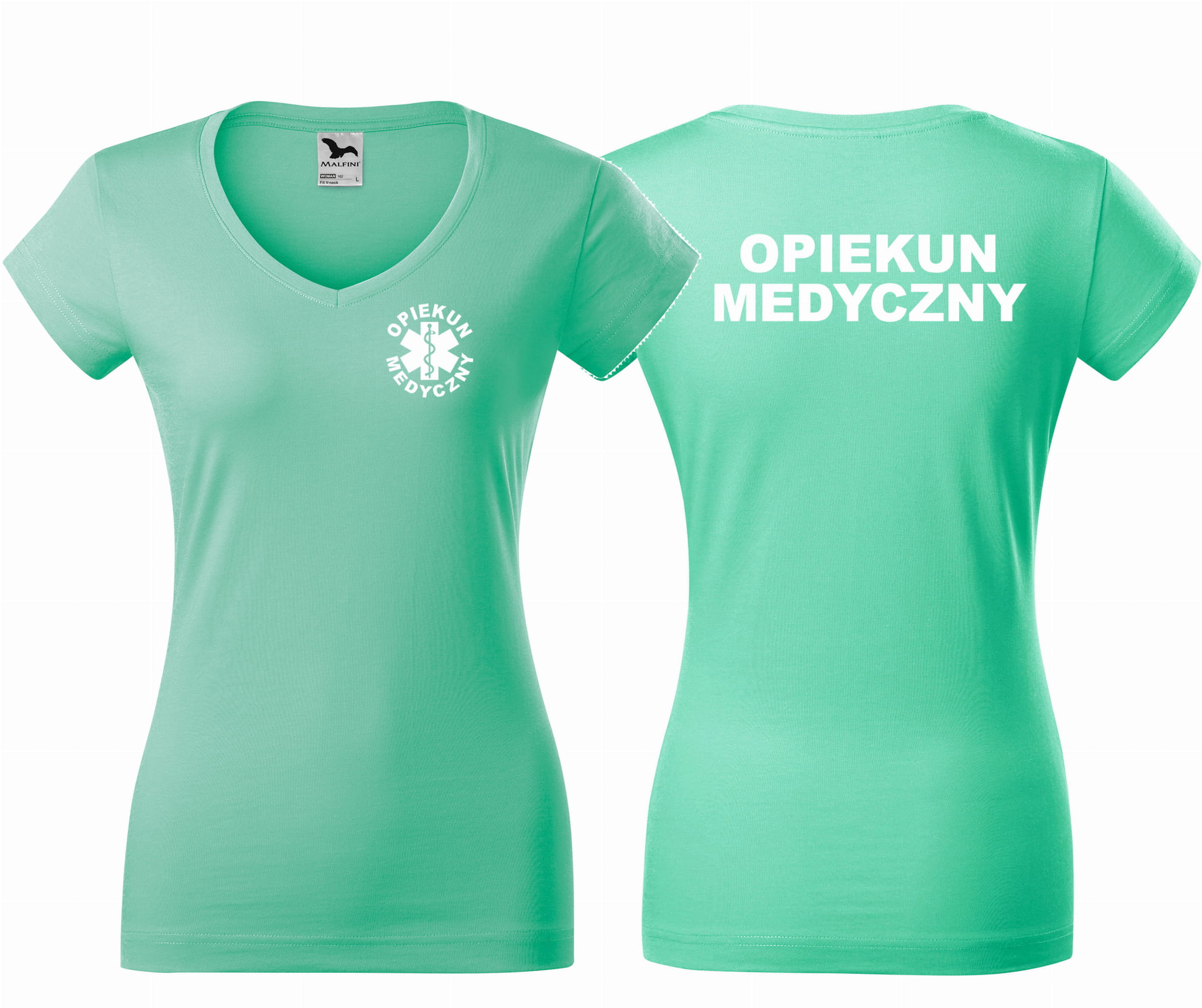 Koszulka damska V-NECK OPIEKUN MEDYCZNY nadruk PRZÓD I TYŁ