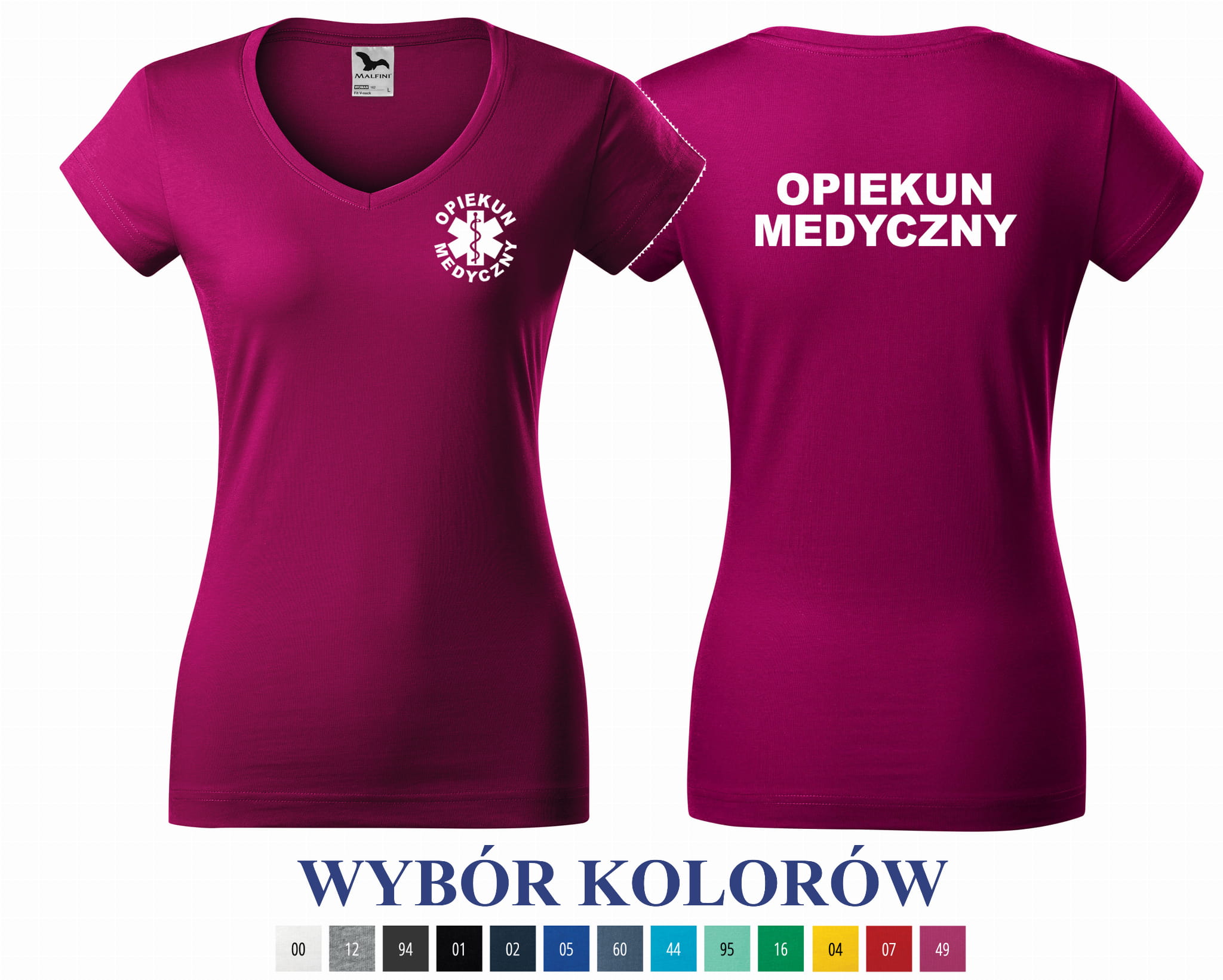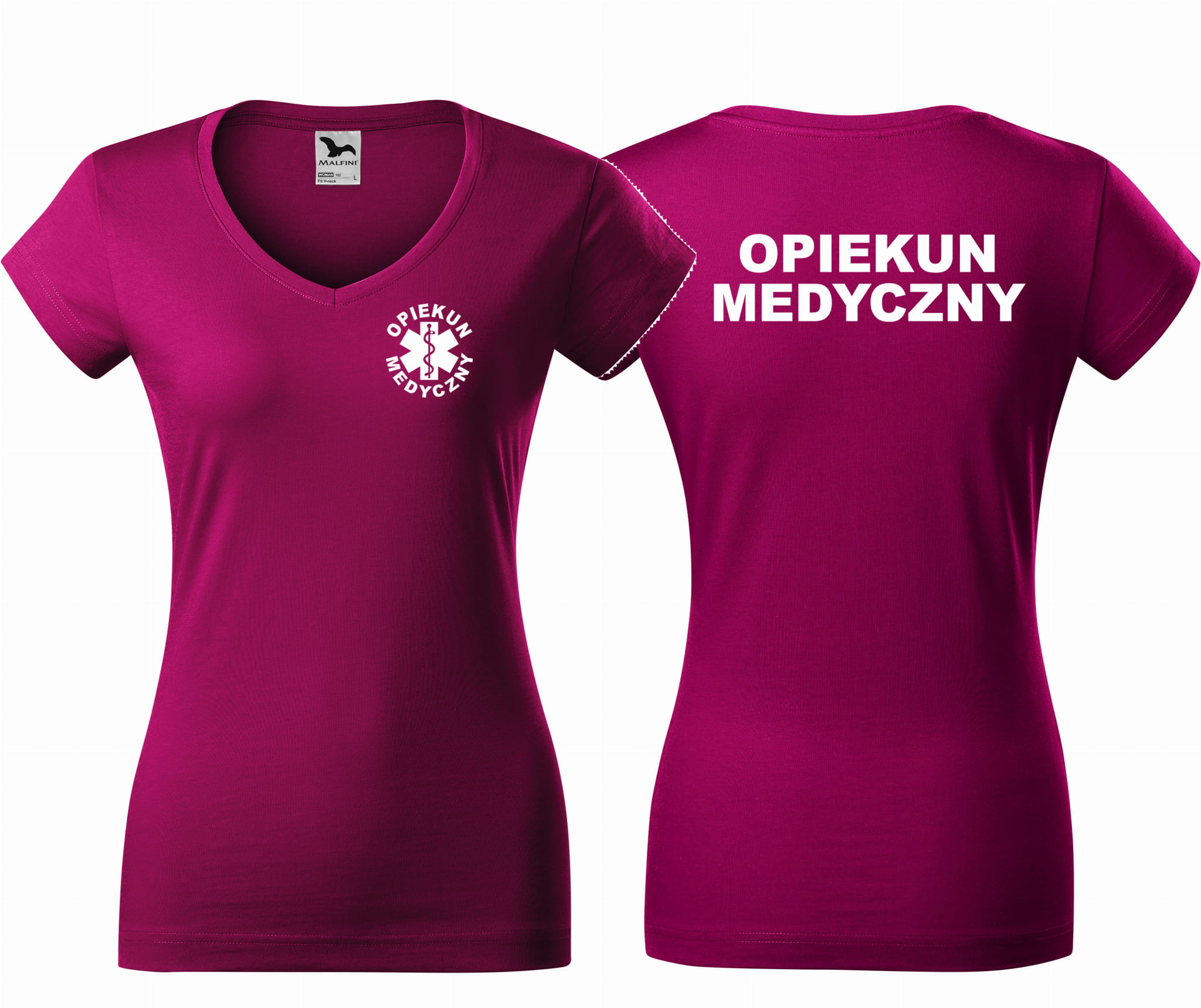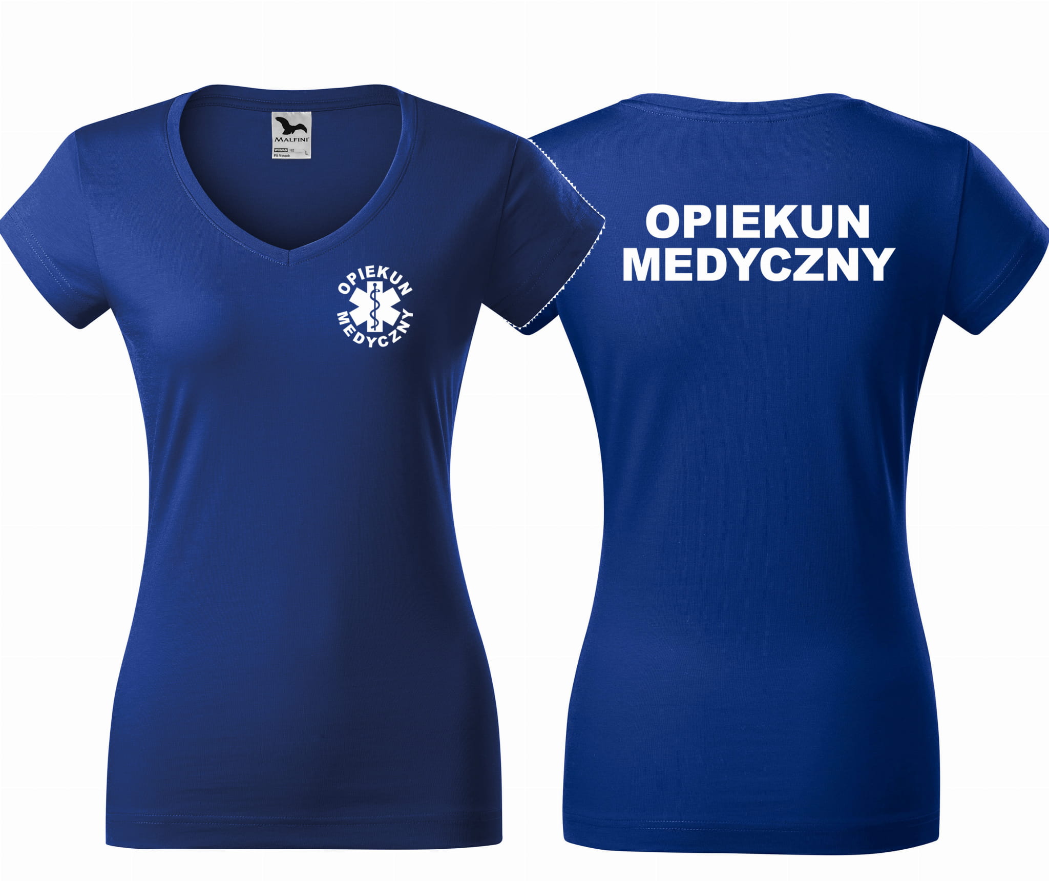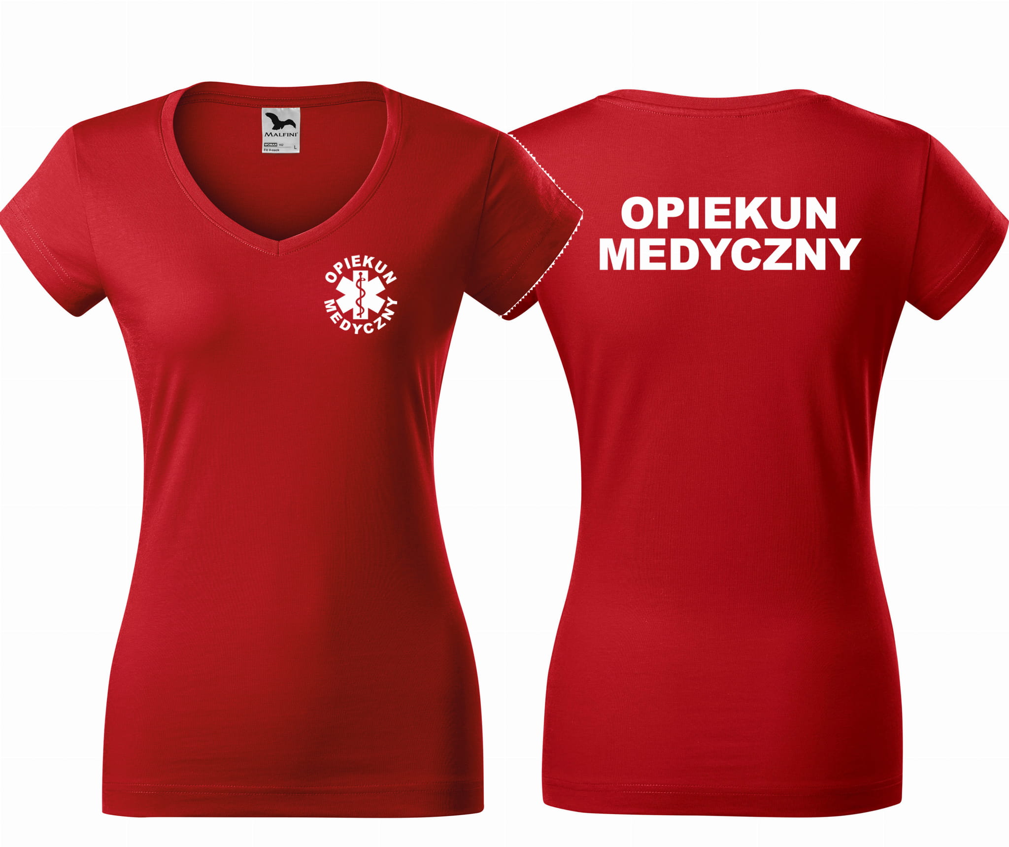Koszulka damska V-NECK OPIEKUN MEDYCZNY nadruk PRZÓD I TYŁ