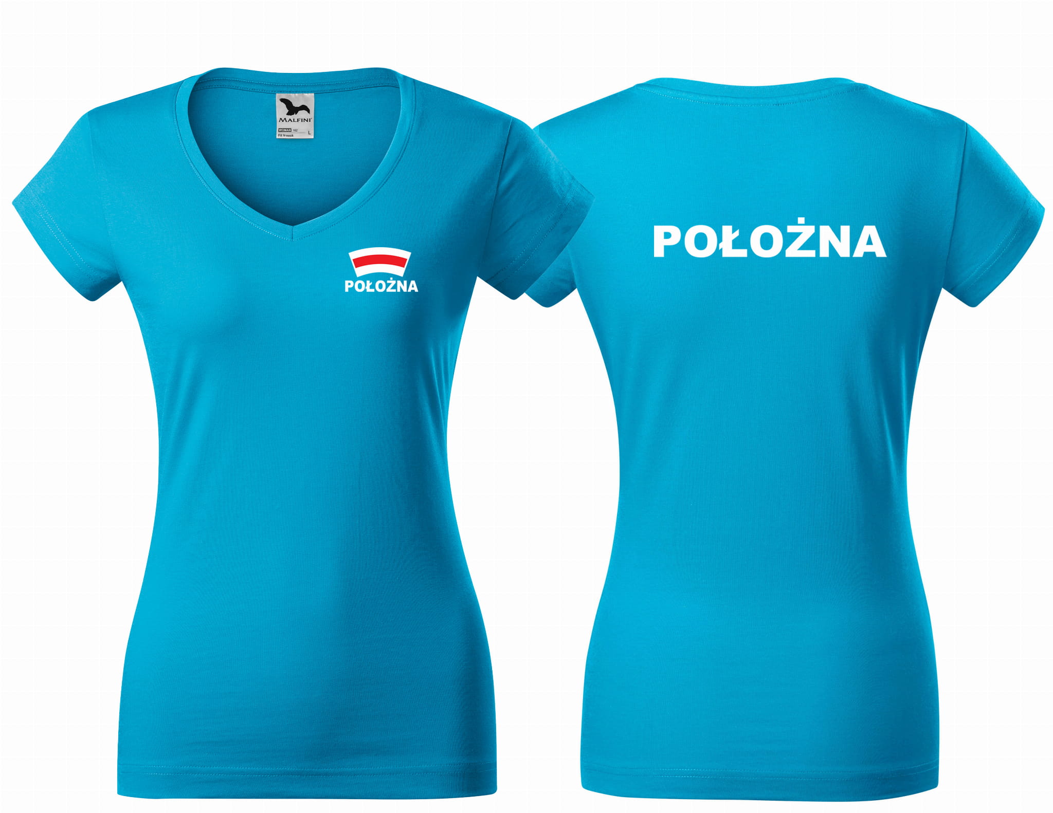 Koszulka damska V-NECK POŁOŻNA CZEPEK nadruk PRZÓD I TYŁ