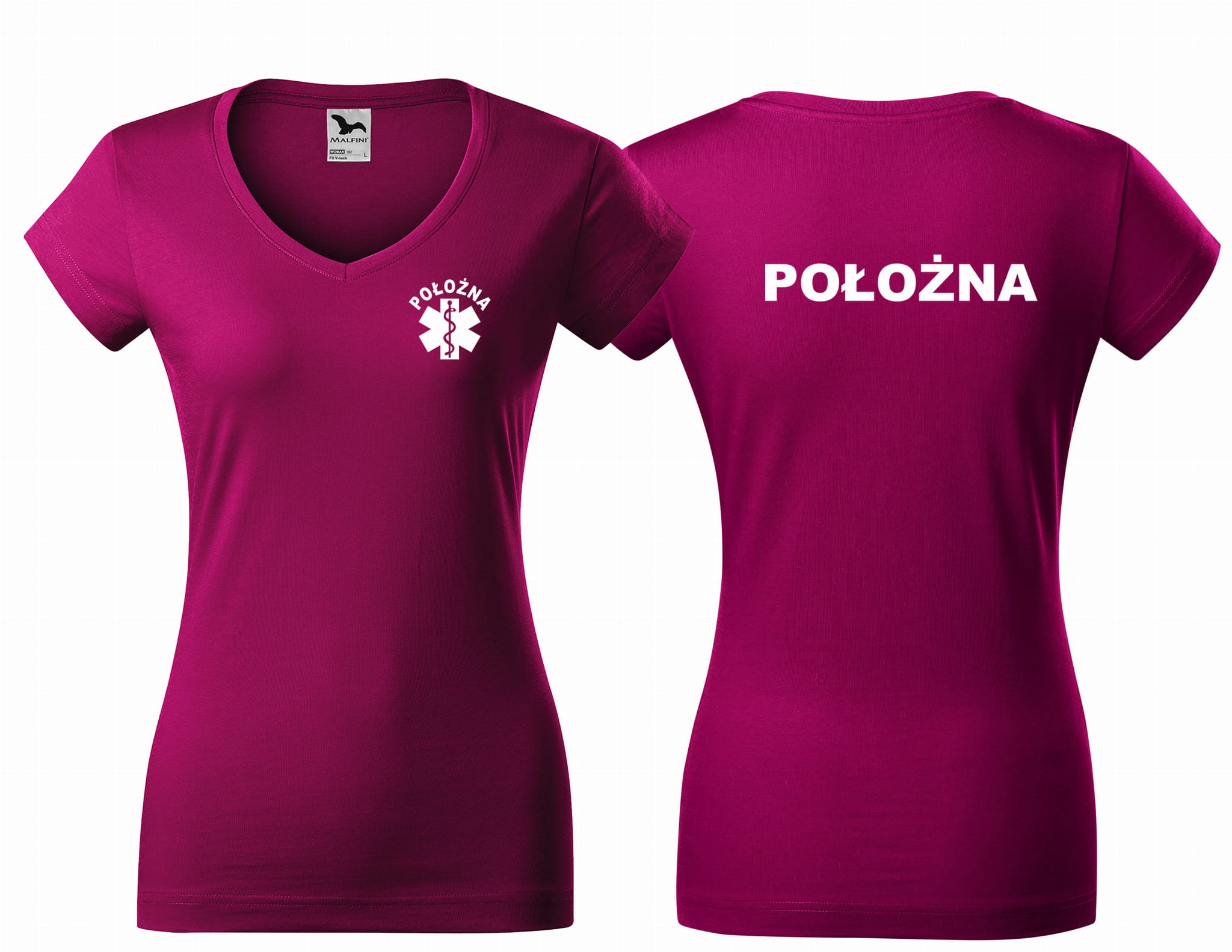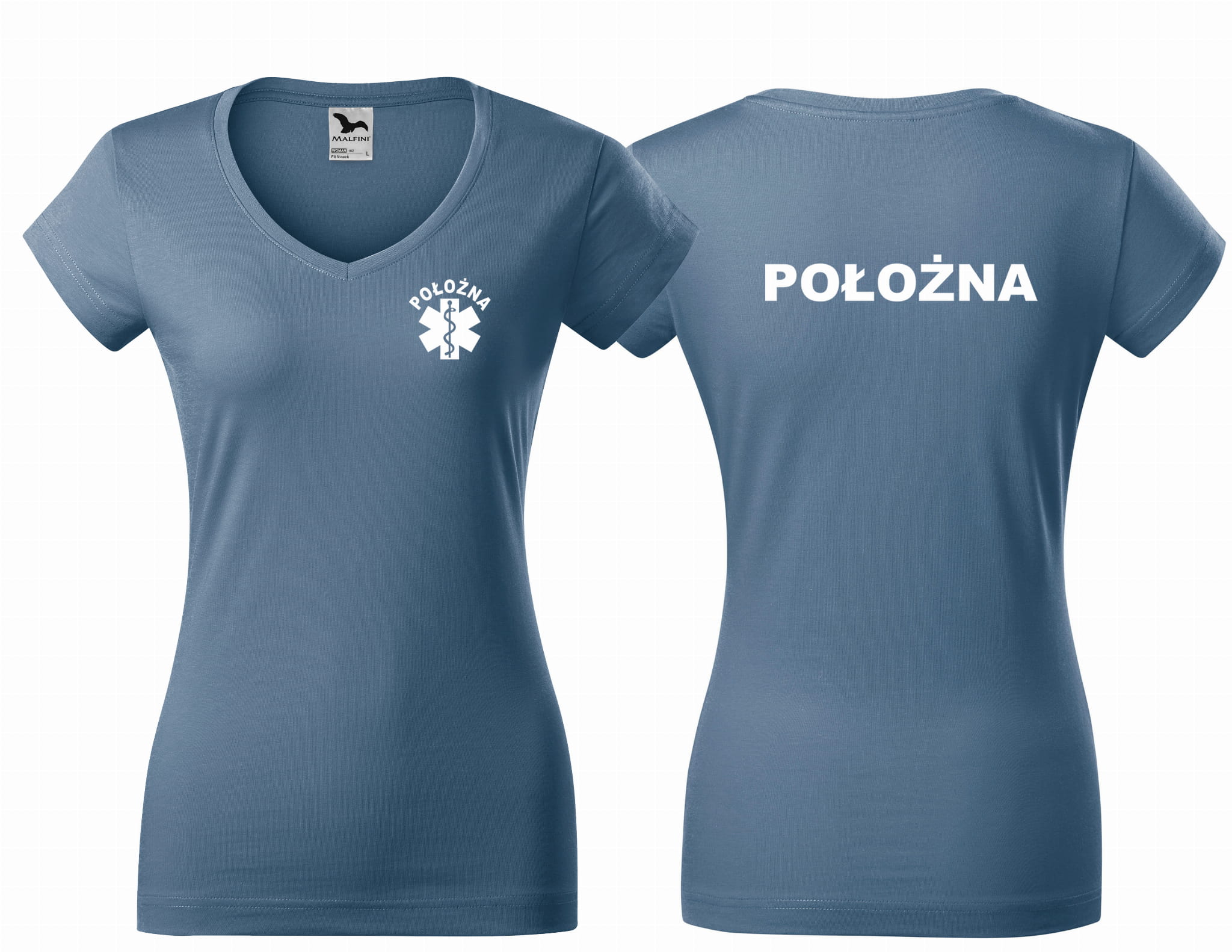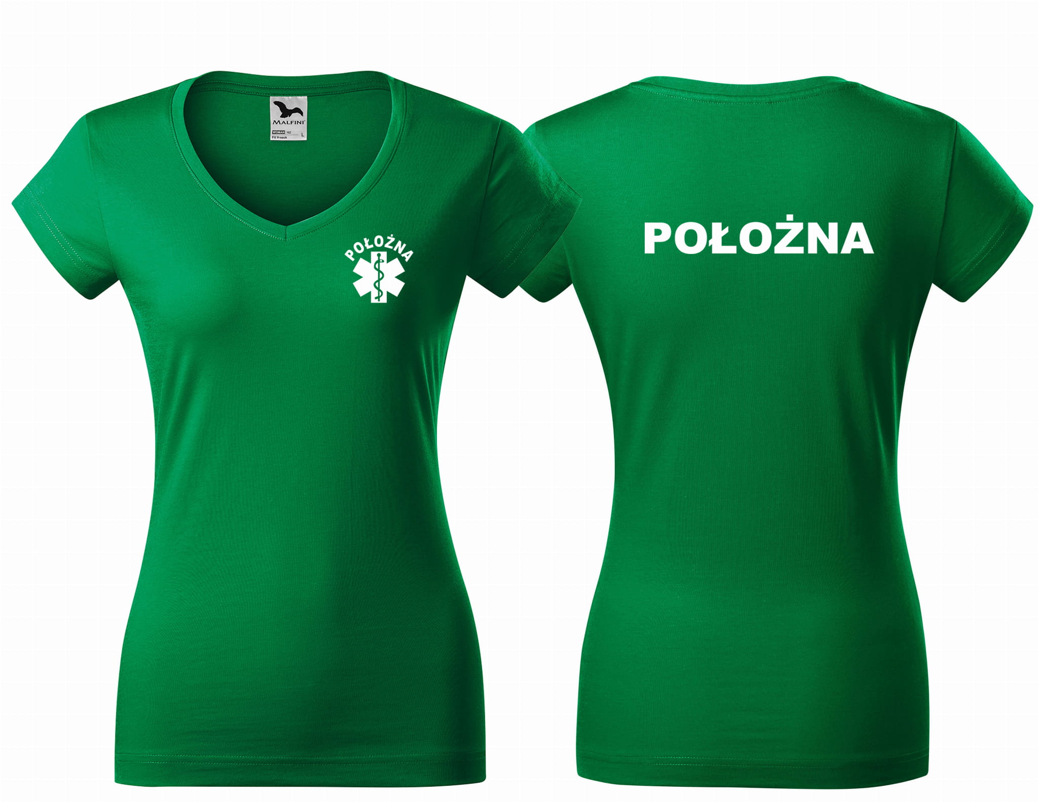 Koszulka damska V-NECK POŁOŻNA ESKULAP nadruk PRZÓD I TYŁ
