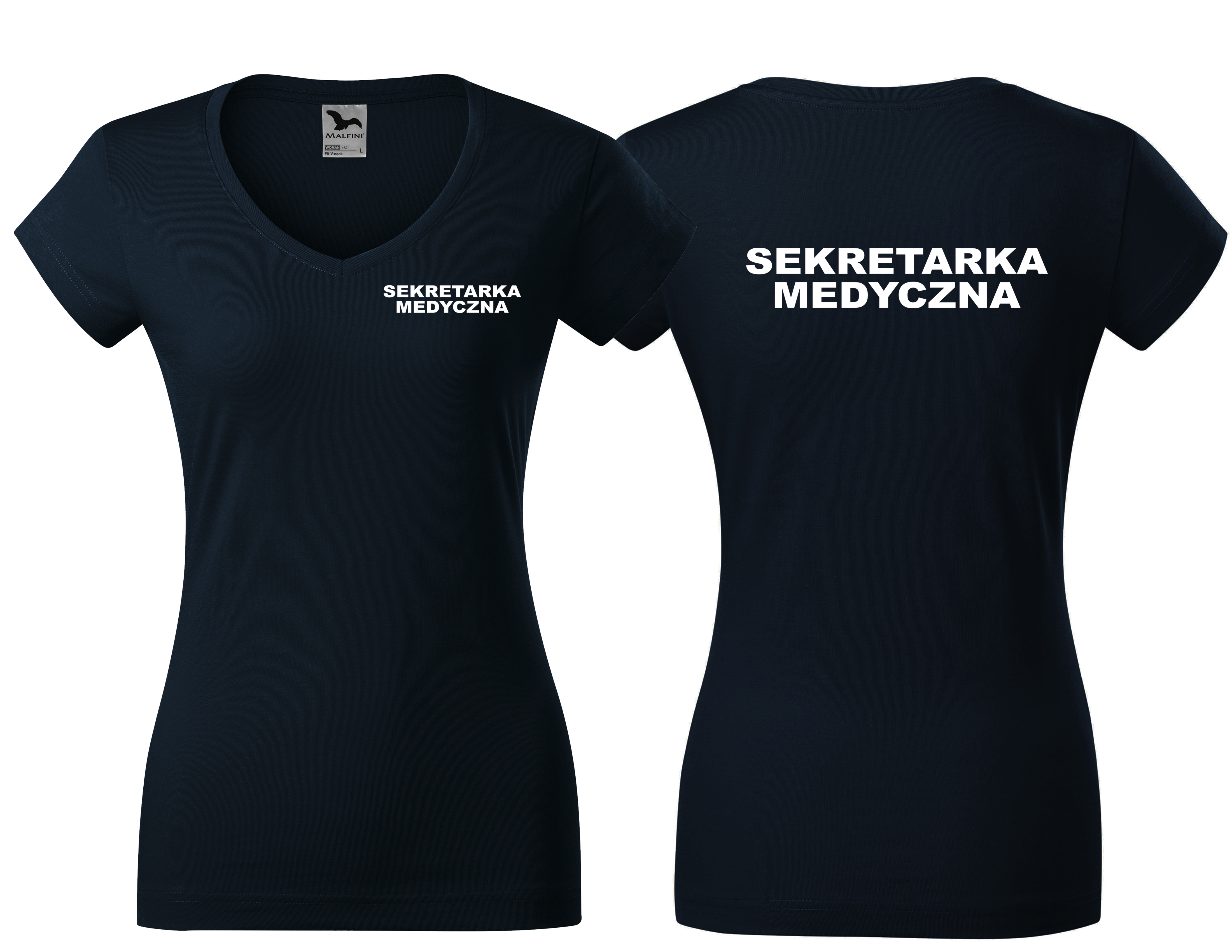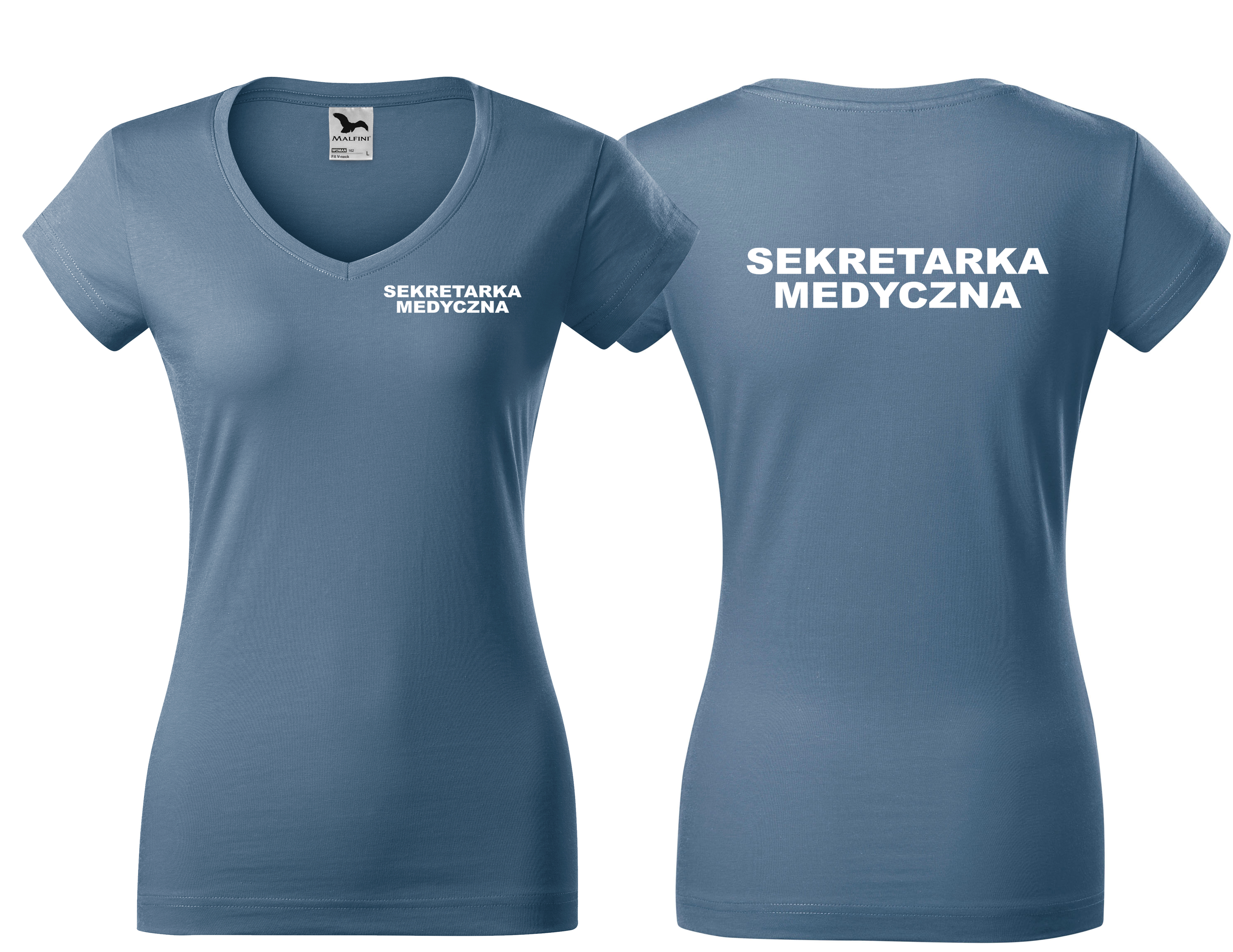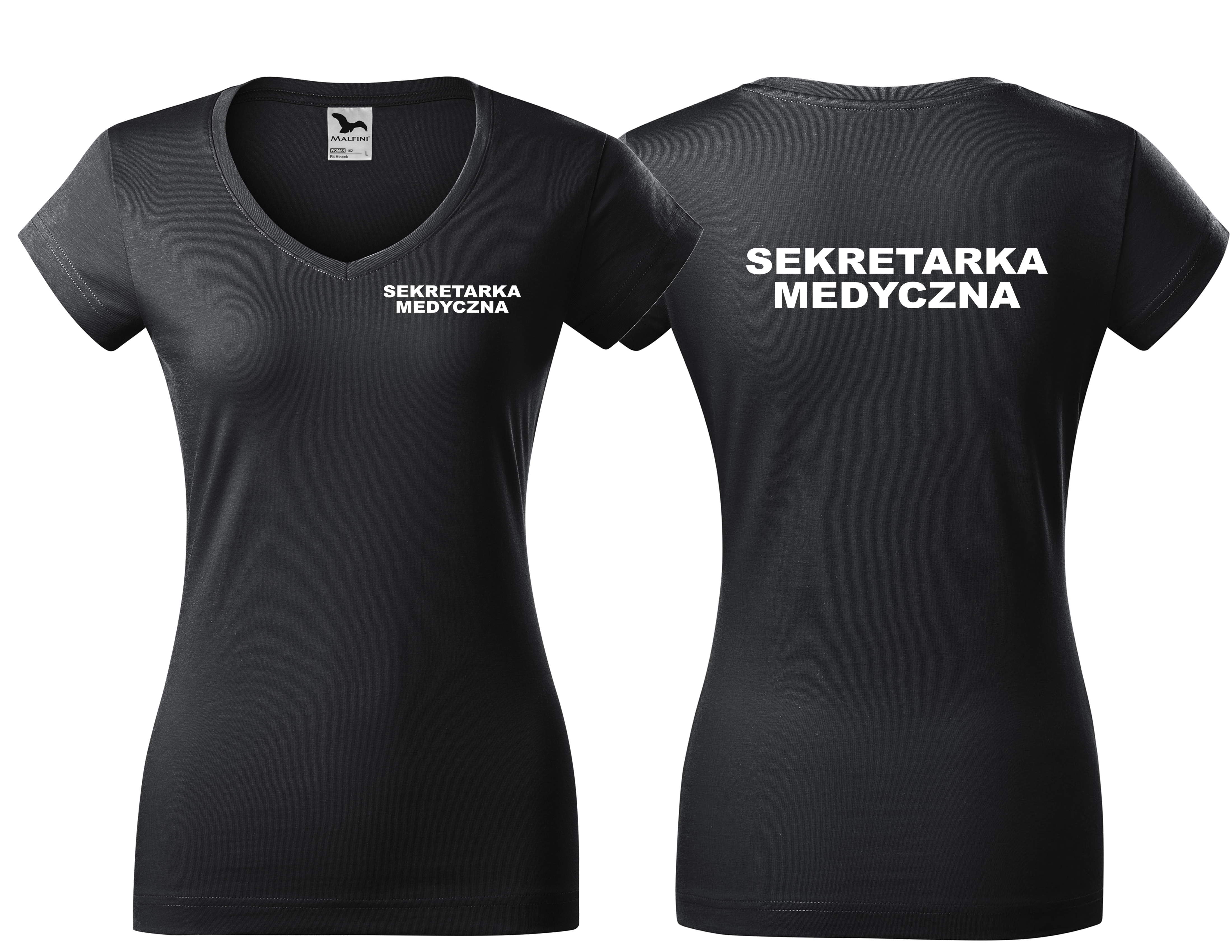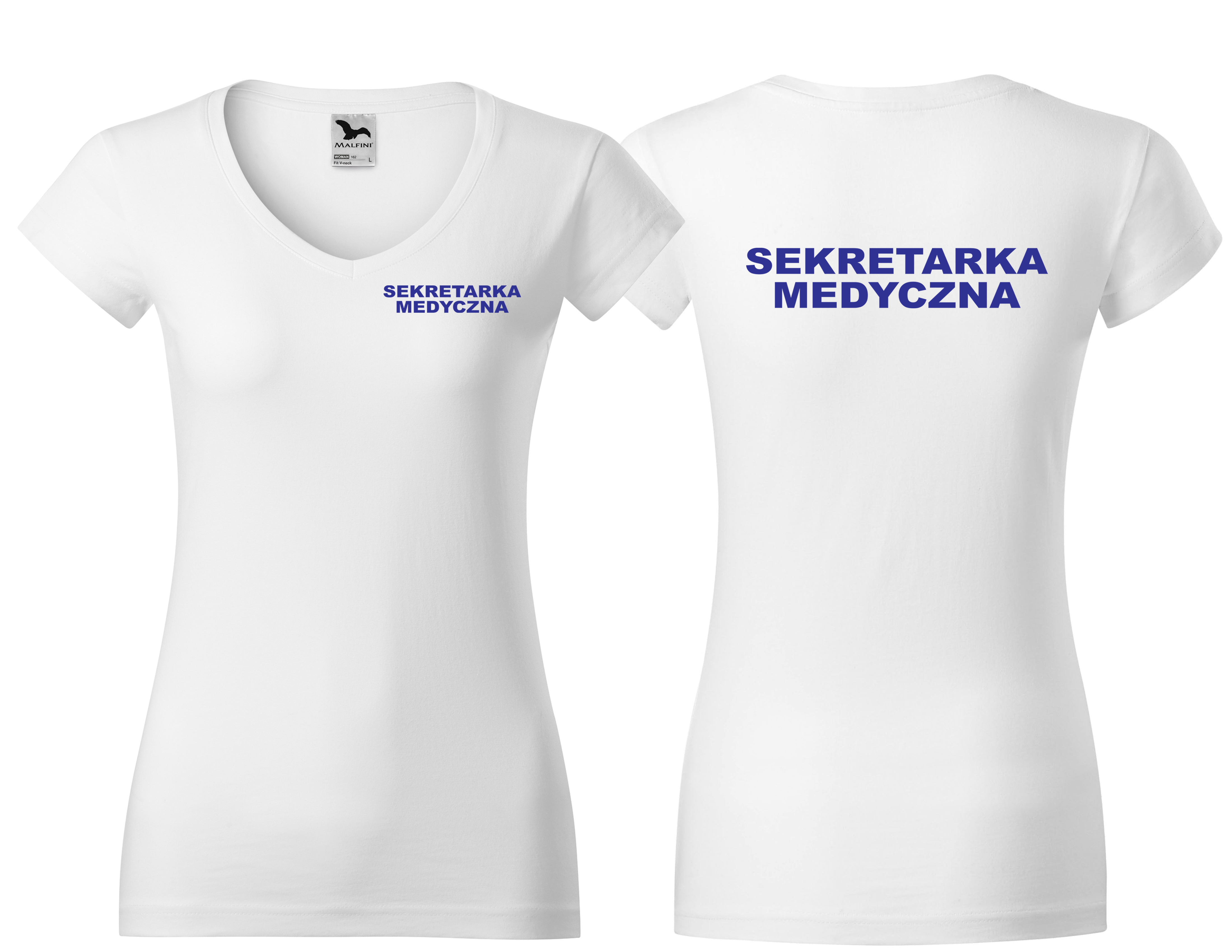 Koszulka damska V-NECK SEKRETARKA MEDYCZNA NAPISY nadruk PRZÓD I TYŁ