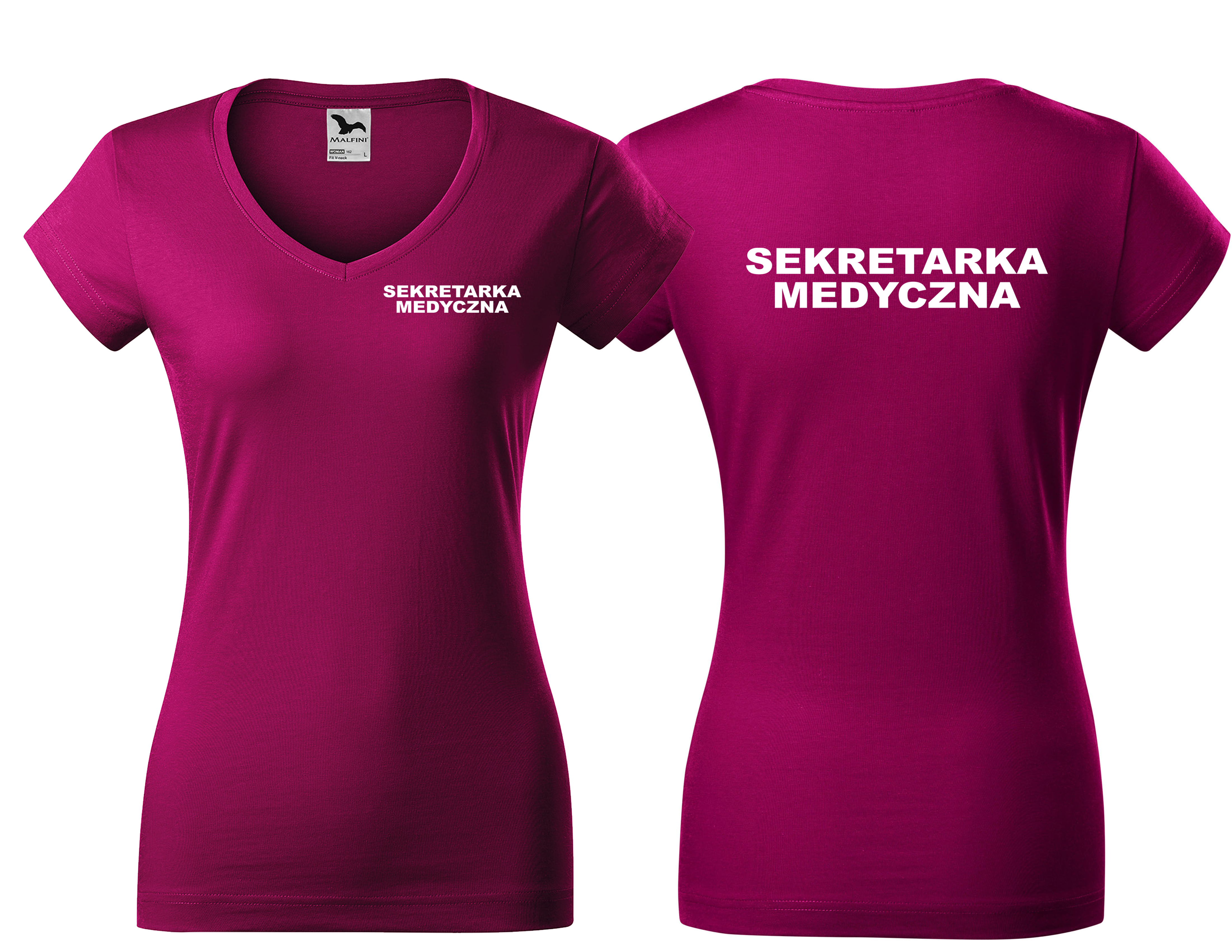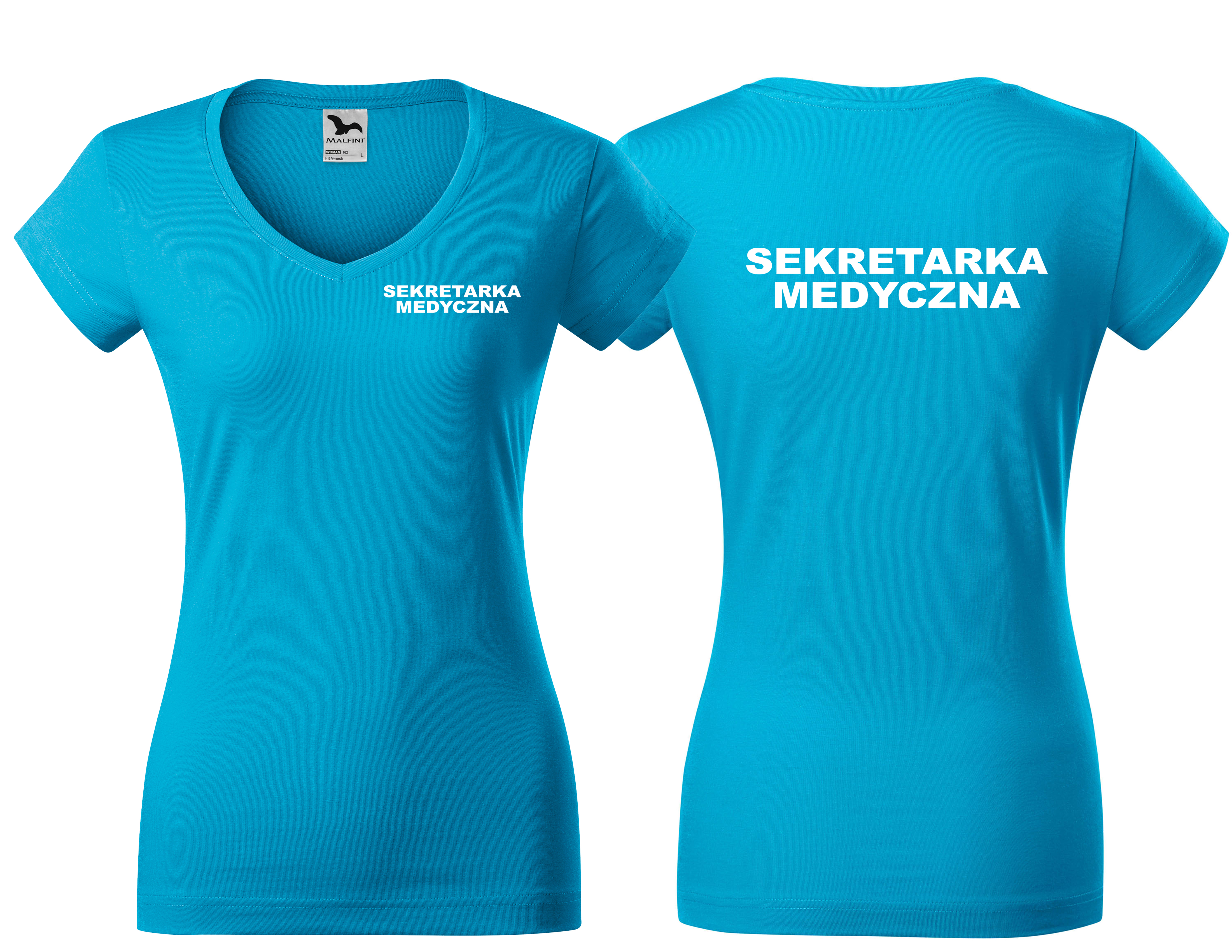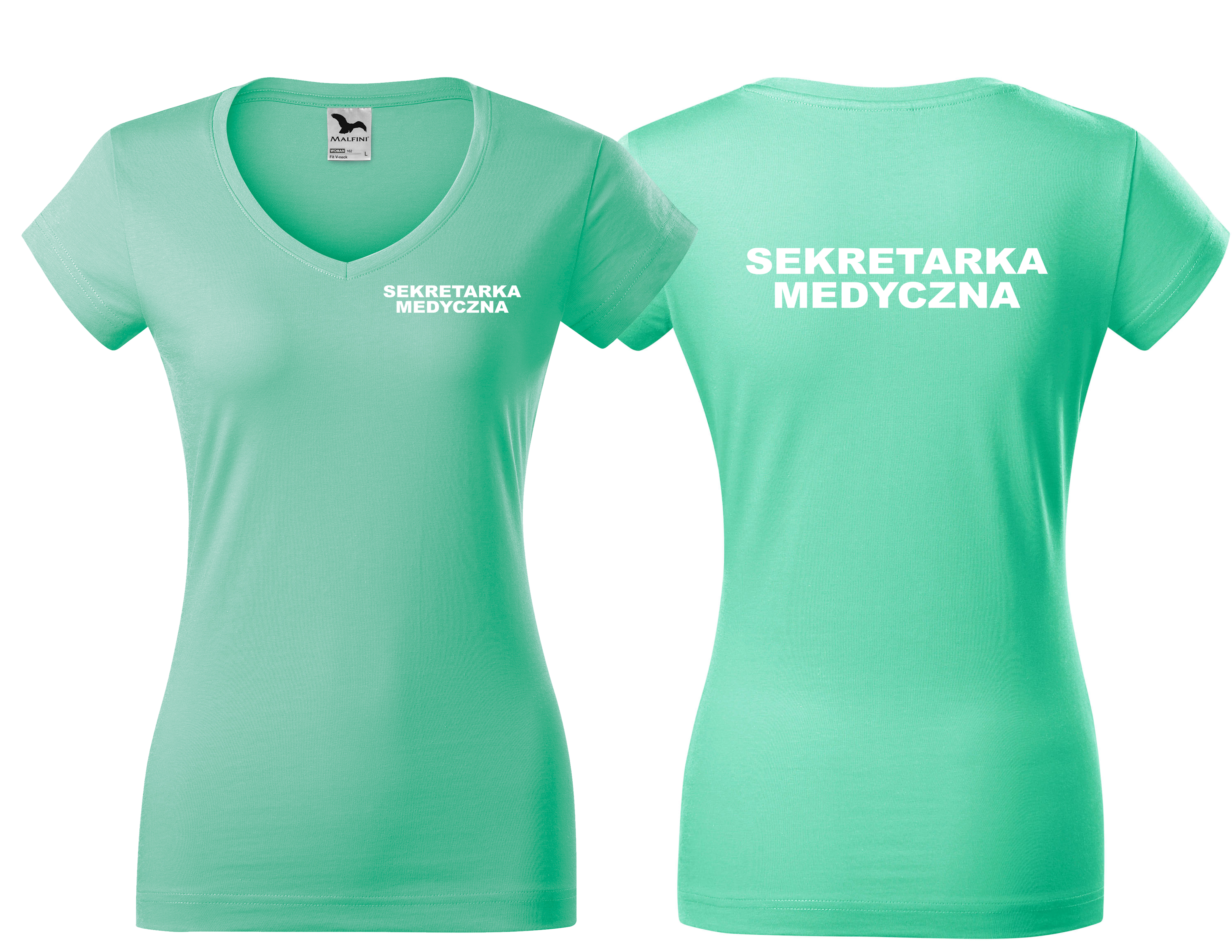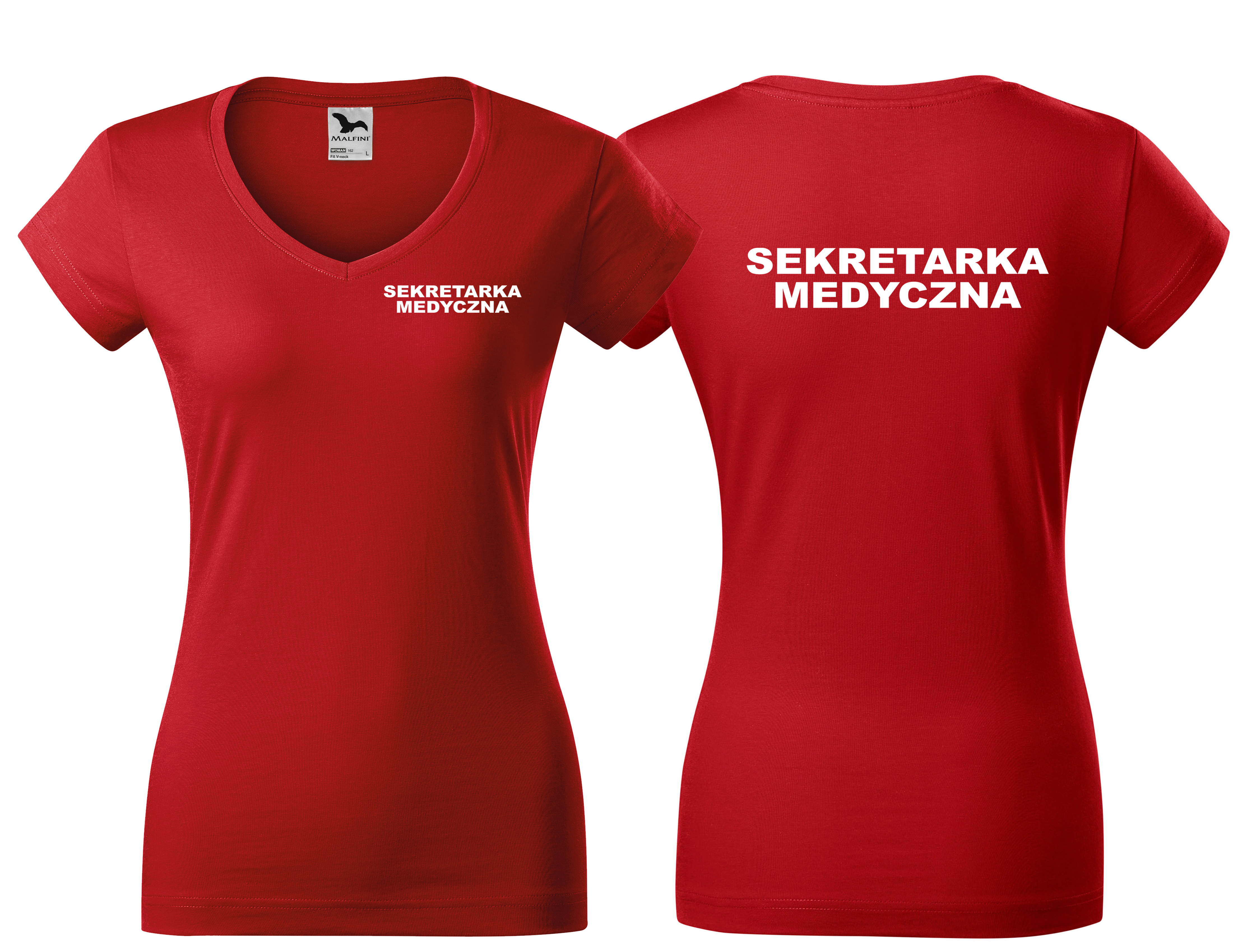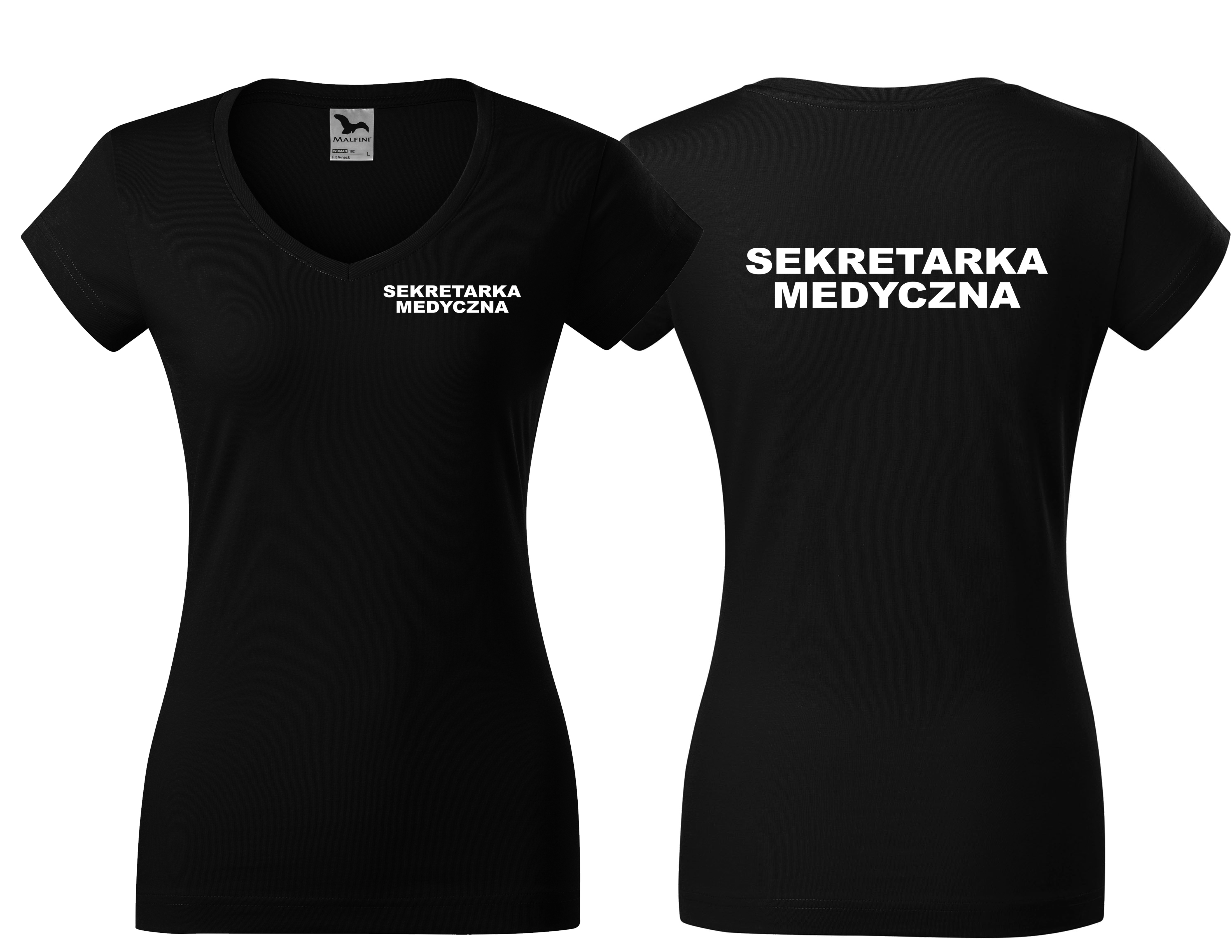 Koszulka damska V-NECK SEKRETARKA MEDYCZNA NAPISY nadruk PRZÓD I TYŁ