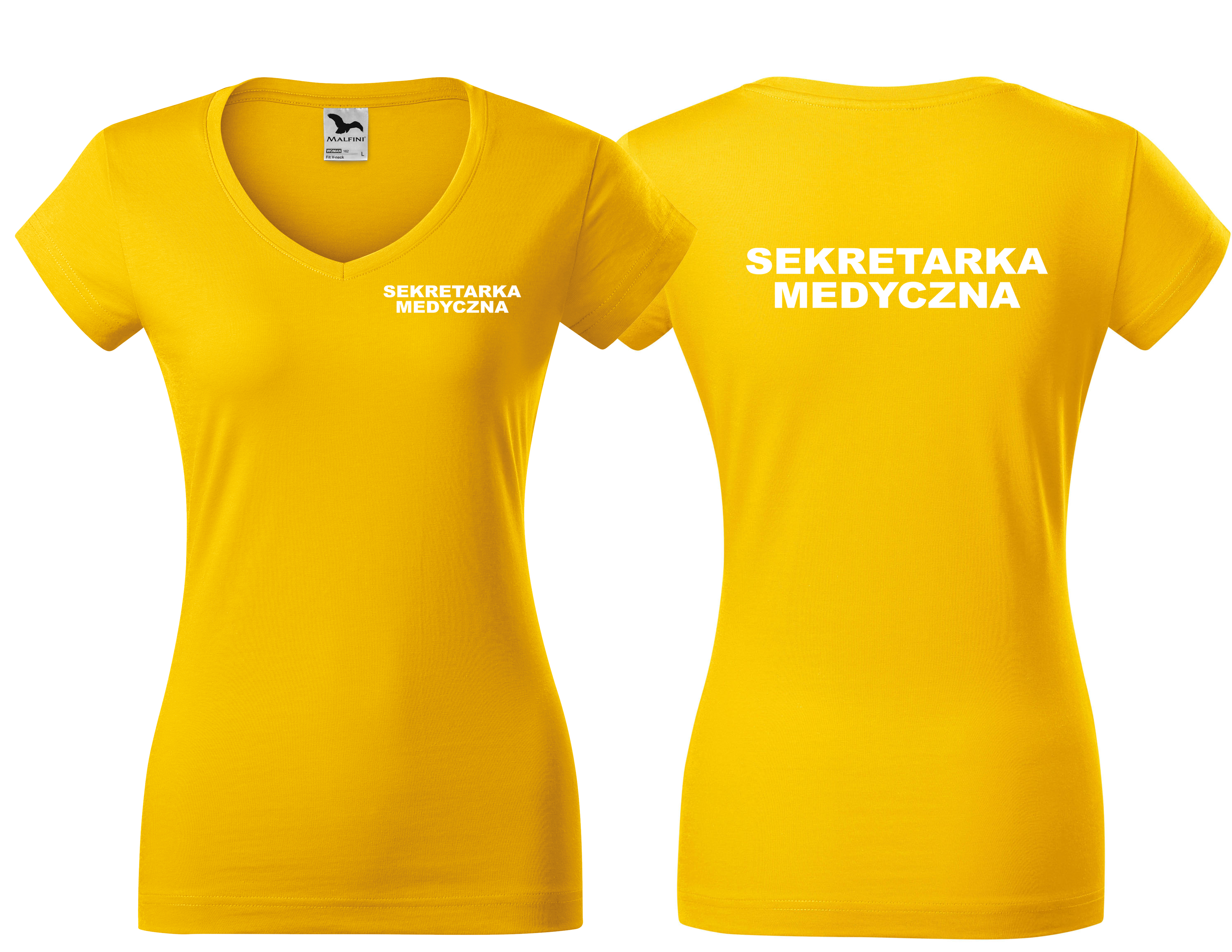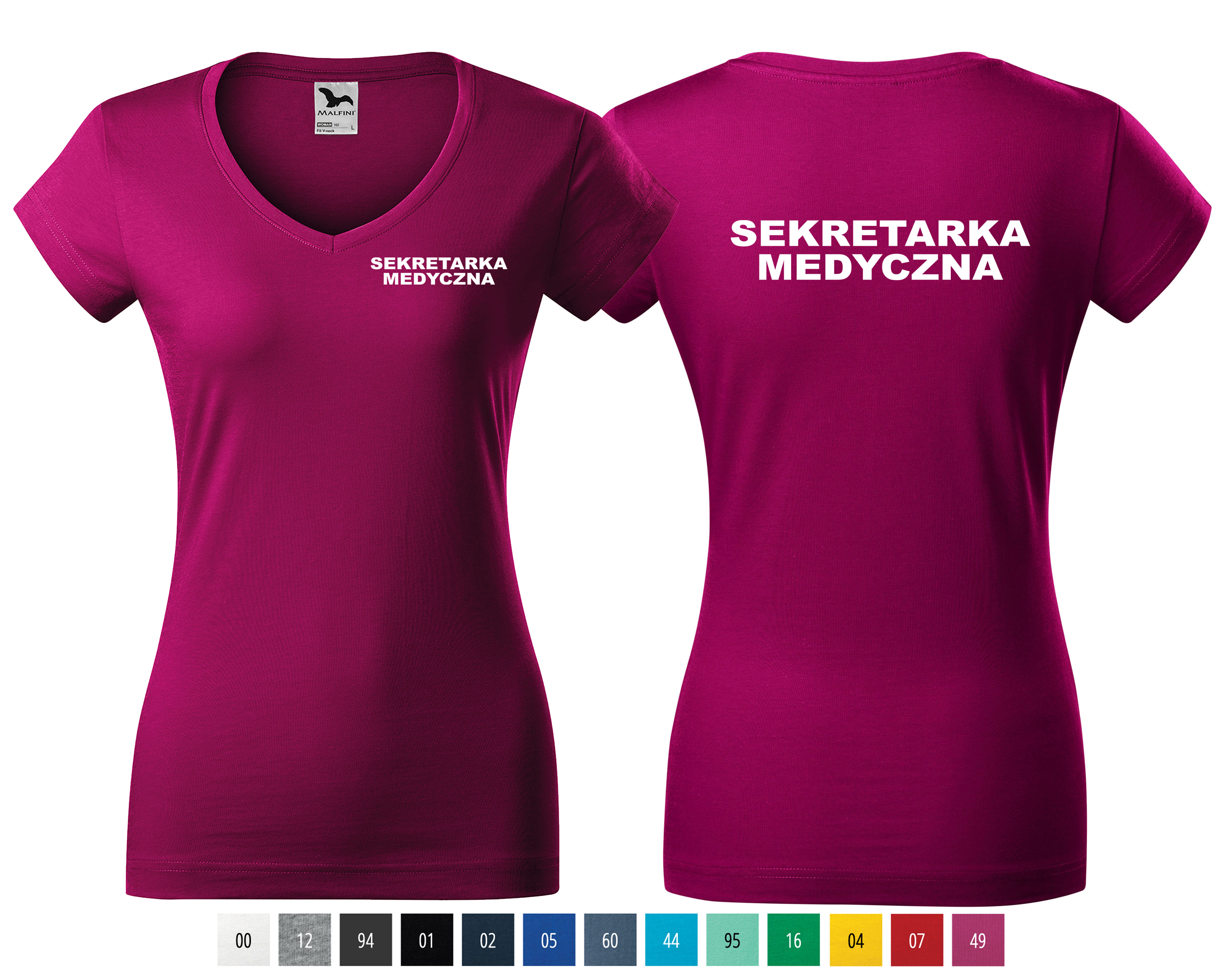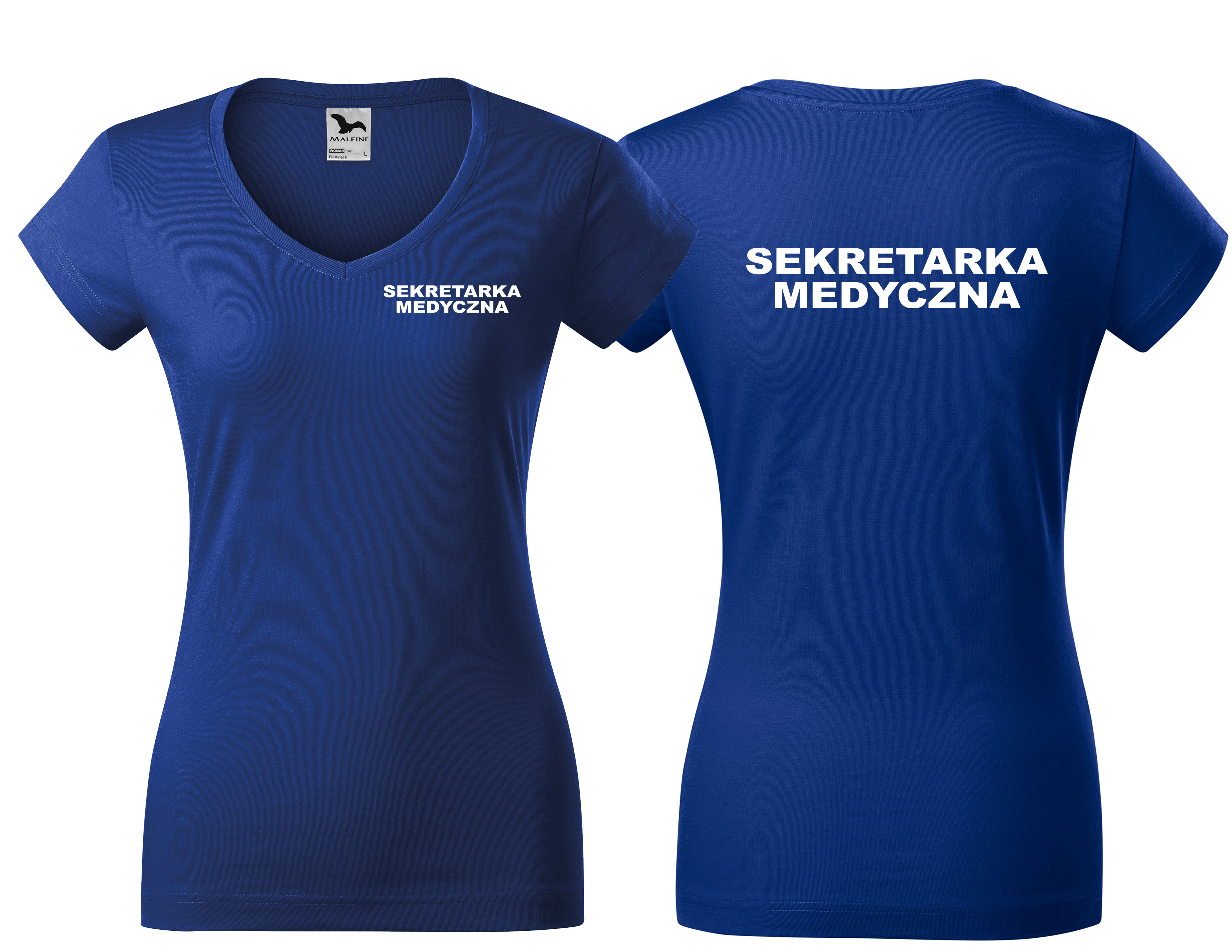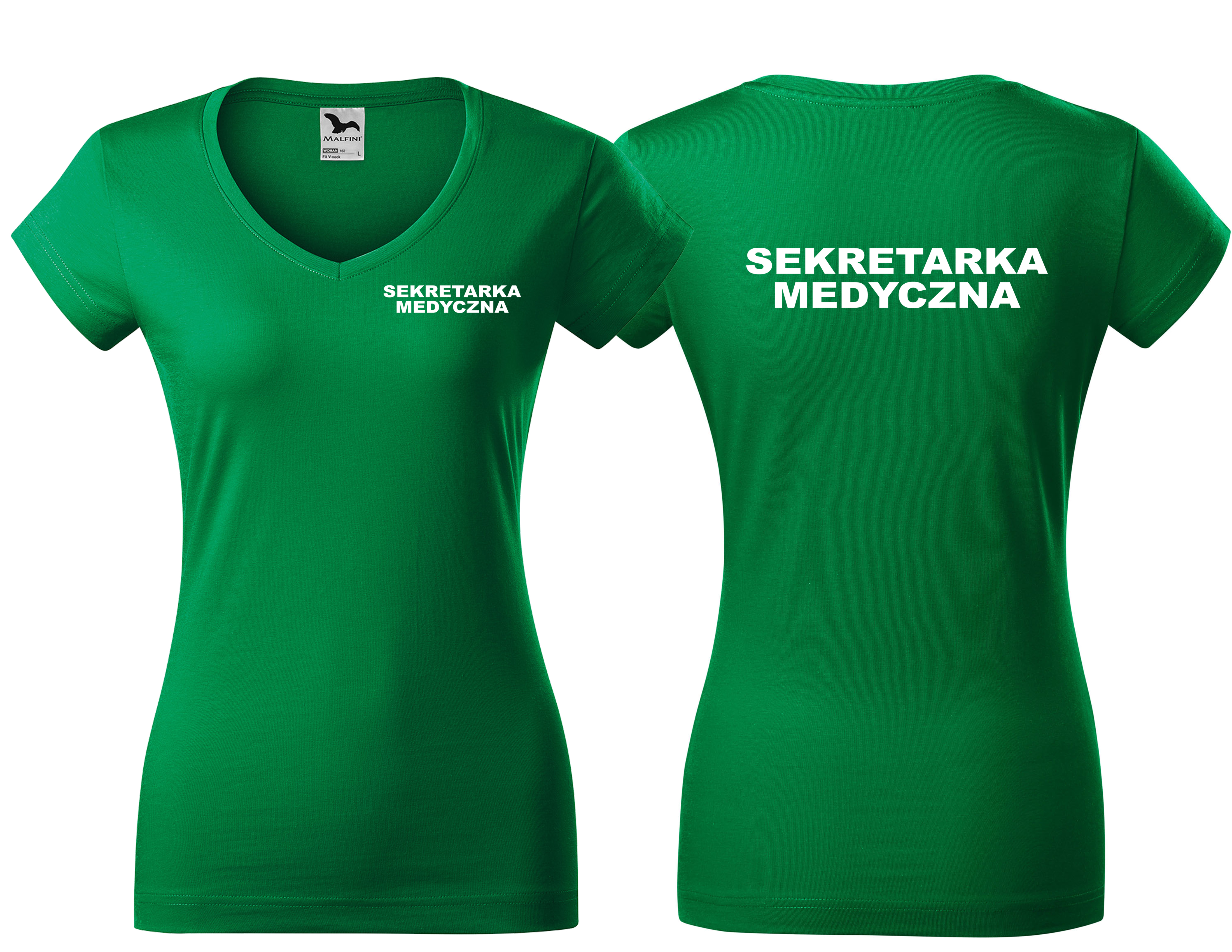 Koszulka damska V-NECK SEKRETARKA MEDYCZNA NAPISY nadruk PRZÓD I TYŁ