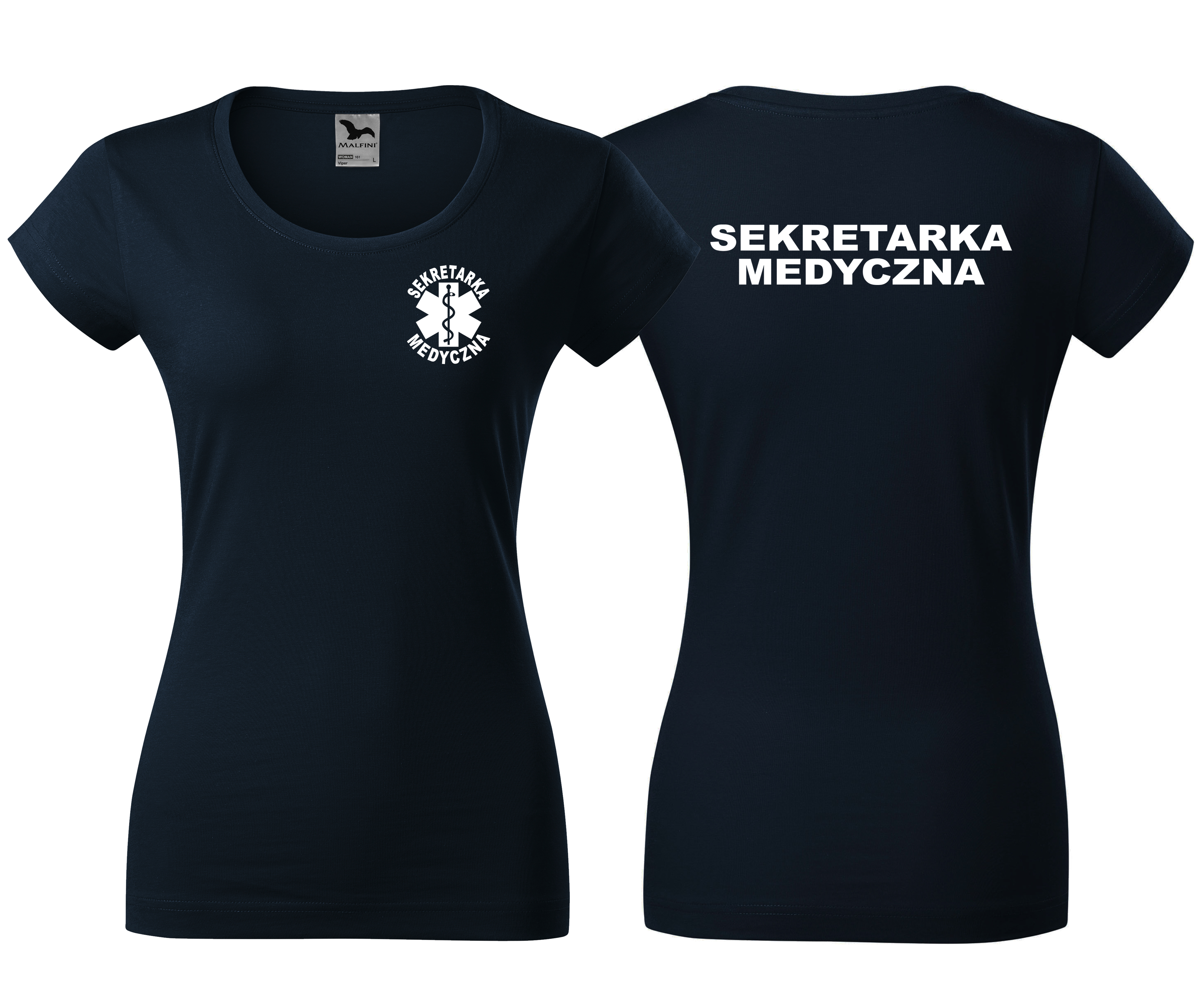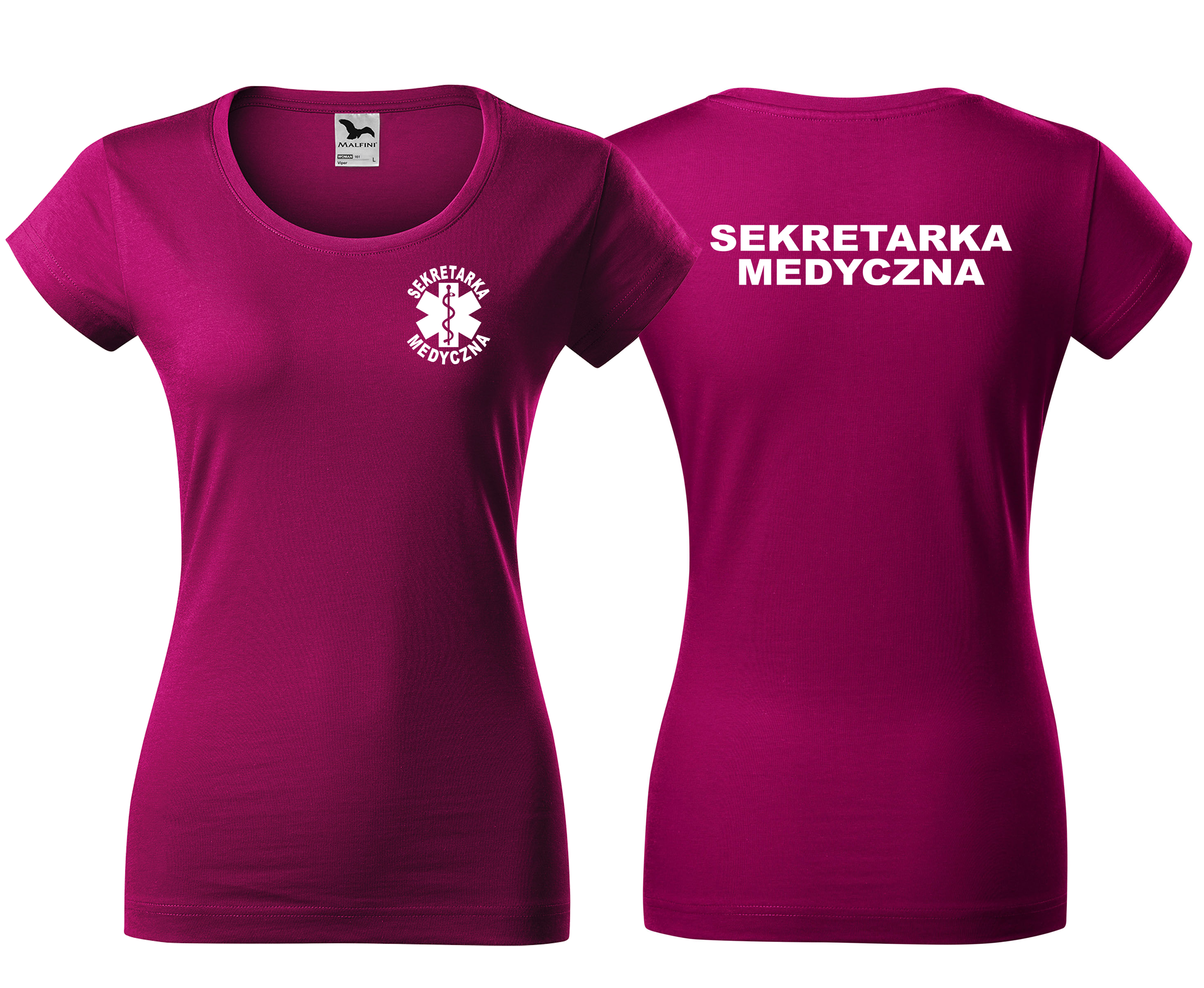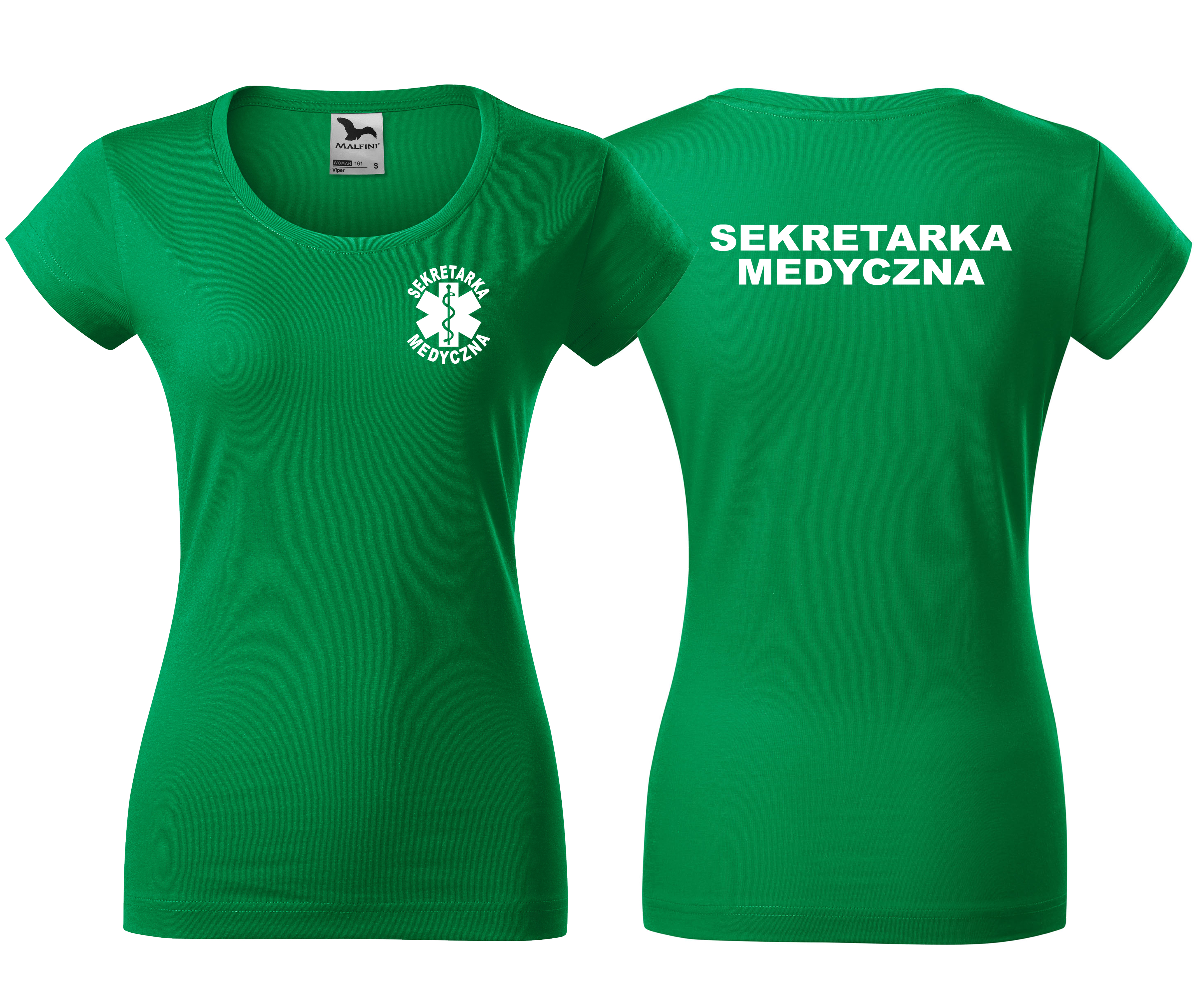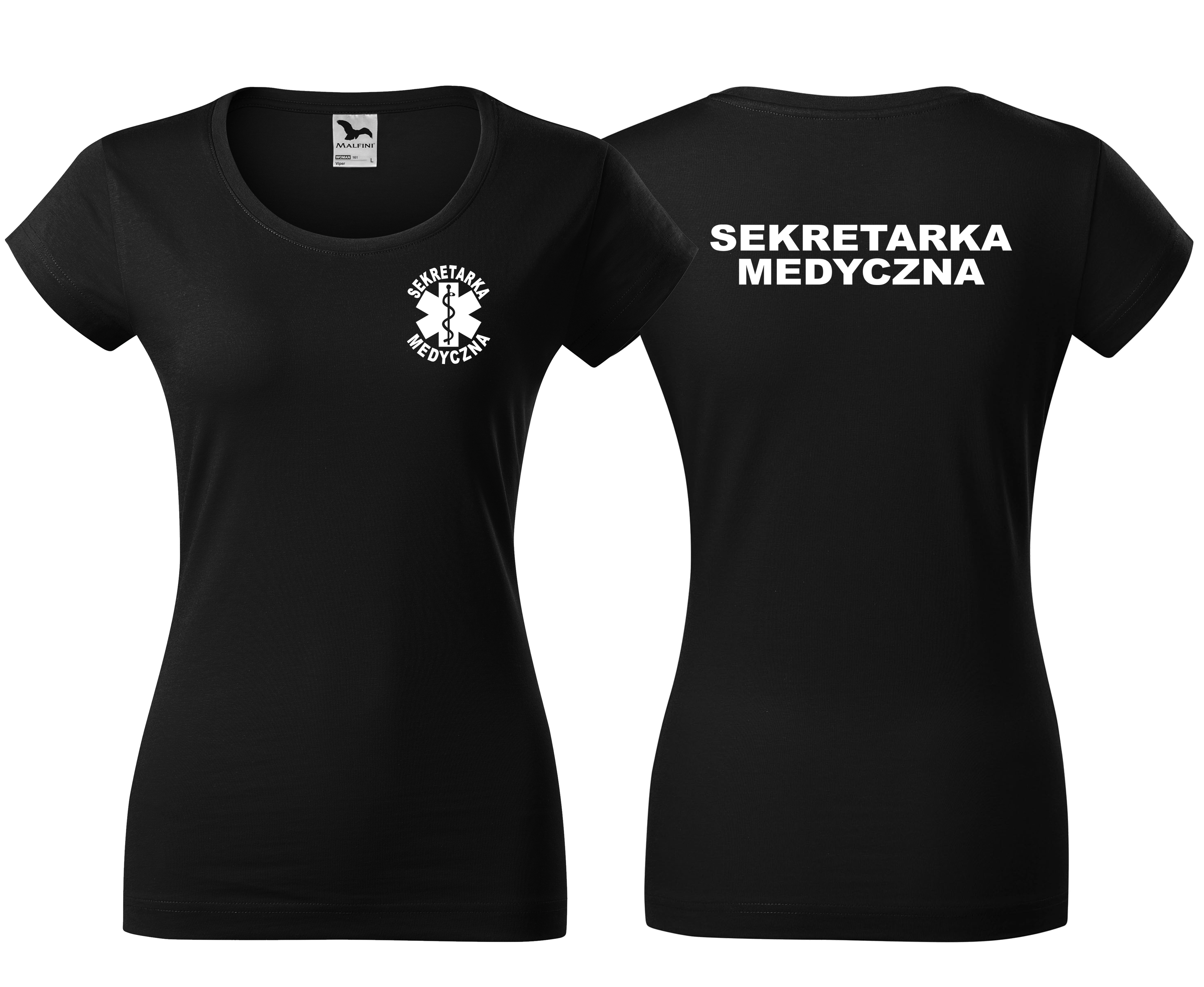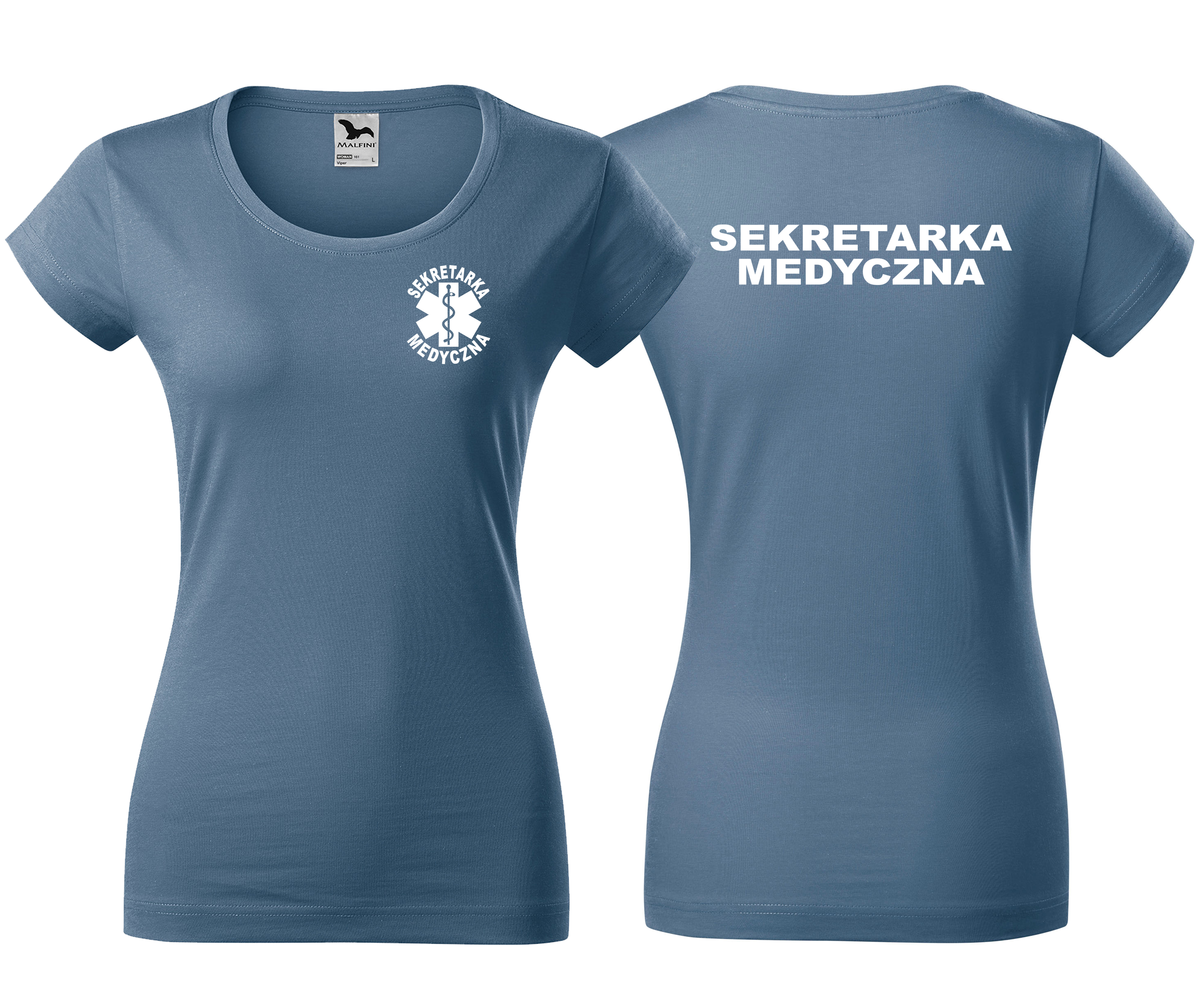 Koszulka damska VIPER SEKRETARKA MEDYCZNA ESKULAP nadruk PRZÓD I TYŁ