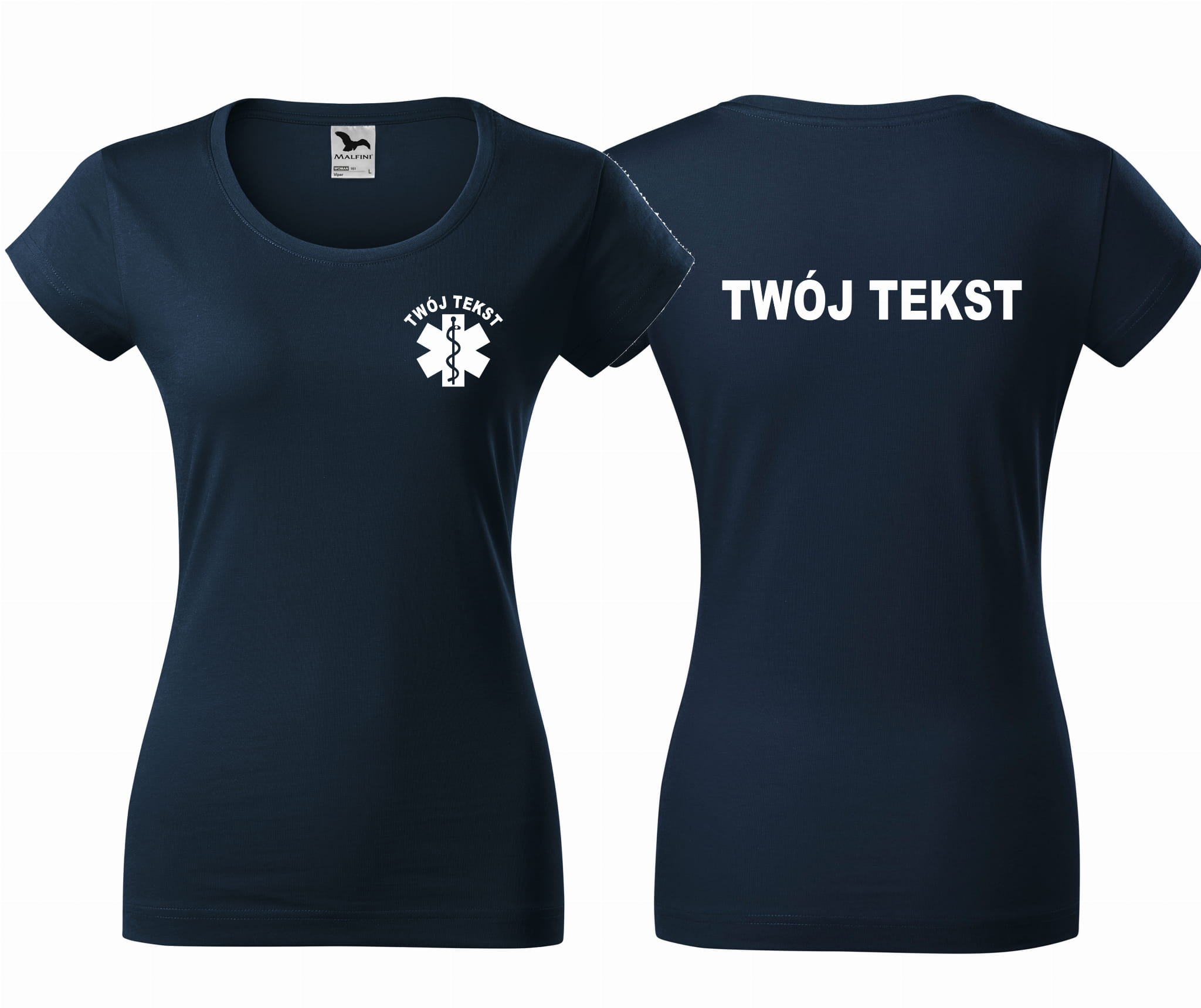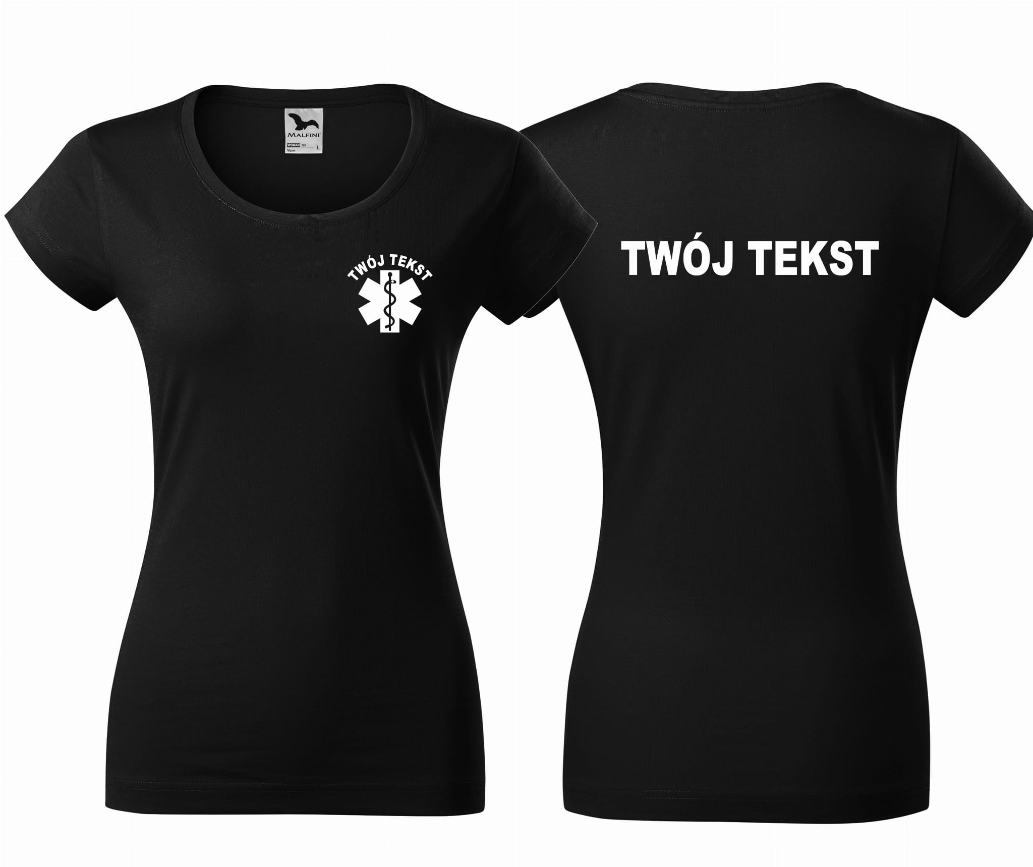 Koszulka damska VIPER TWÓJ TEKST + ESKULAP nadruk PRZÓD I TYŁ