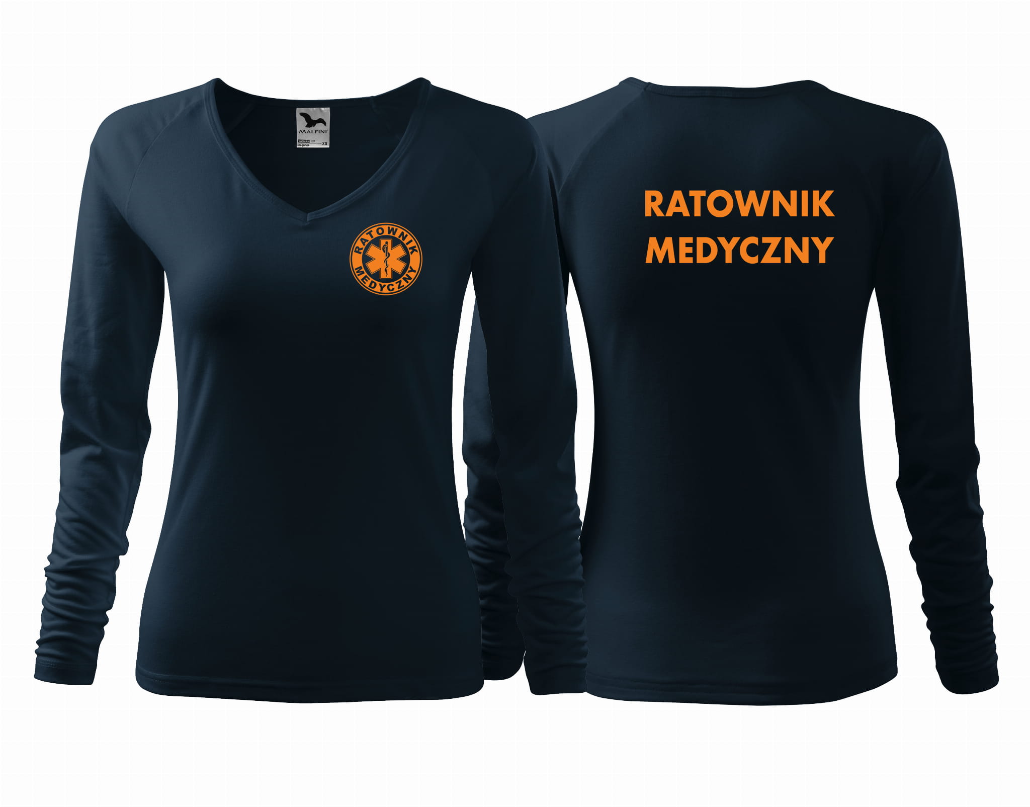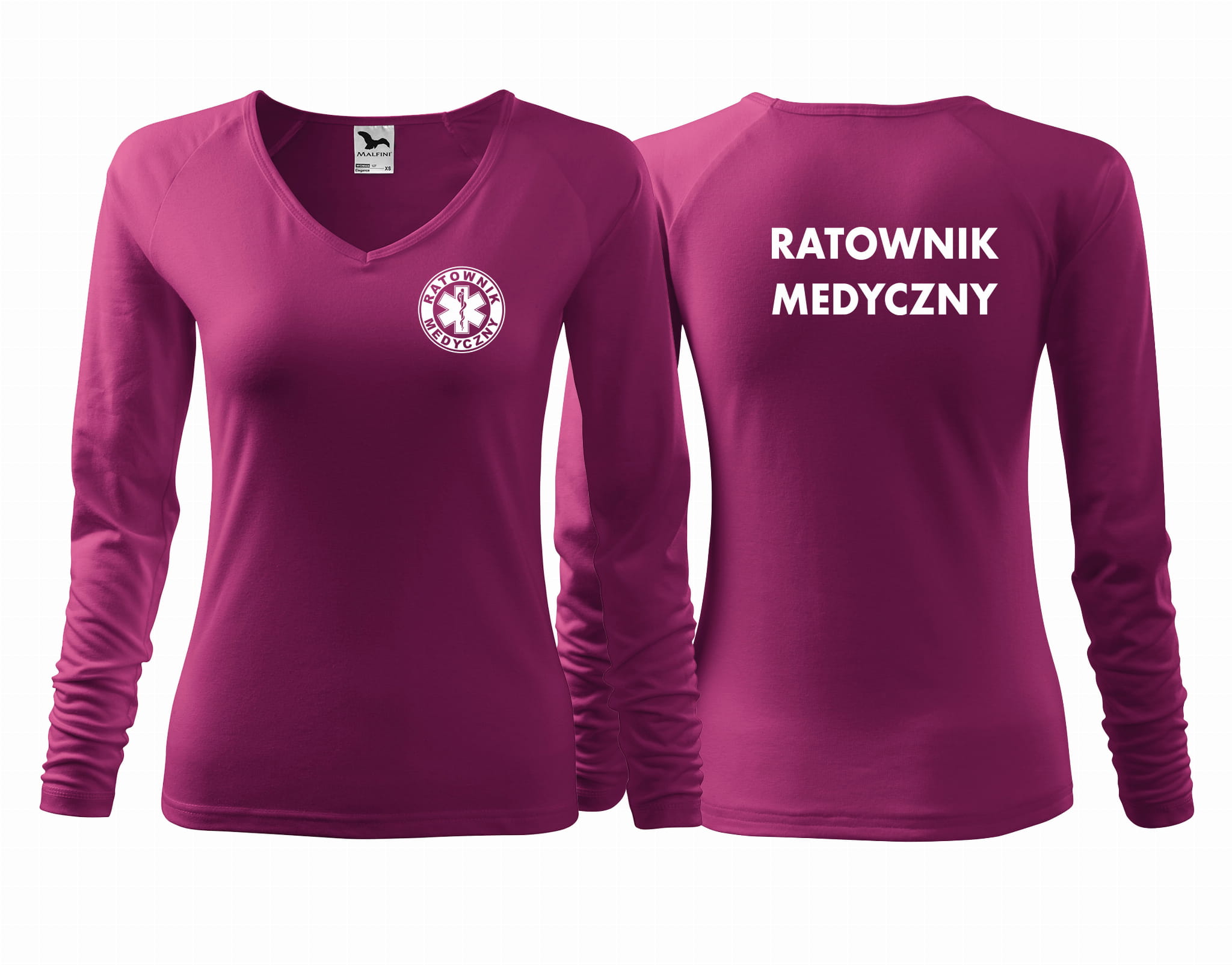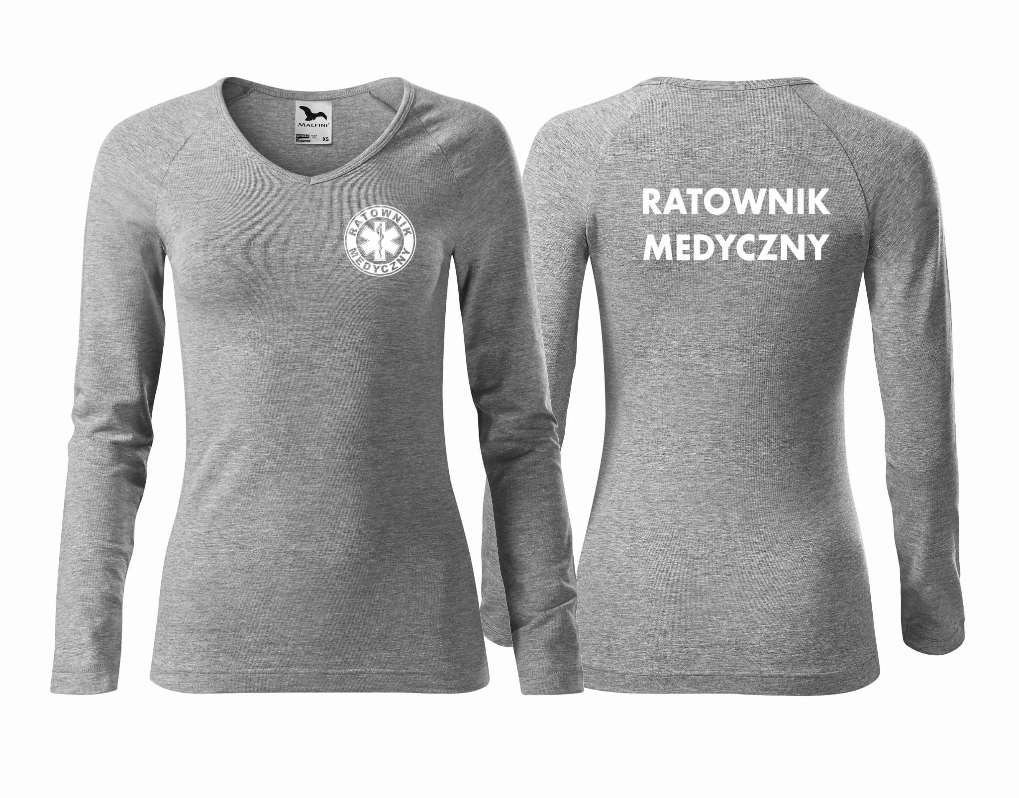 Koszulka damska z długim rękawem ELEGANCE RATOWNIK MEDYCZNY nadruk PRZÓD I TYŁ